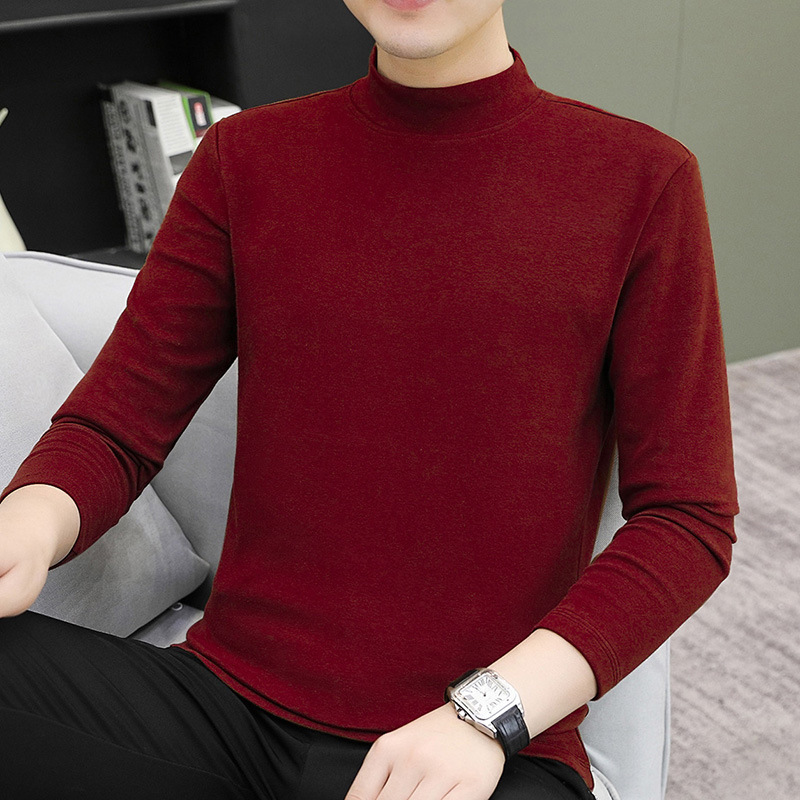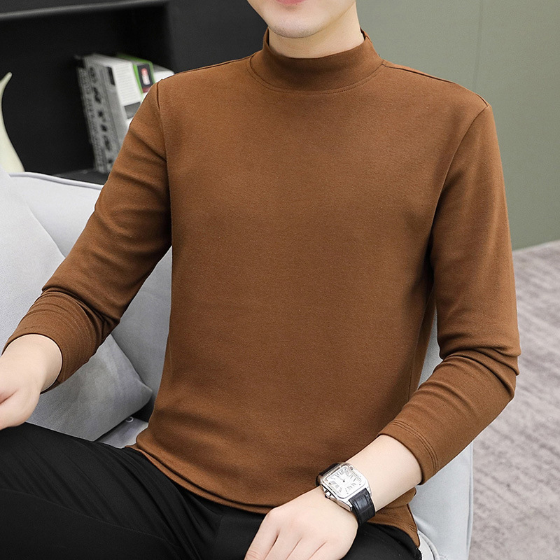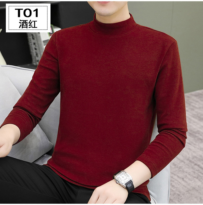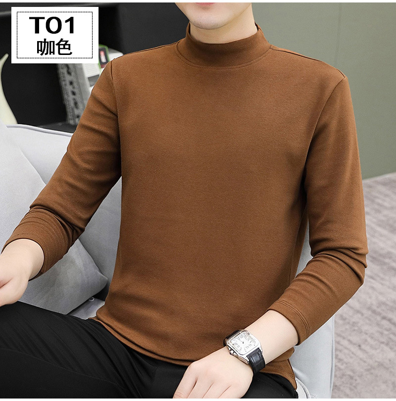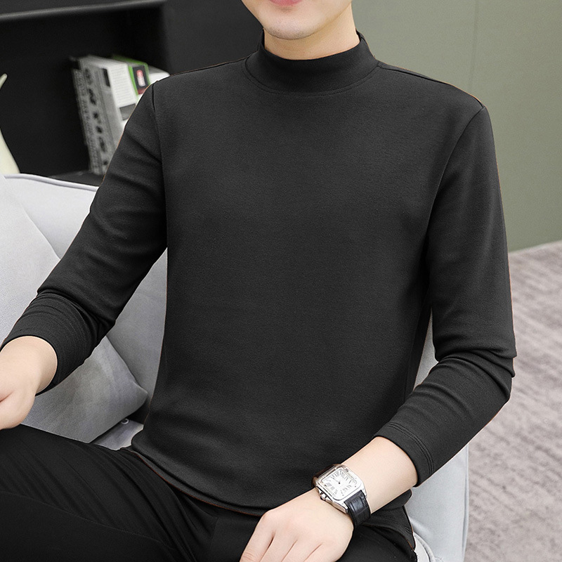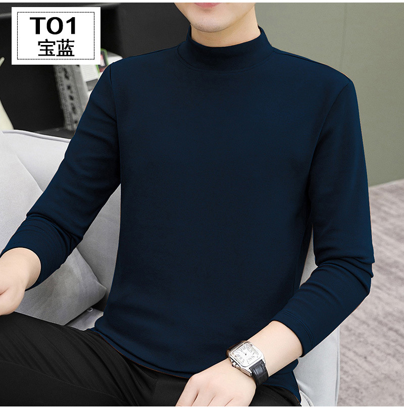 미드 칼라 남성 긴팔 가을 겨울 유행 슬림 핏 화이트 코튼 하프 하이 칼라 티셔츠베이스 셔츠 가을 티셔츠