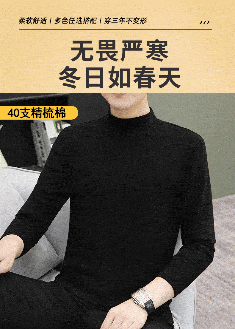 미드 칼라 남성 긴팔 가을 겨울 유행 슬림 핏 화이트 코튼 하프 하이 칼라 티셔츠베이스 셔츠 가을 티셔츠스토어 가기