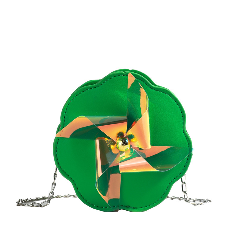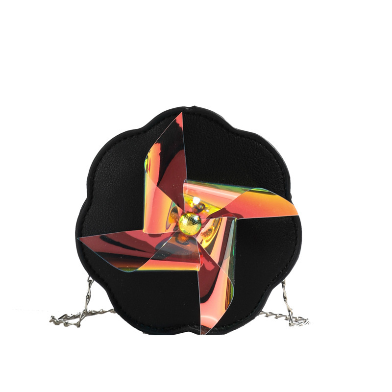 2024 새로운 모리 스타일 달콤한 어린이 가방 서양 스타일 체인 작은 둥근 가방 귀여운 풍차 레이저 어깨 가방 소년 소녀스토어 가기