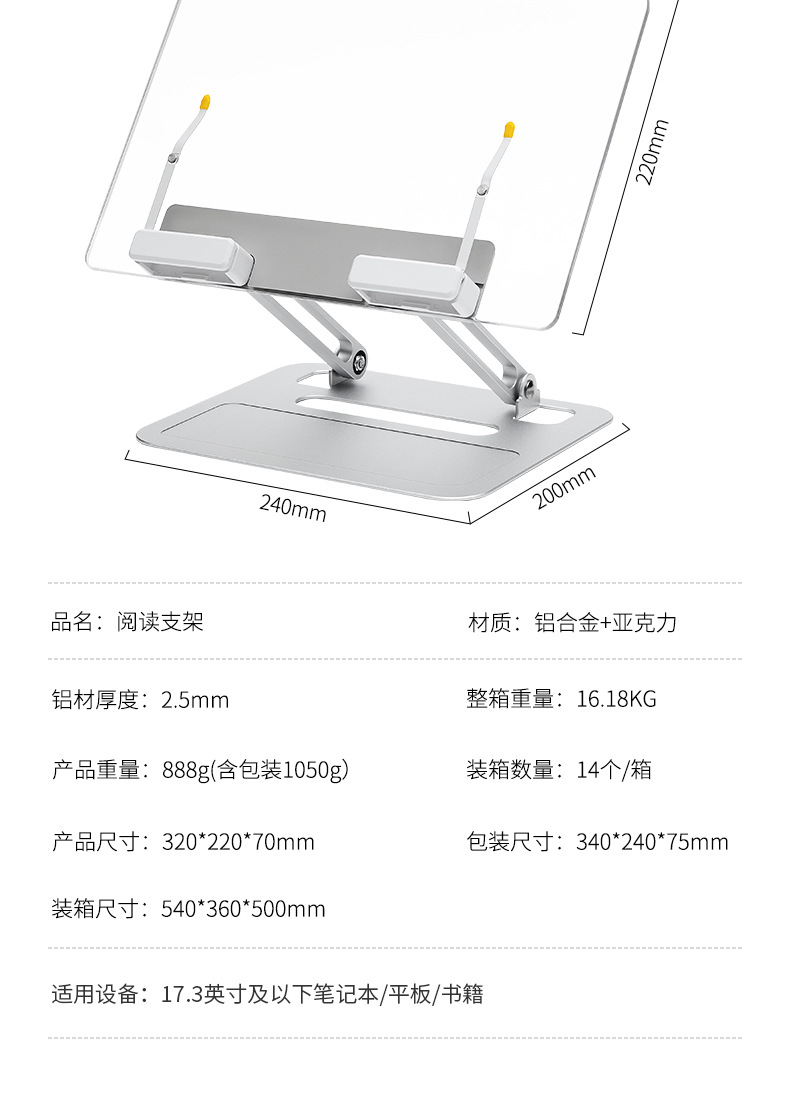 독서 랙 데스크탑 독서 책장은 어린이 독서 책장 알루미늄 합금 노트북 스탠드를 들어 올릴 수 있습니다