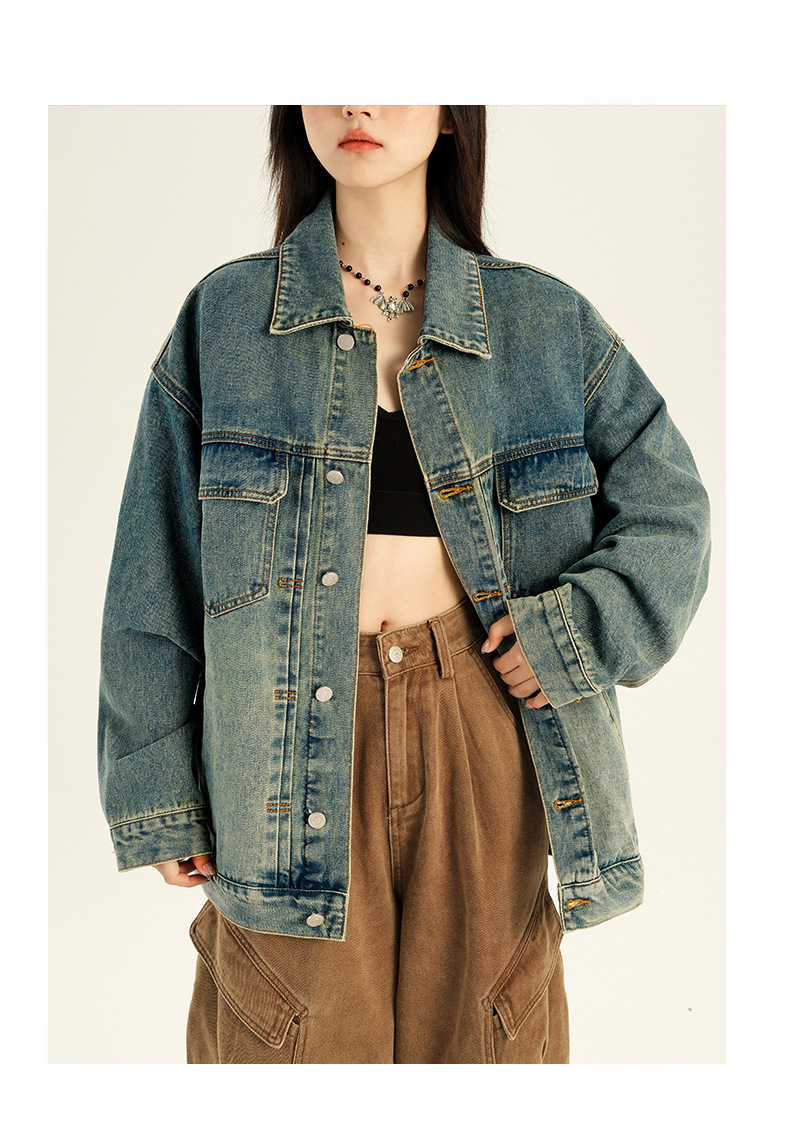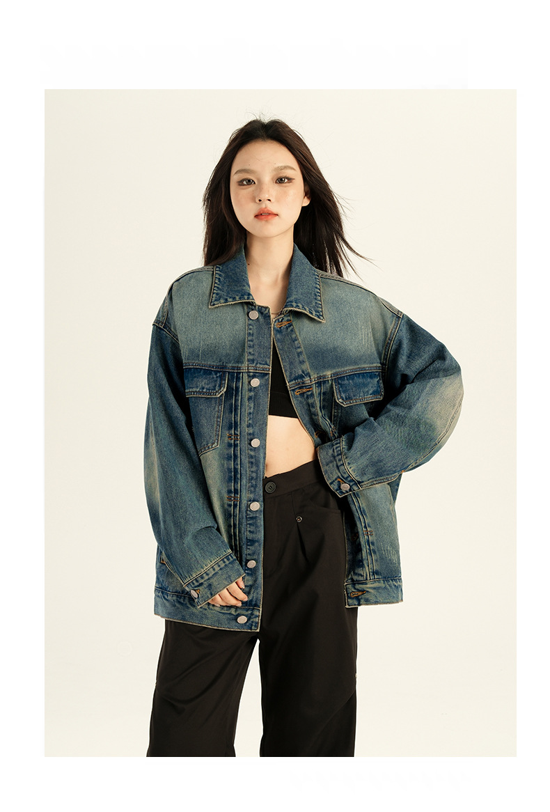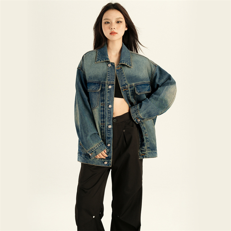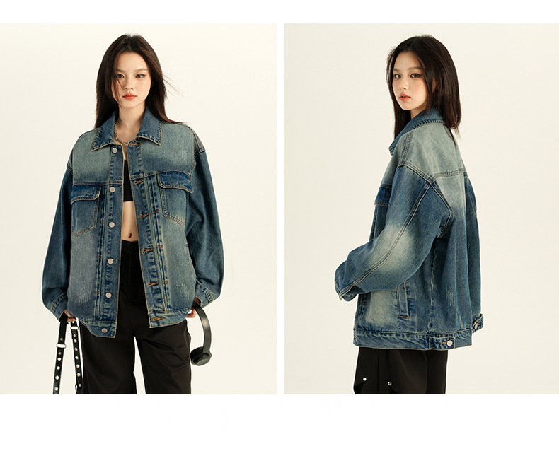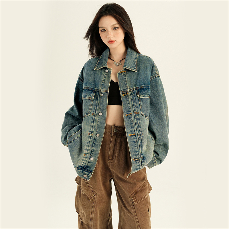 미국 스타일 데님 재킷 여성용 2025 가을 겨울 신상 레트로 루즈핏 드롭숄더 시크 만능 캐주얼 재킷 상의스토어 가기
