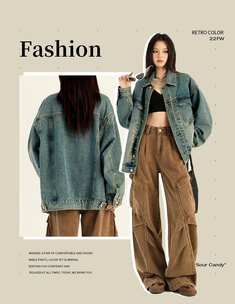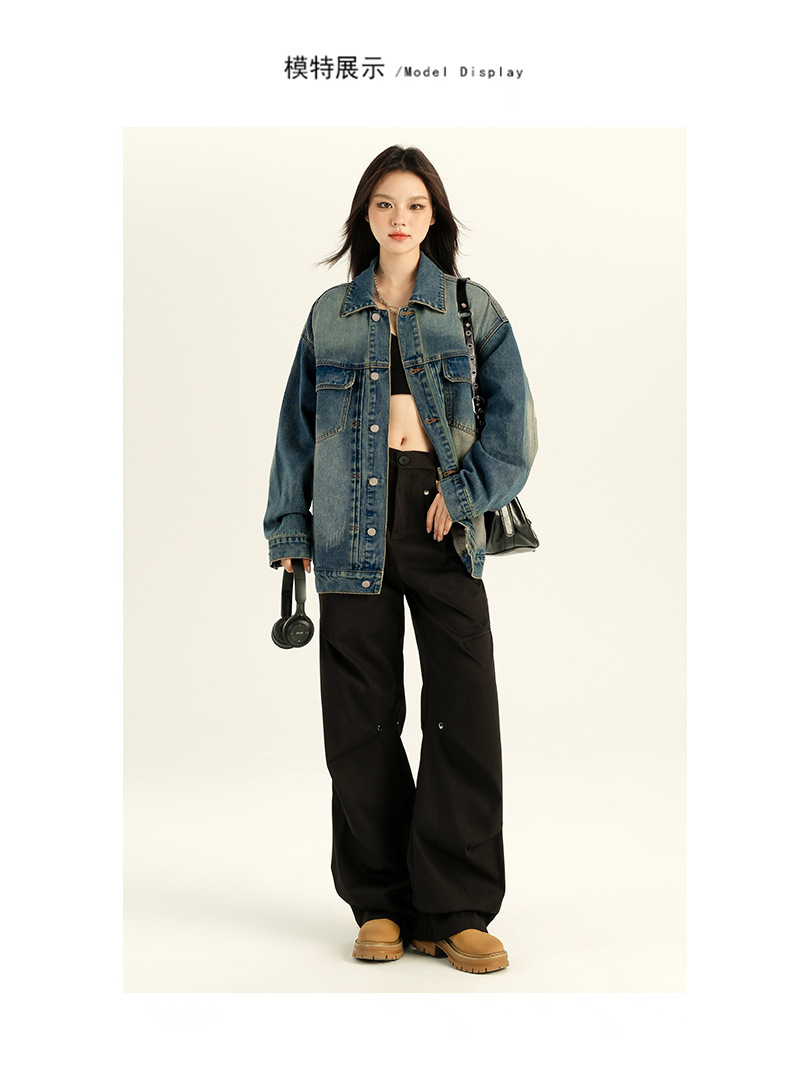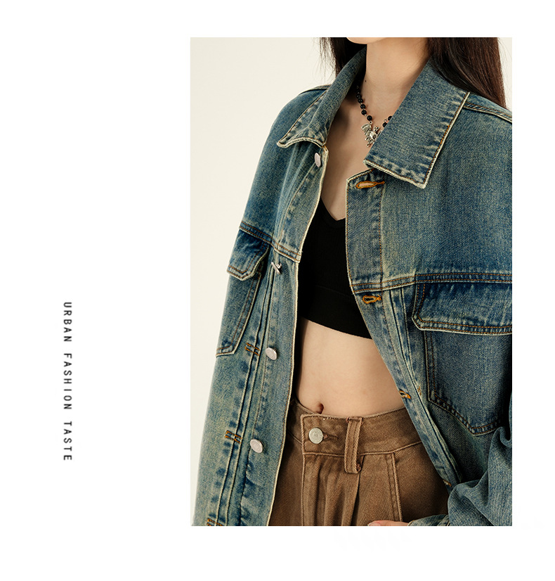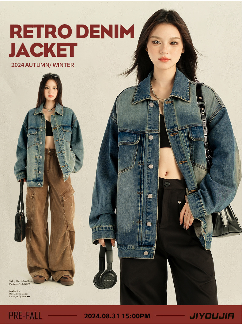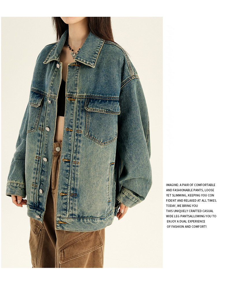 미국 스타일 데님 재킷 여성용 2025 가을 겨울 신상 레트로 루즈핏 드롭숄더 시크 만능 캐주얼 재킷 상의스토어 가기