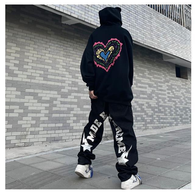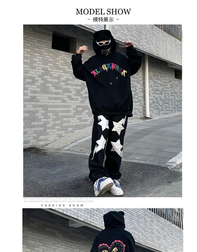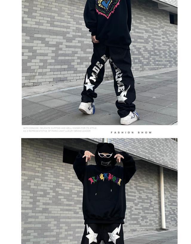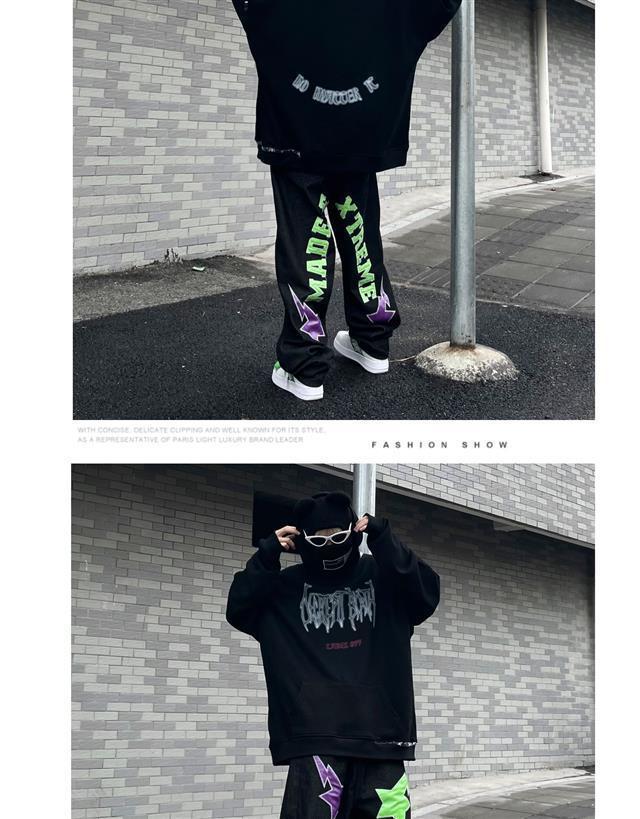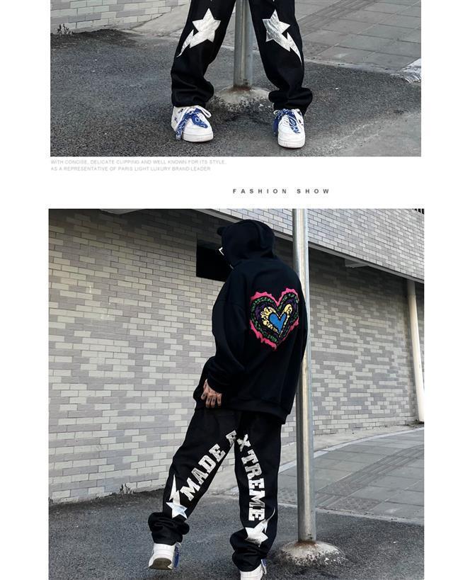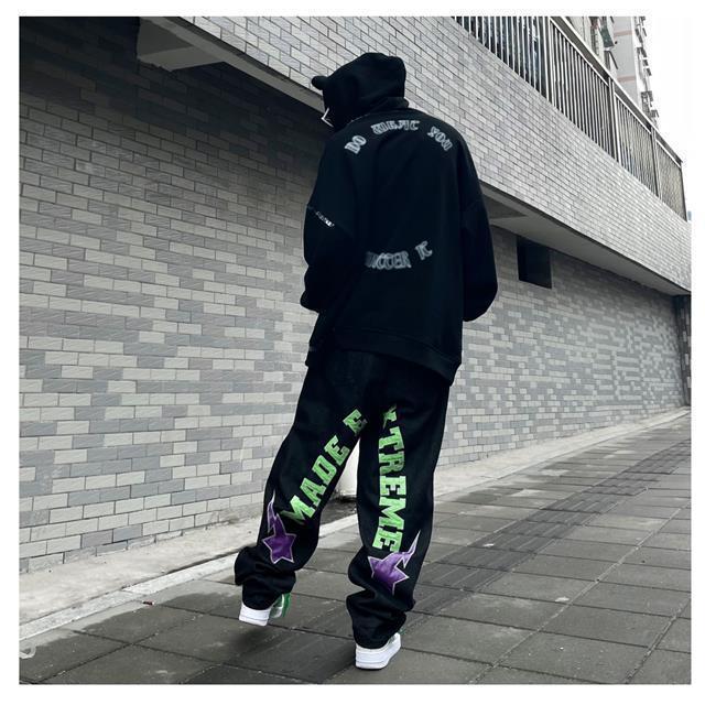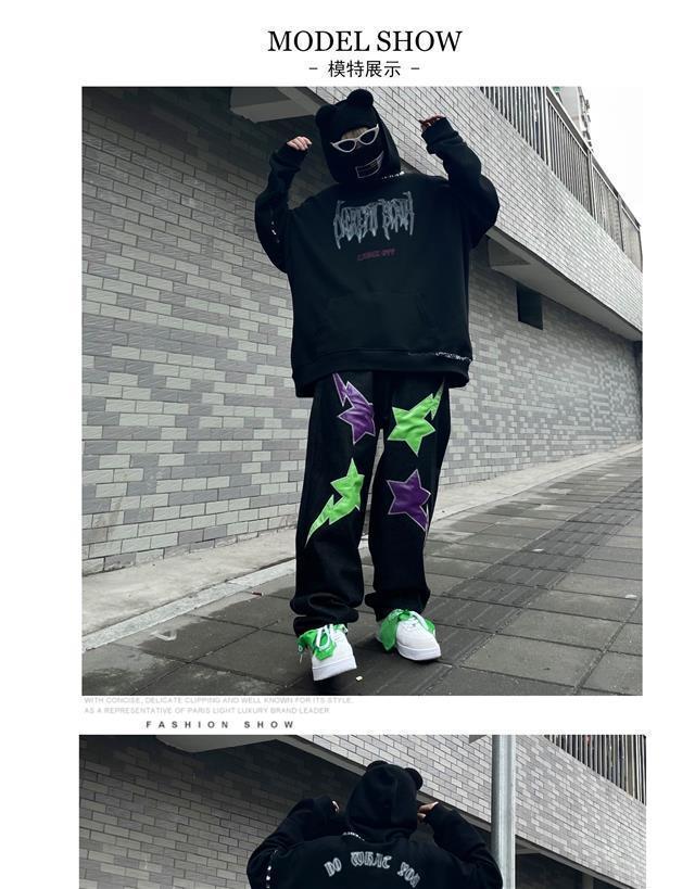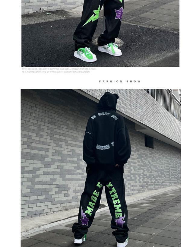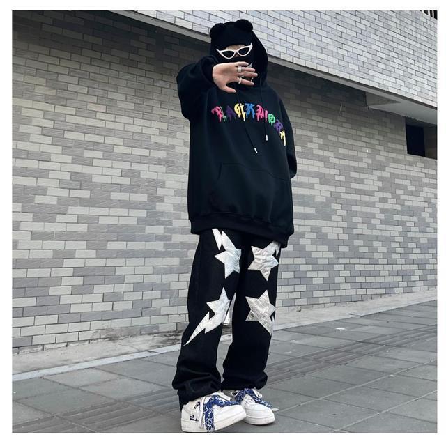 TRB 오리지널 전국 패션 힙합 스트리트 번개 다섯개 별 스티커 느슨한 캐주얼 와이드 레그 Hiphop 청바지 패션스토어 가기
