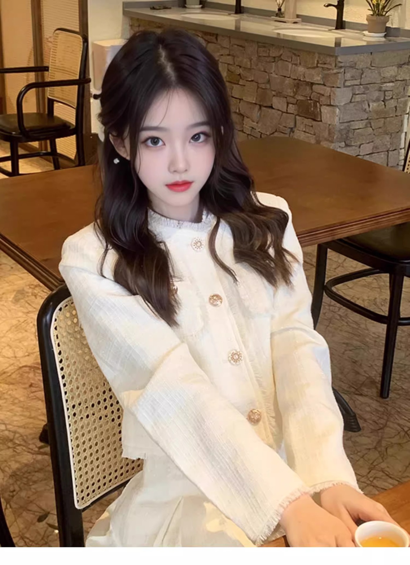 프랑스 스타일 샤넬 스타일 코트 스커트 세트 가을과 겨울 부자 가족 딸 우아한 연예인 숙녀 여성을위한 짧은 탑 2 피스 세트스토어 가기