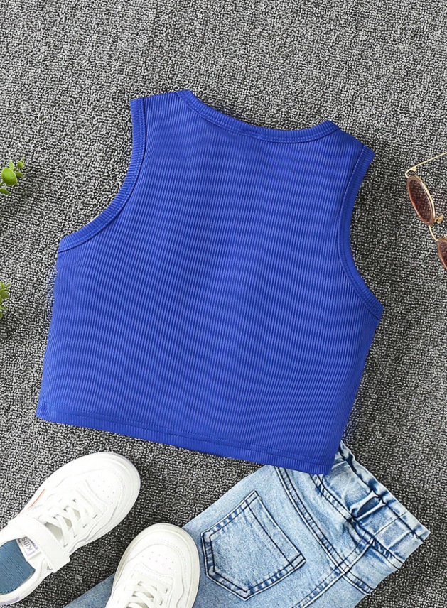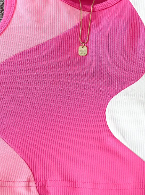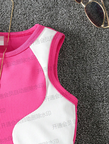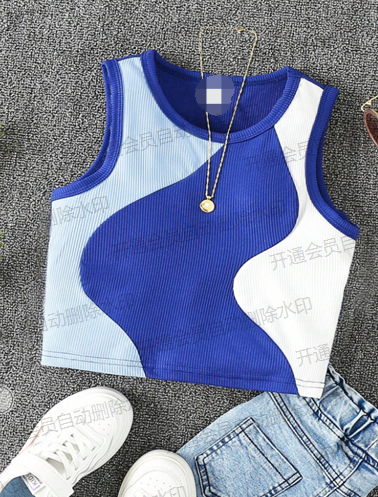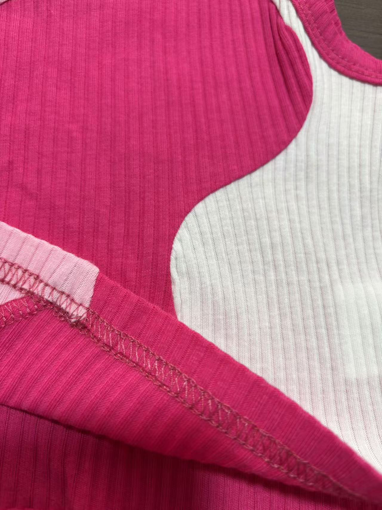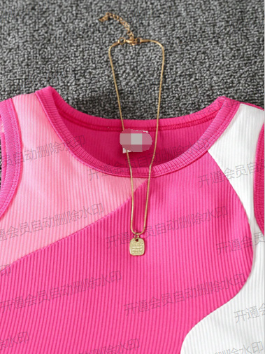 소녀 색상 매칭 조끼 퓨어 코튼 피트 카운터 품질 라운드 넥 슬링 국경 새로운 폭발 순수 코튼 걸스 여름