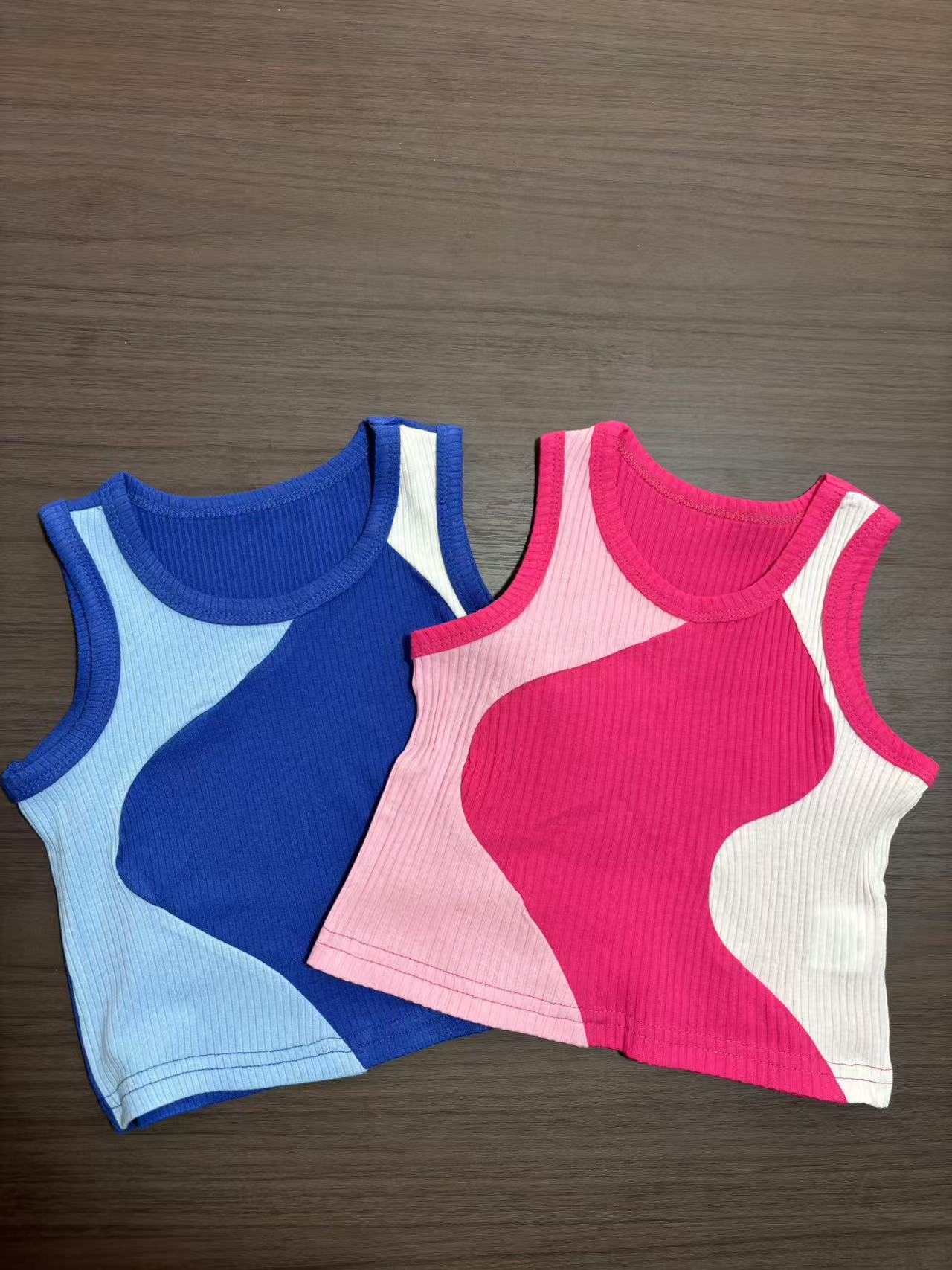 소녀 색상 매칭 조끼 퓨어 코튼 피트 카운터 품질 라운드 넥 슬링 국경 새로운 폭발 순수 코튼 걸스 여름스토어 가기