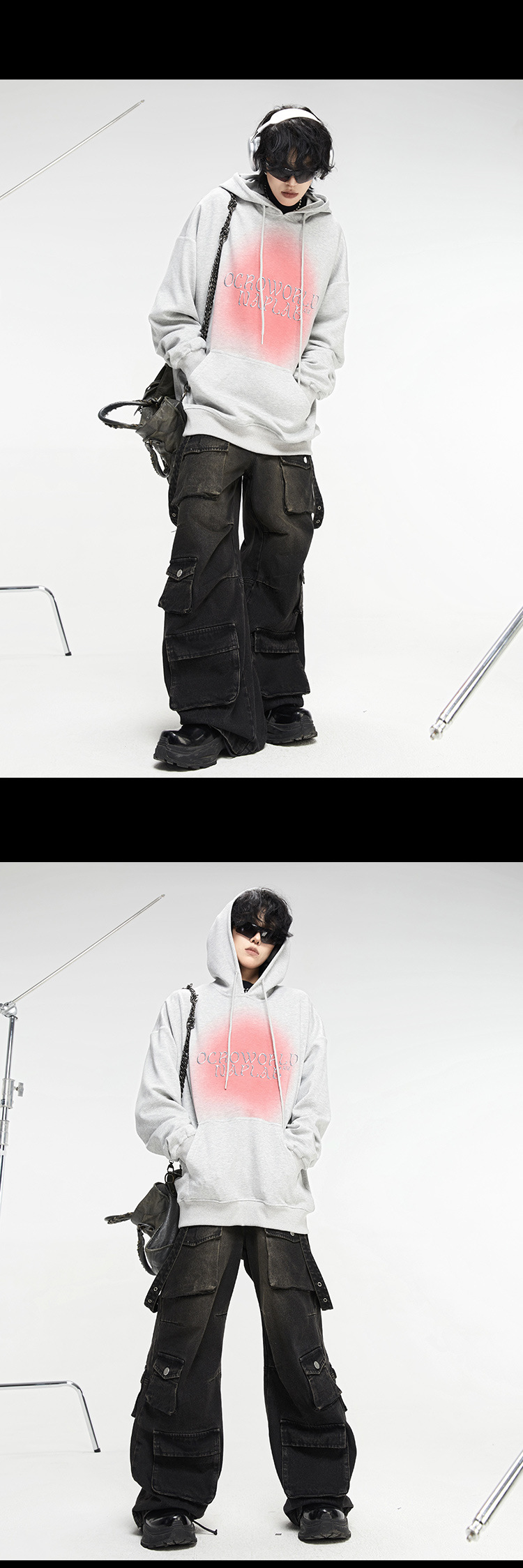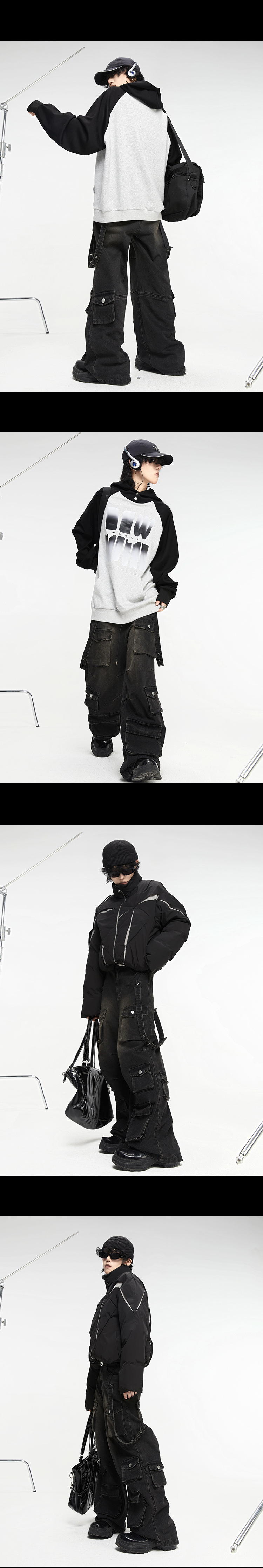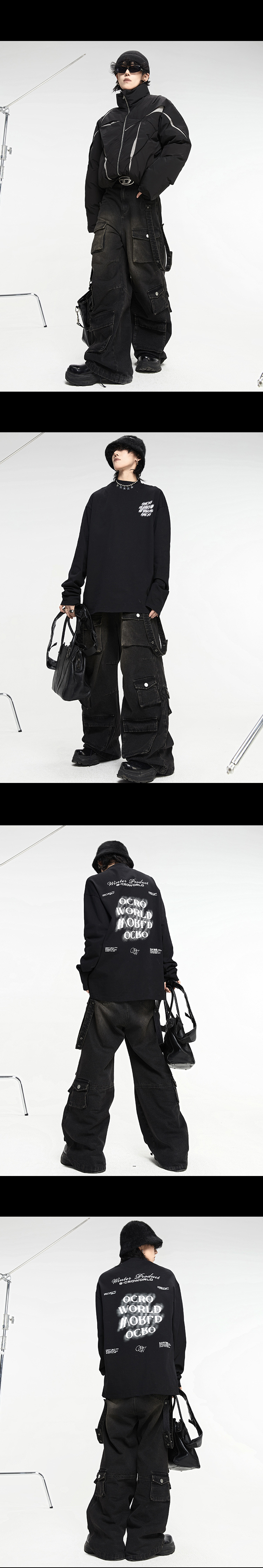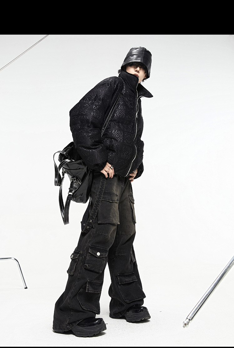 2024 하이 스트리트 멀티 포켓 레트로 와이드 레그 청바지 남자 가을 루즈 스트리트 하이퍼 힙합 스트레이트 바지스토어 가기