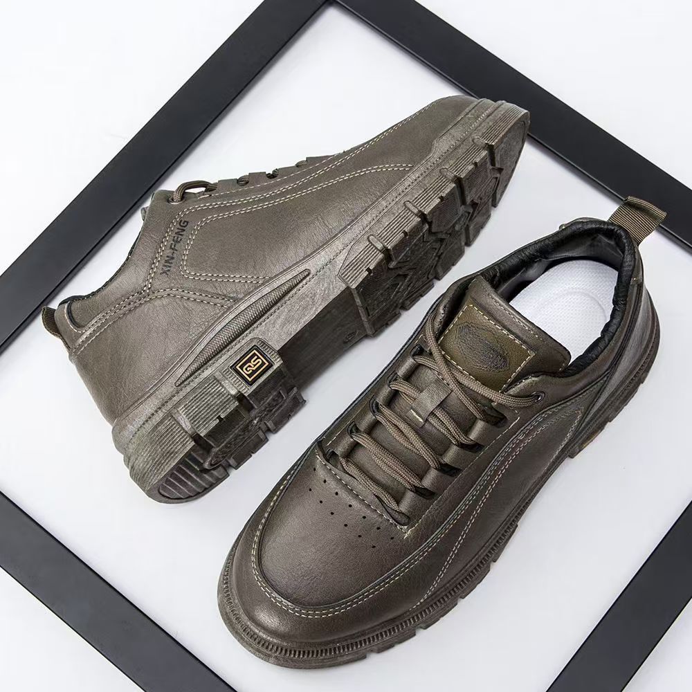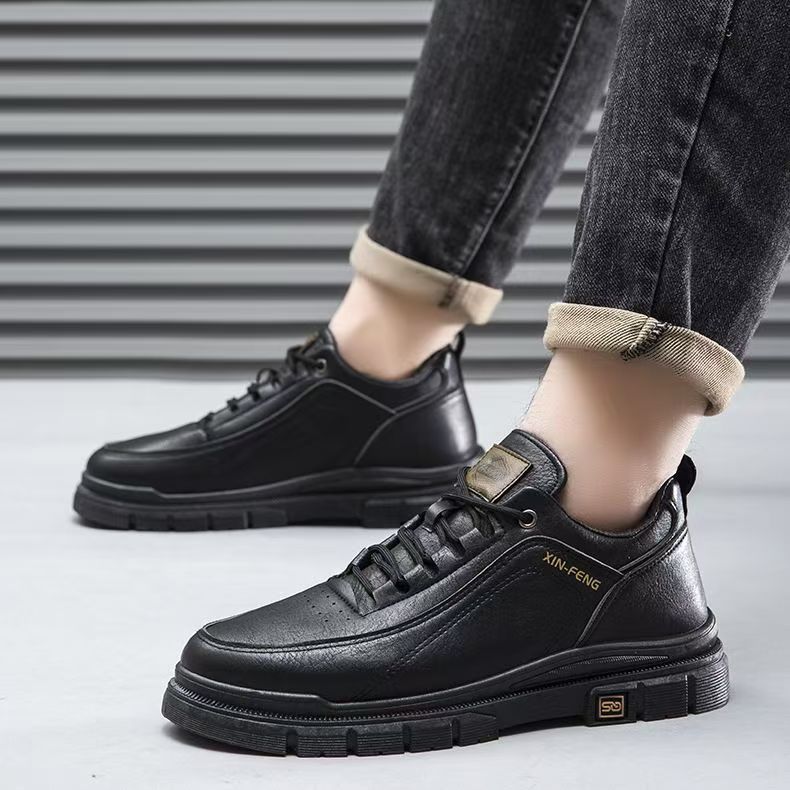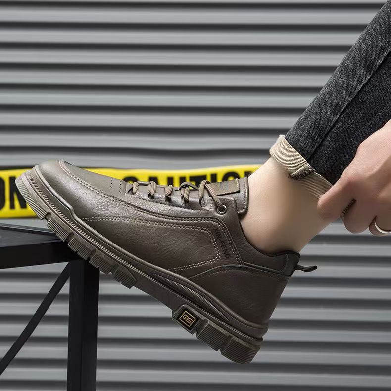 남성 신발 가을 2024 새로운 작업복 보드 신발 남성 캐주얼 가죽 신발 영국 스타일 레트로 로우 탑 마틴 부츠 미끄럼 방지