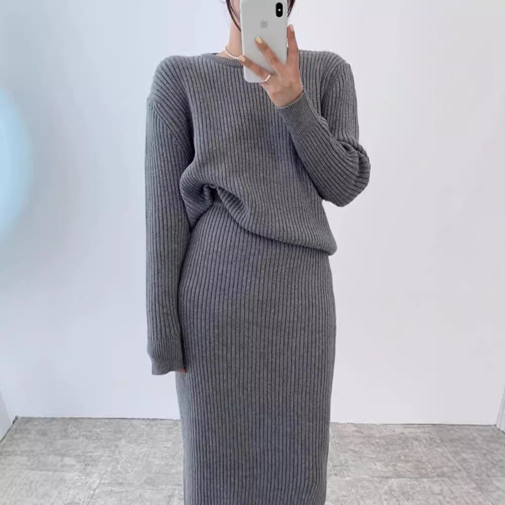 한국 세련된 우아한 캐주얼 세트 여성의 가을과 겨울 새로운 소금 풀오버 스웨터 슬림핏 엉덩이 원피스 투피스 세트