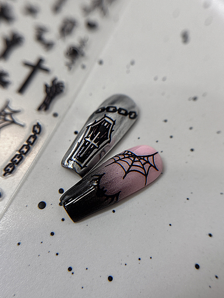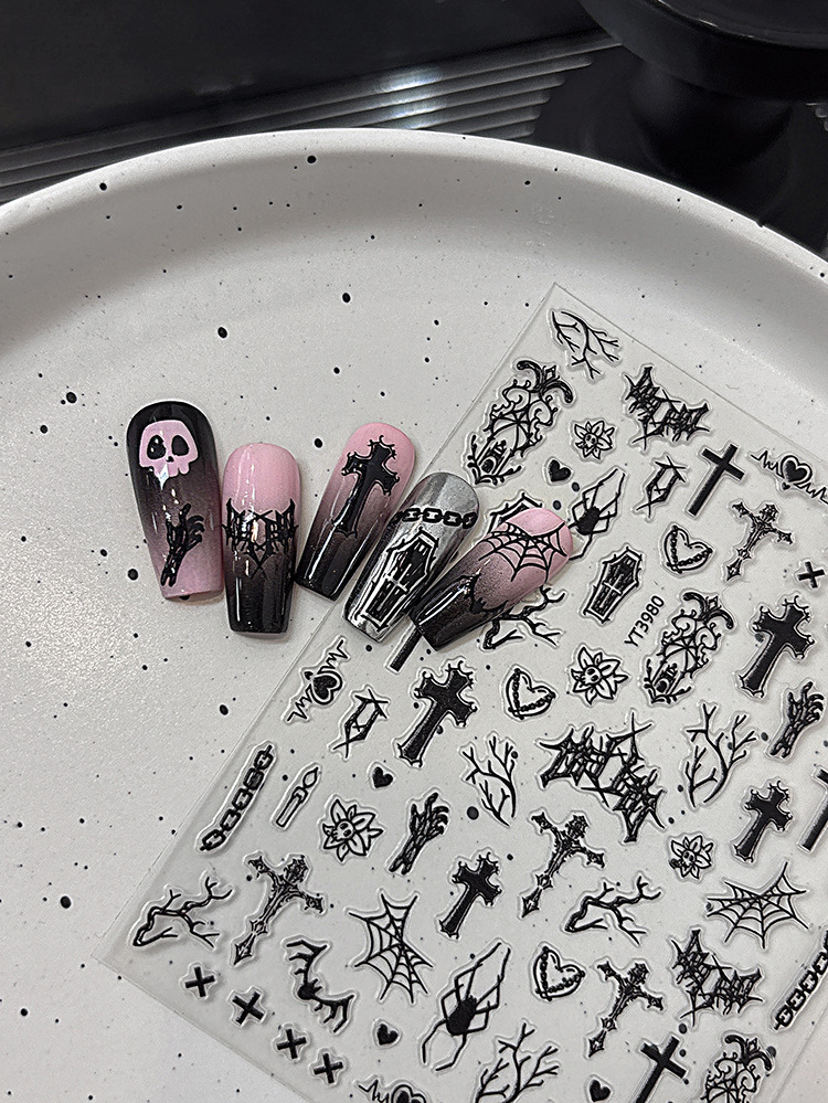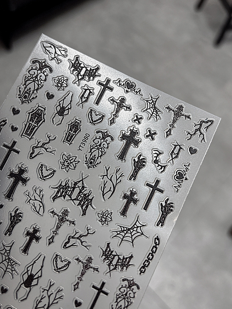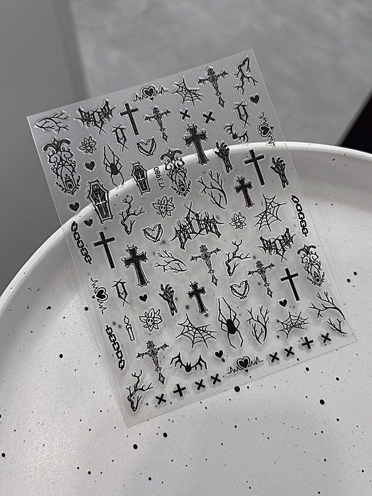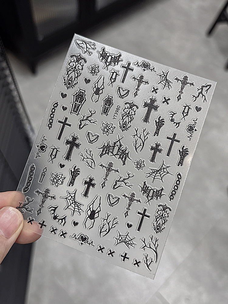 YITU 개미 그림 어두운 검은 낙서 네일 아트 스티커 할로윈 시리즈 접착 양각 네일 장식 스티커 YT3980스토어 가기