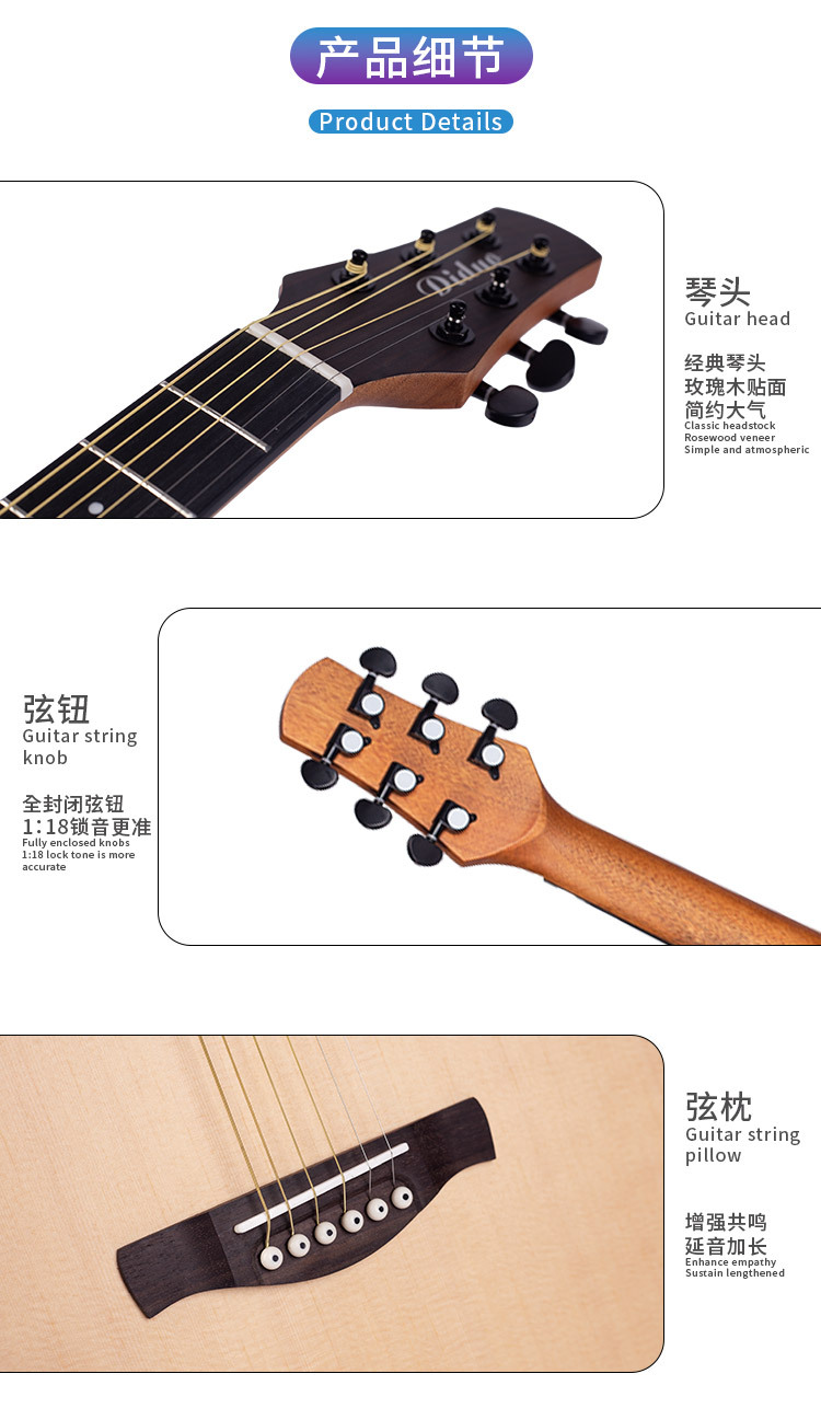 34 인치 싱글 보드 기타 36 인치 가문비 나무 매트 어쿠스틱 기타 악기 제조 업체 재고 도매 성인 어린이