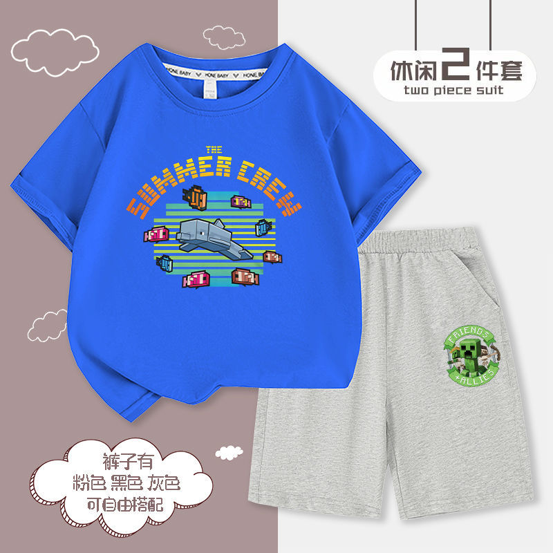 새로운 유행 여름 내 세계 어린이 티셔츠 짧은 소매 투피스 세트 소년 면화 어린이 최고 세트 트렌디스토어 가기