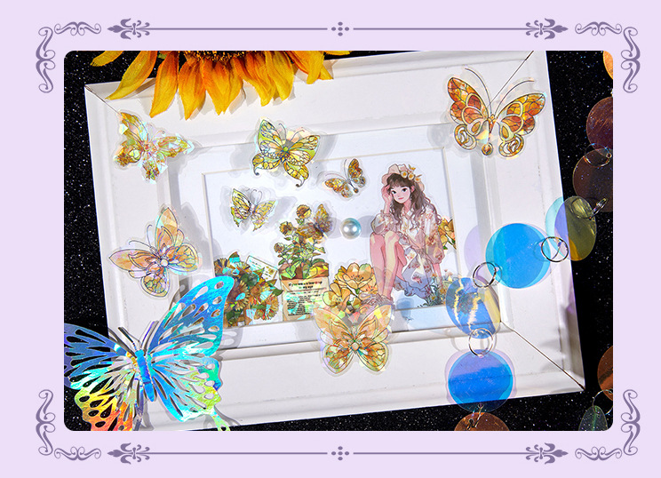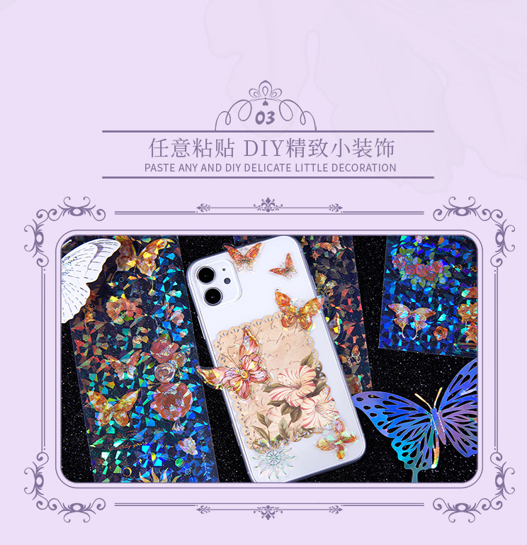 라이트 스티커 선택 영역 드림 나비 시리즈 나비 테마 쉘 라이트 핸드 계정 장식 소재 컷 필름 스티커 가방