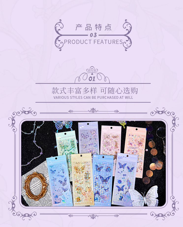 라이트 스티커 선택 영역 드림 나비 시리즈 나비 테마 쉘 라이트 핸드 계정 장식 소재 컷 필름 스티커 가방스토어 가기