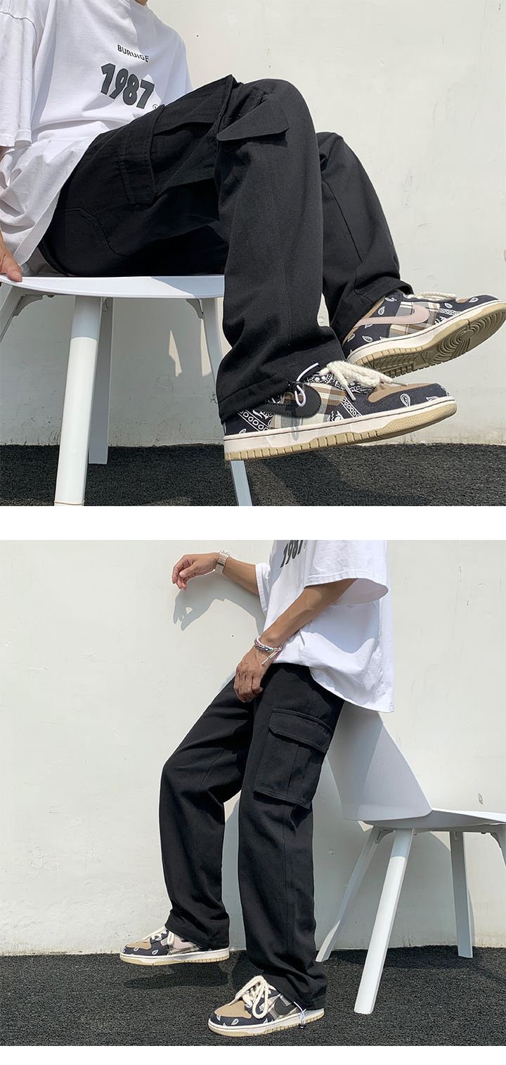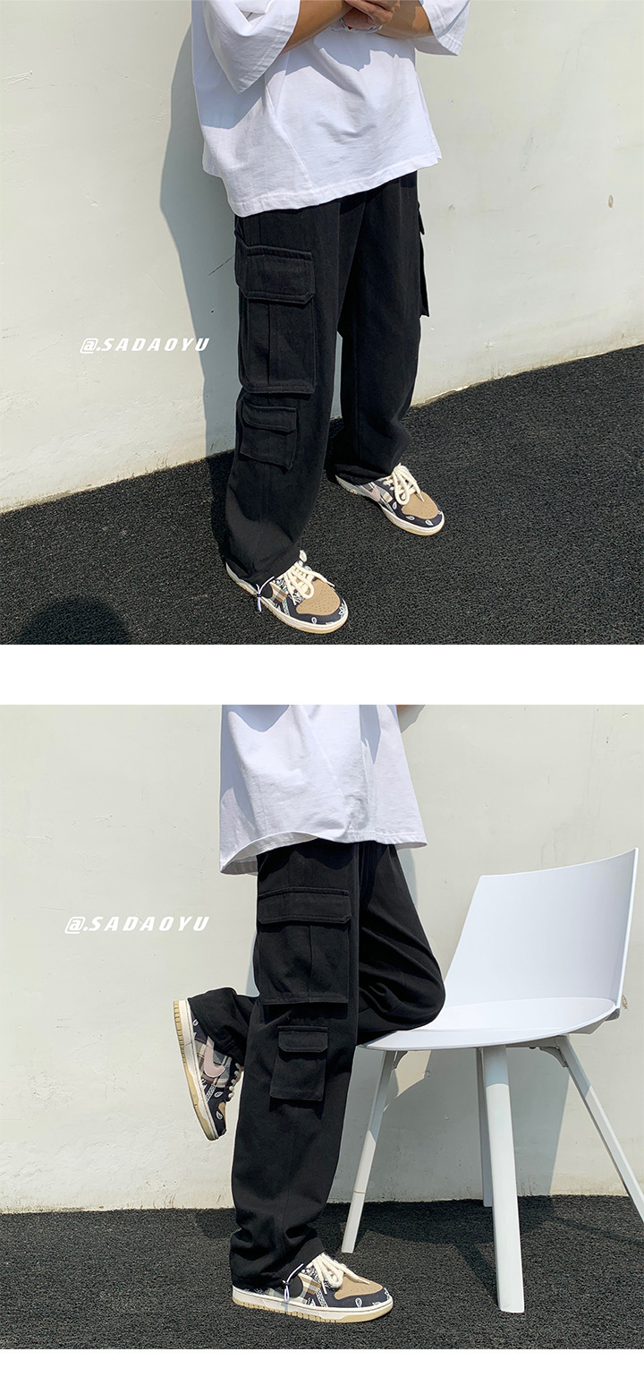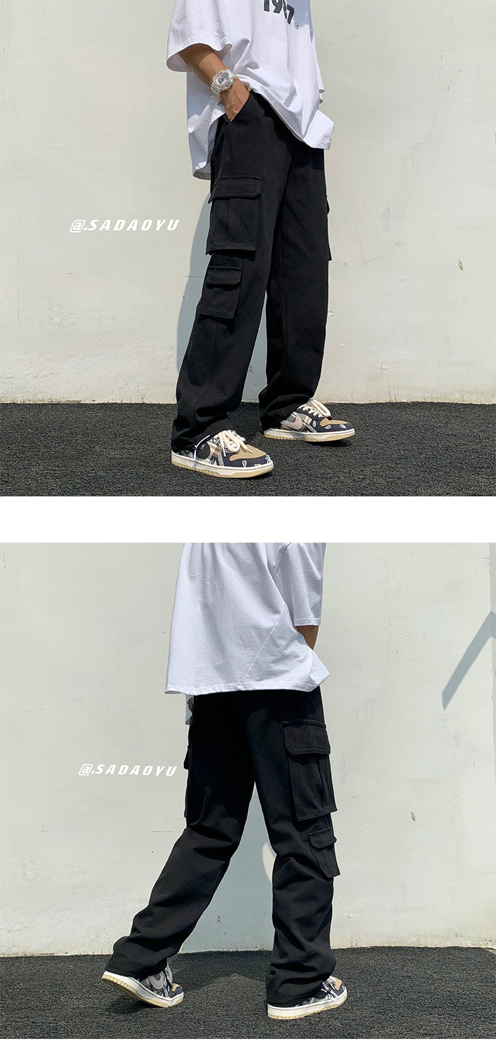 흰색화물 바지 남자 가을 전국 패션 멀티 포켓 바지 하이 스트리트 인 패션 브랜드 덤핑 느슨한 와이드 다리 바지스토어 가기