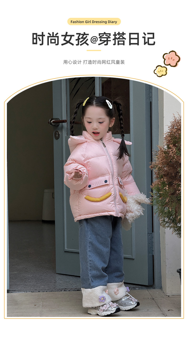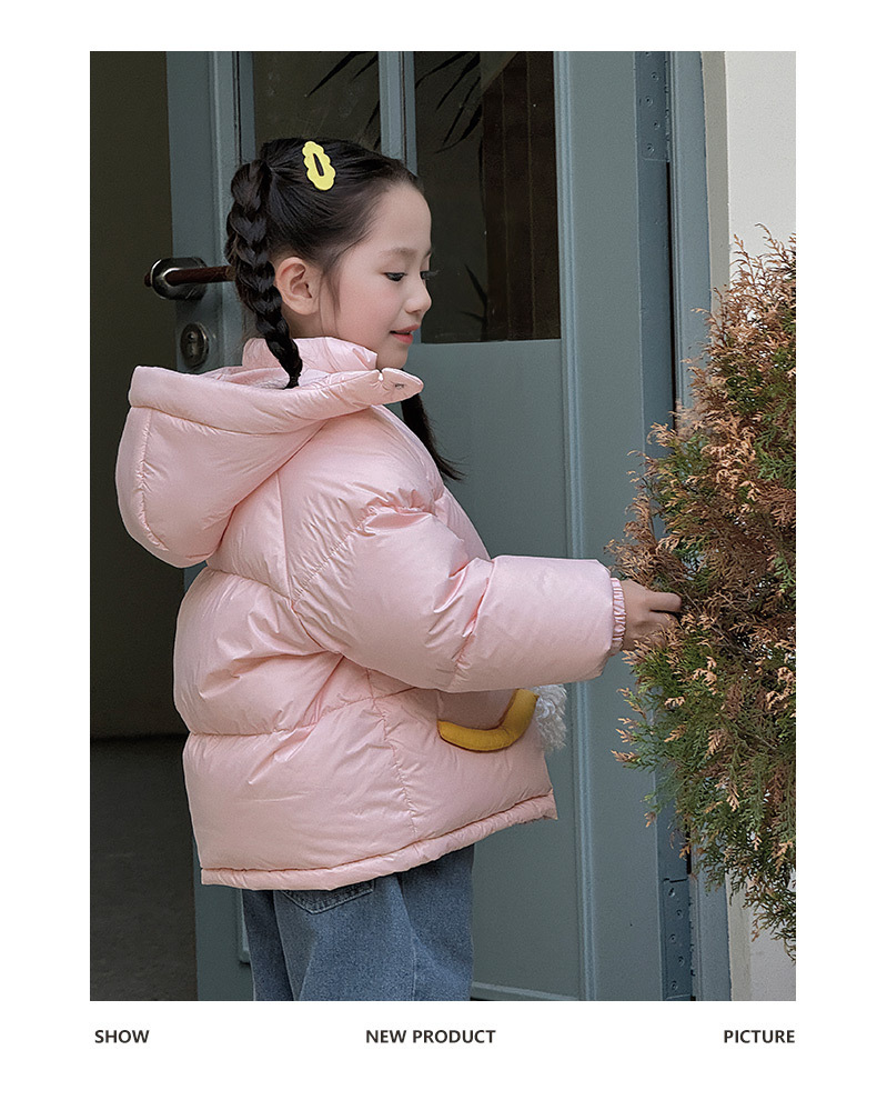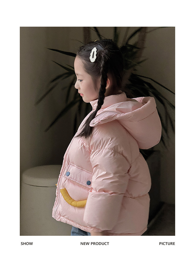어린이 다운 재킷 2024 겨울 새로운 어린이 다운 재킷 새로운 GB 90 화이트 덕 다운 베이비 후드 아동용 코트