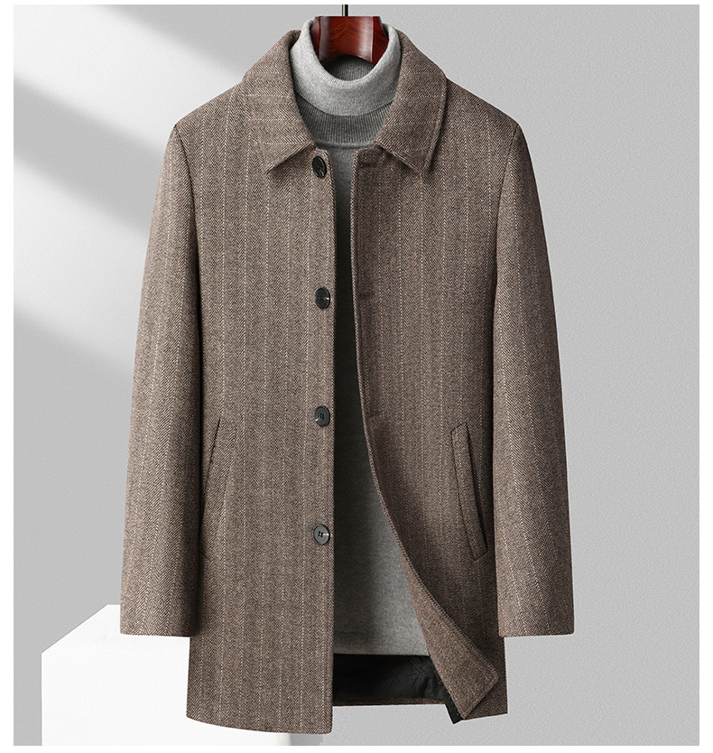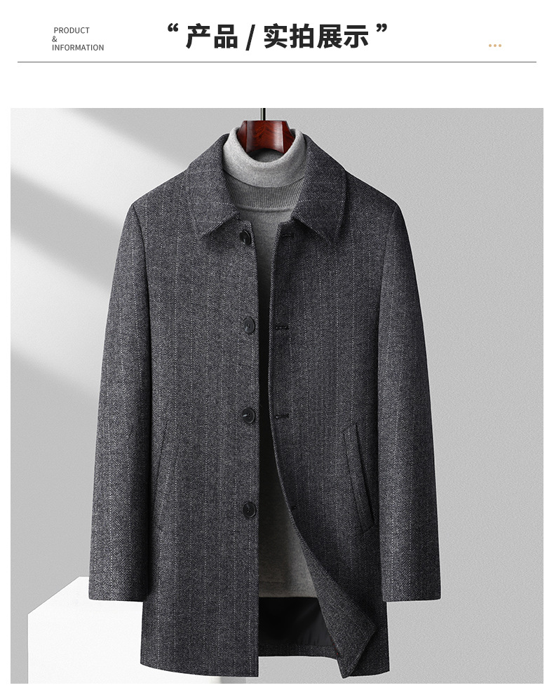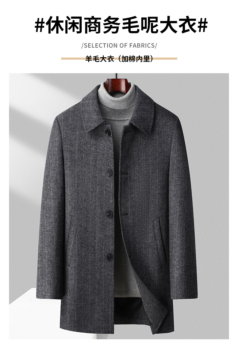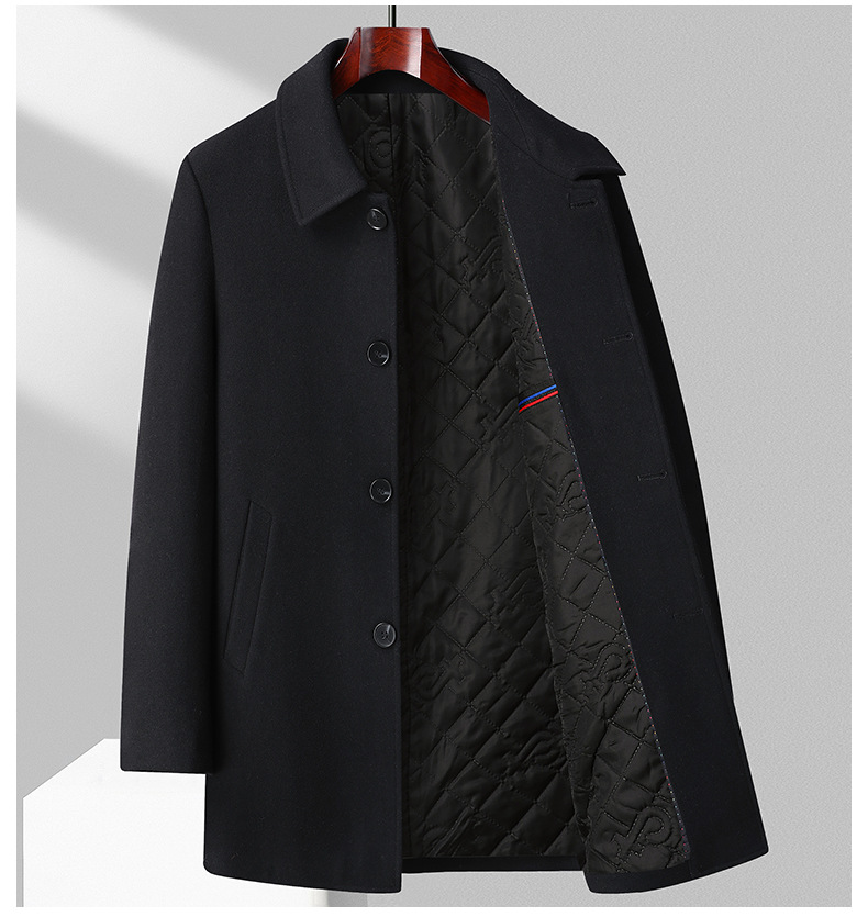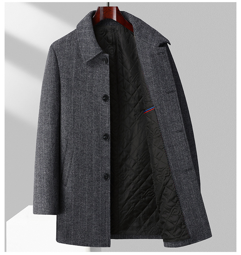 중간 길이의 남자 모직 코트 겨울 새로운 면 중년 및 노인 모직 코트 남자 아빠의 두꺼운스토어 가기