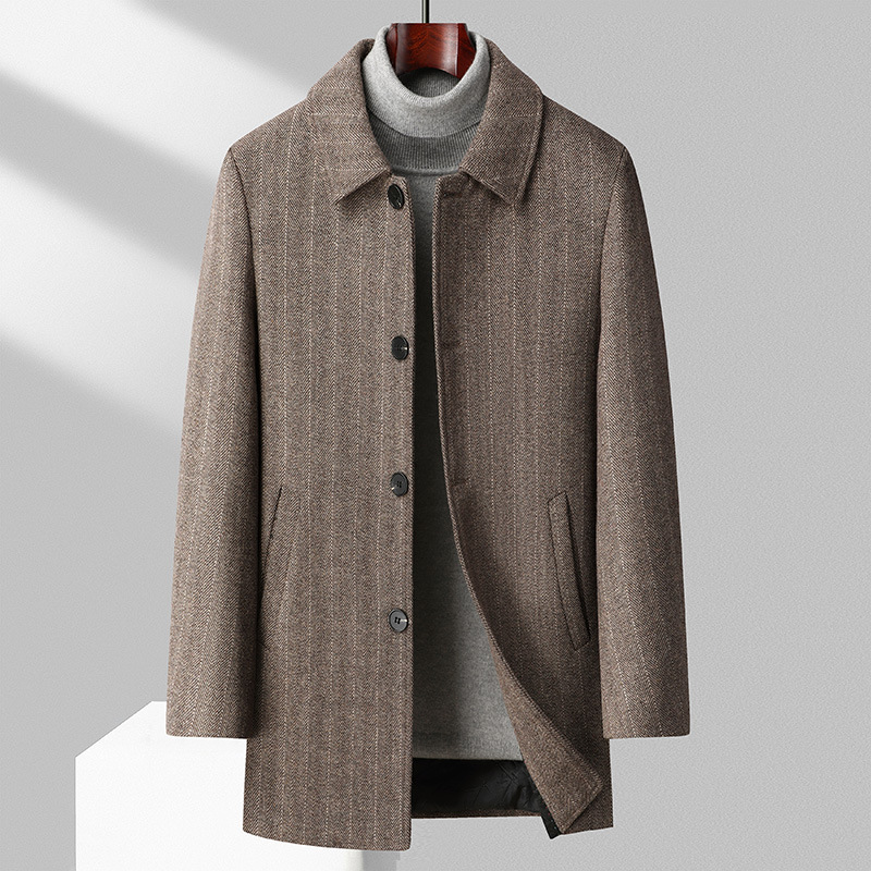 중간 길이의 남자 모직 코트 겨울 새로운 면 중년 및 노인 모직 코트 남자 아빠의 두꺼운