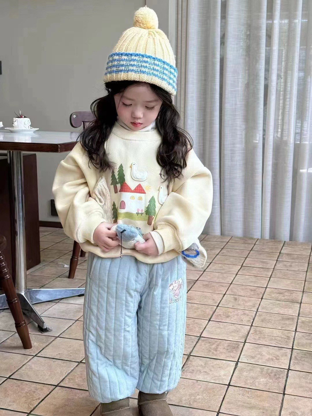 女童童套装2025秋冬新款加绒卡通卫衣女宝宝条纹打底裤童套装批发