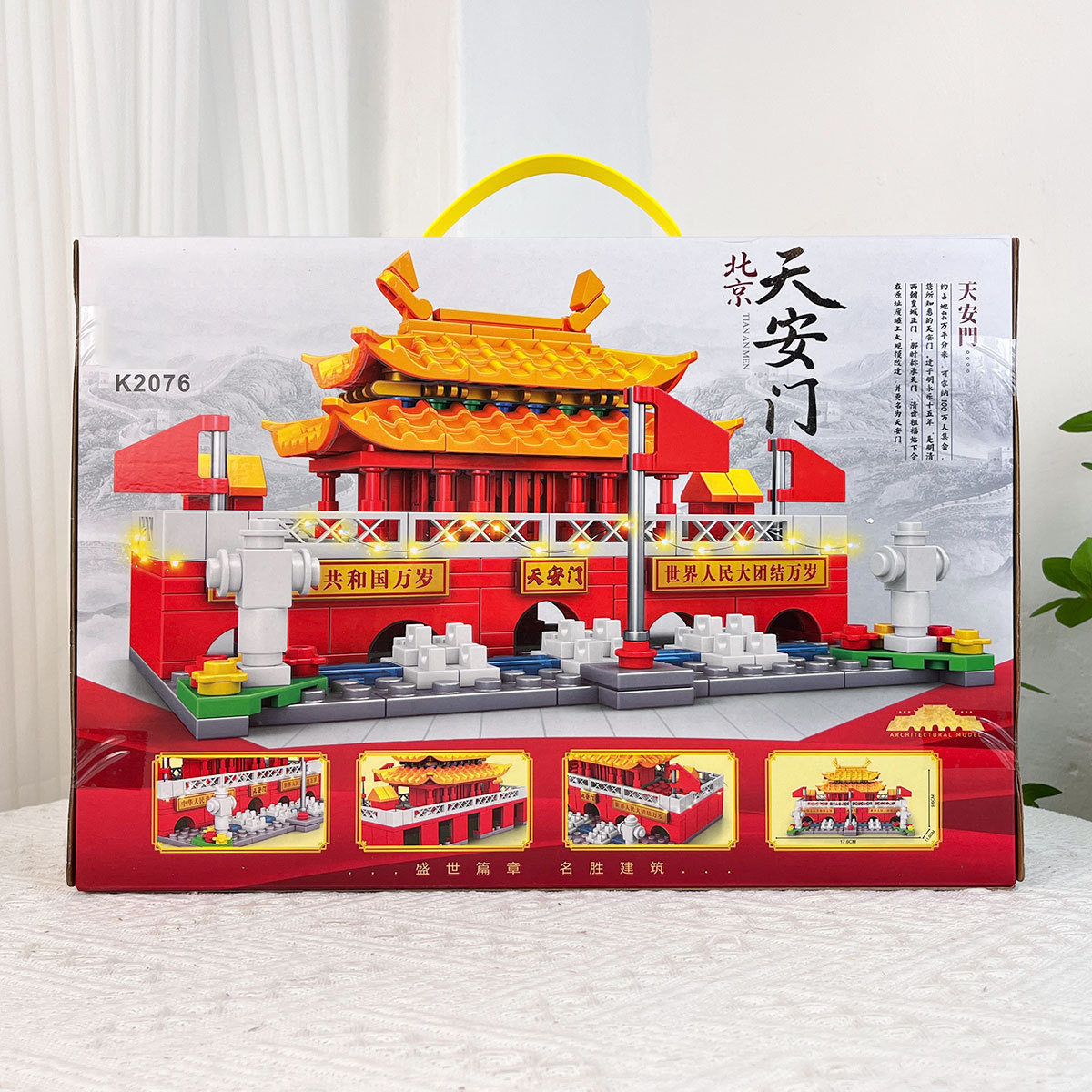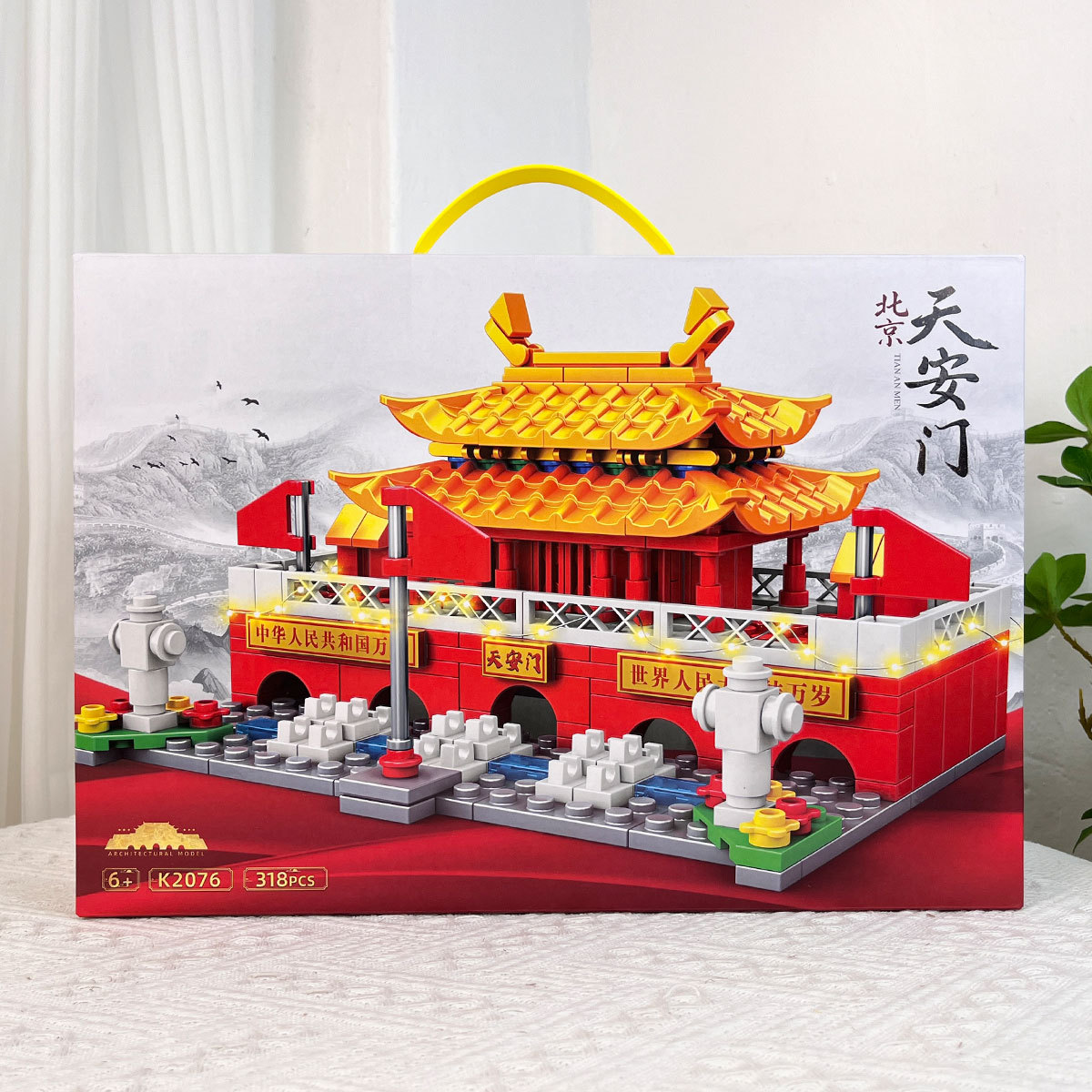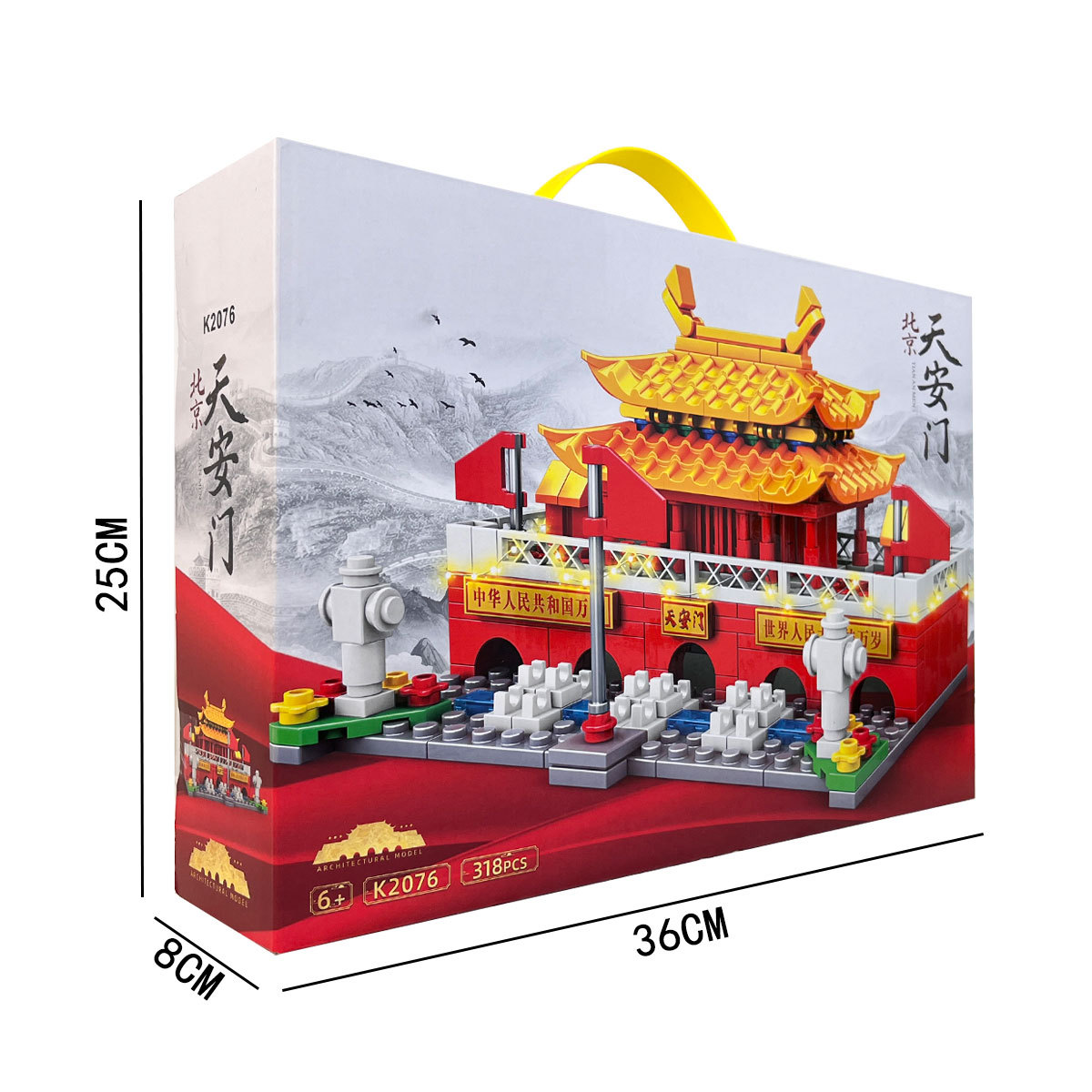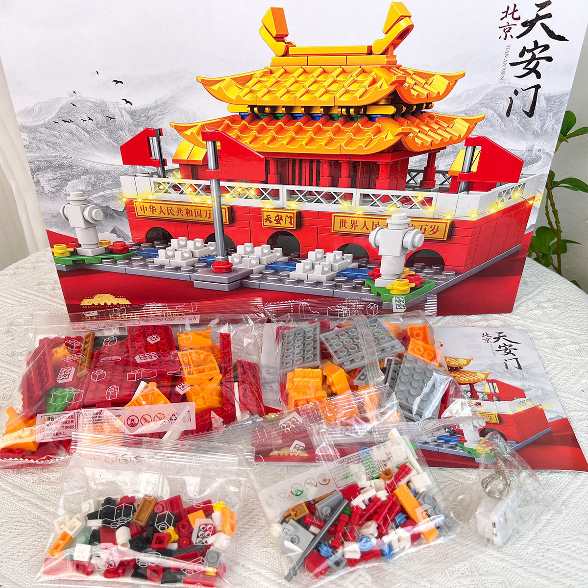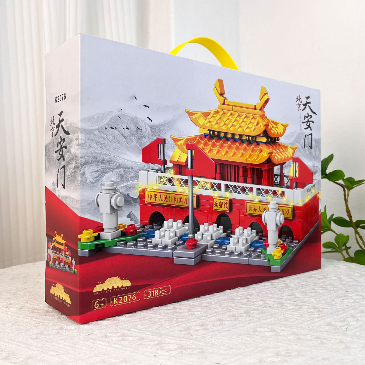 Guofeng Guochao 천안문 광장 자금성 건물, 조명 교육 및 훈련 조직 선물 우표로 장난감 건물 모델 차단