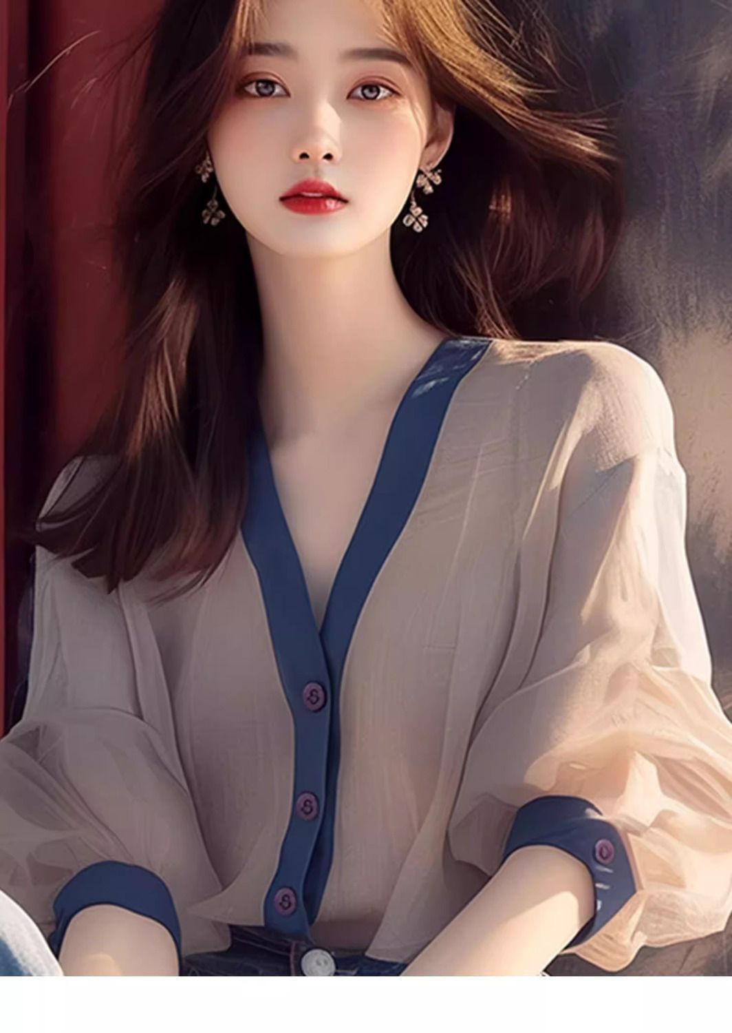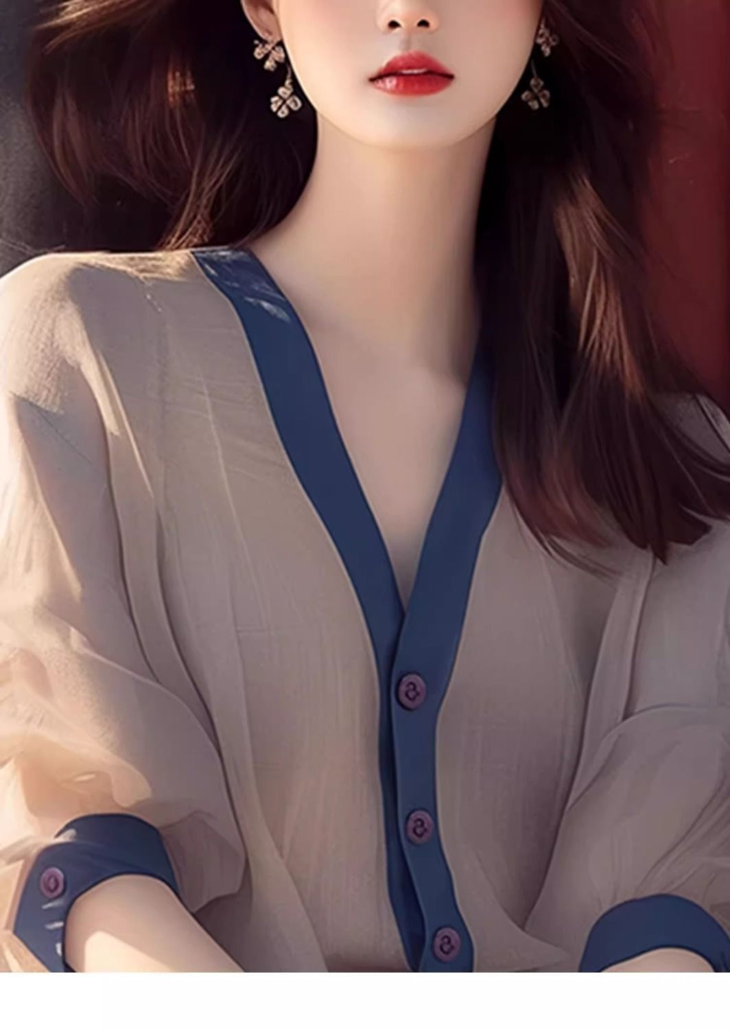 셔츠 2024 새로운 여성 디자인 센스 우아한 느슨한 긴 소매 빛 고급 고급 고급 프랑스 스타일 세련된 아름다운 탑