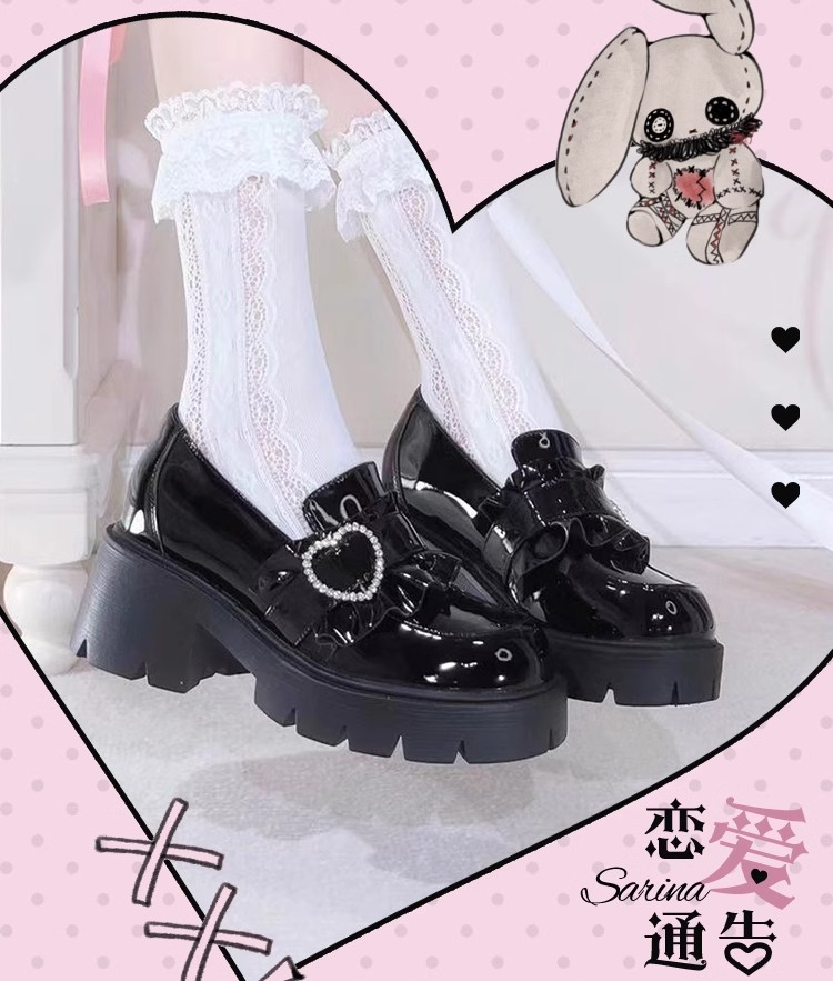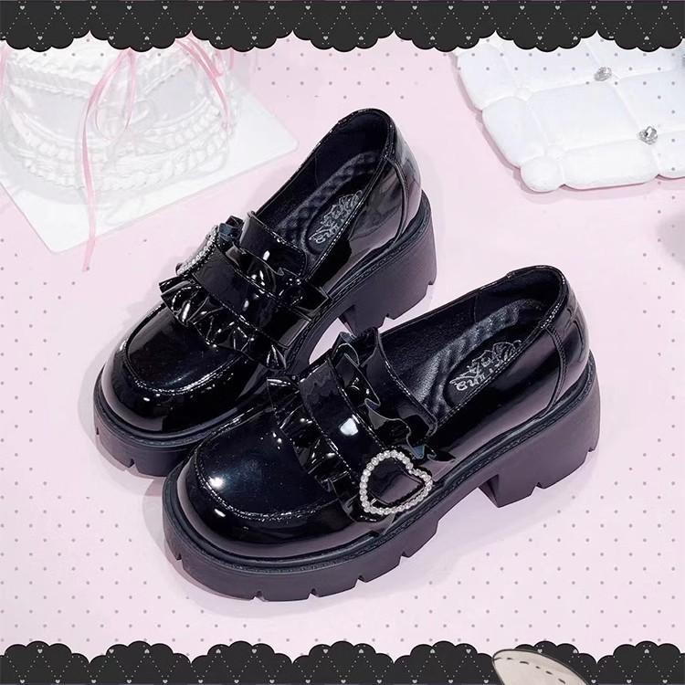 일본 스타일 Ins 유행 방수 플랫폼 하이힐 로리타 사랑 싱글 레이어 신발 여성의 2024 가을 새로운 대학 스타일 작은 가죽 신발스토어 가기