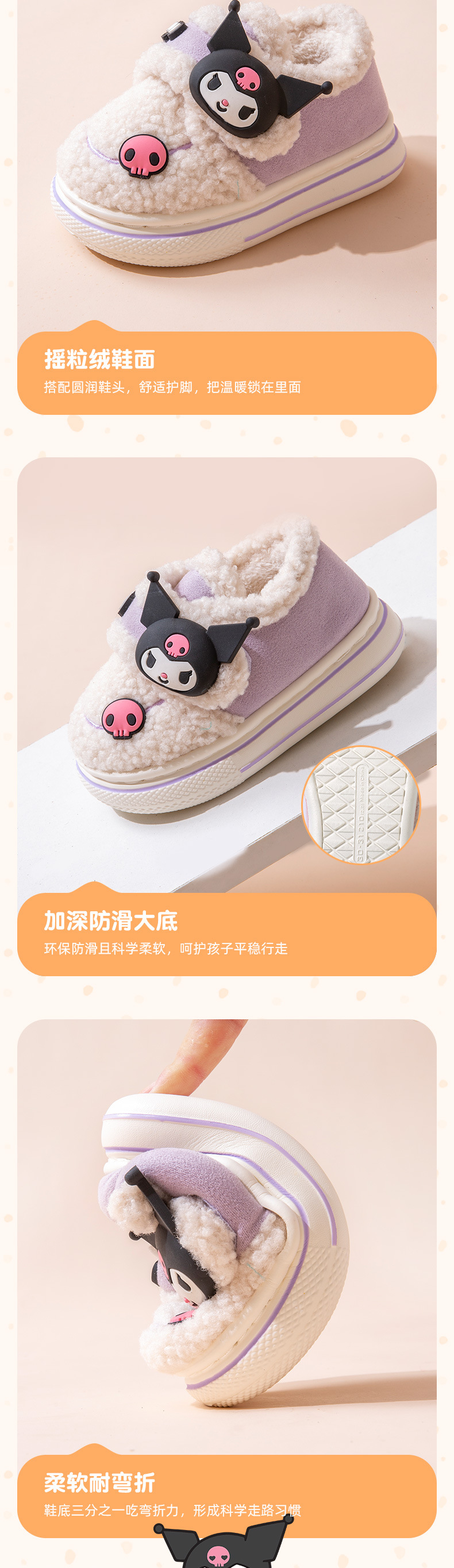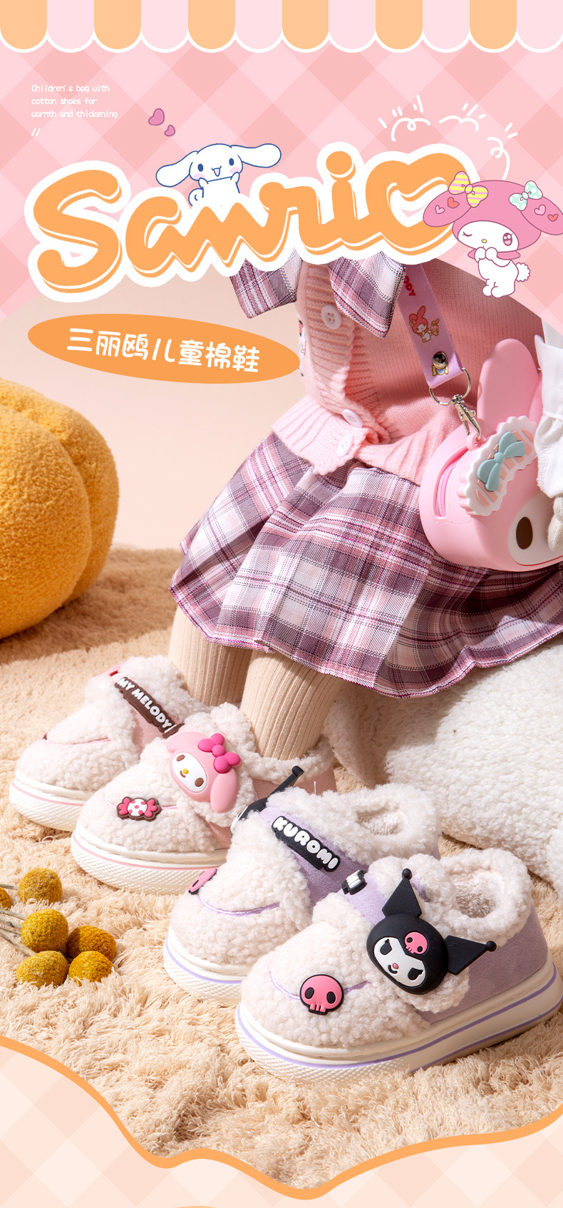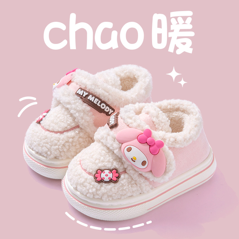 난보 완 쿨로 미 어린이 면 슬리퍼 가을 겨울 소녀 공주 산리오 실내 따뜻한 기모 키드 신발