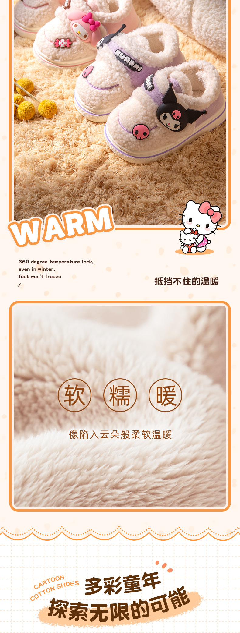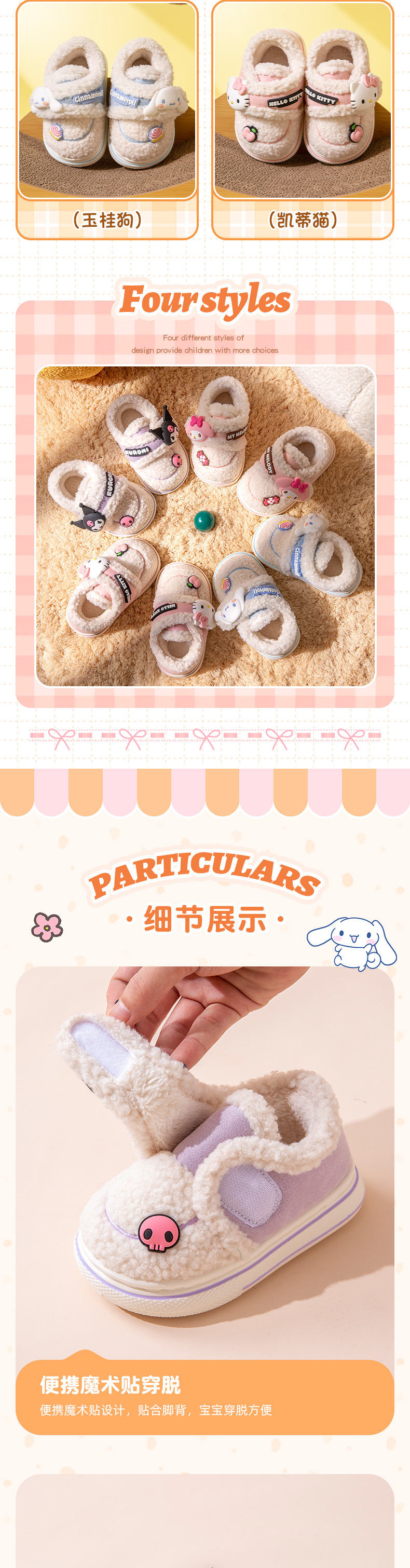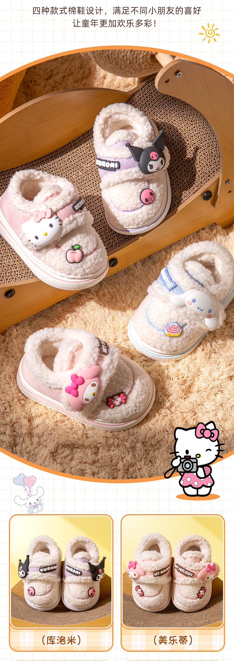 난보 완 쿨로 미 어린이 면 슬리퍼 가을 겨울 소녀 공주 산리오 실내 따뜻한 기모 키드 신발