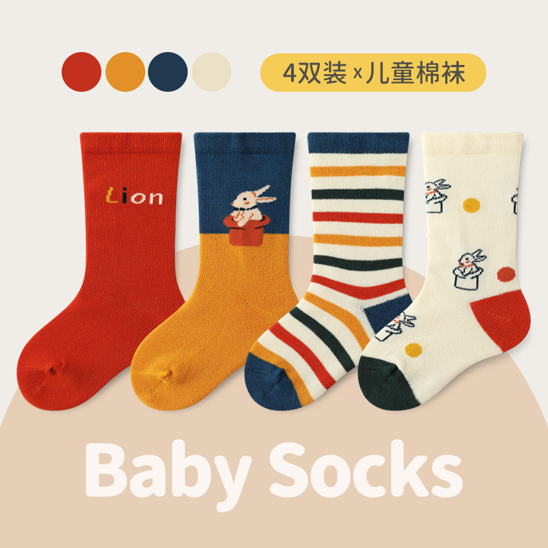 아기 양말 가을 겨울용 A급 면 중목 양말 아기 어린이 만화 귀여운 편안한 통기성 높은 탄력성 발을 조이지 않음스토어 가기