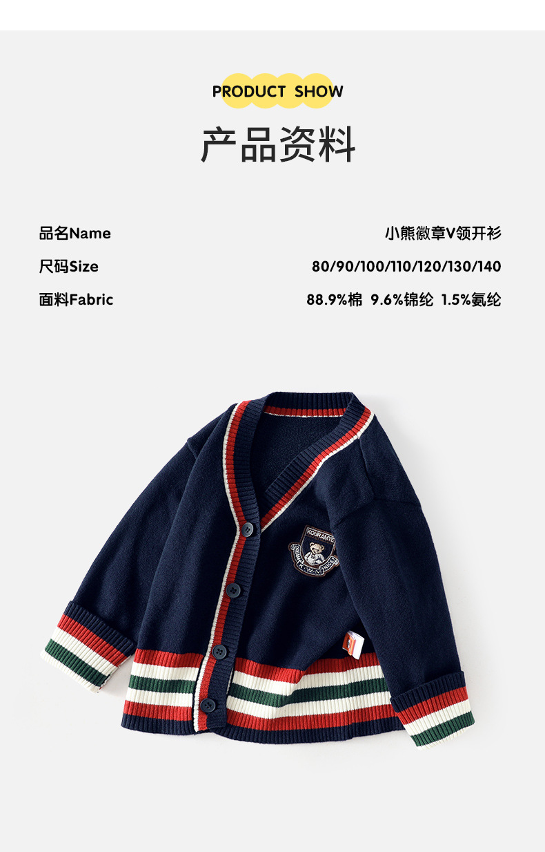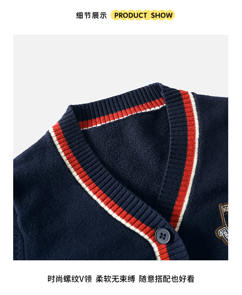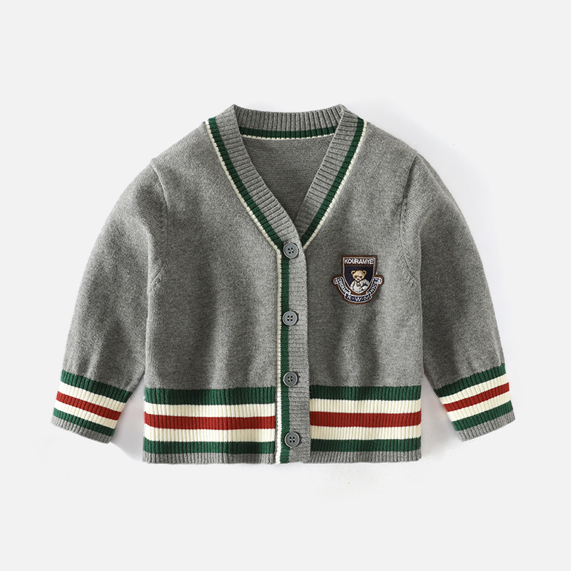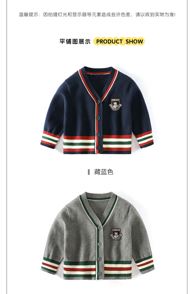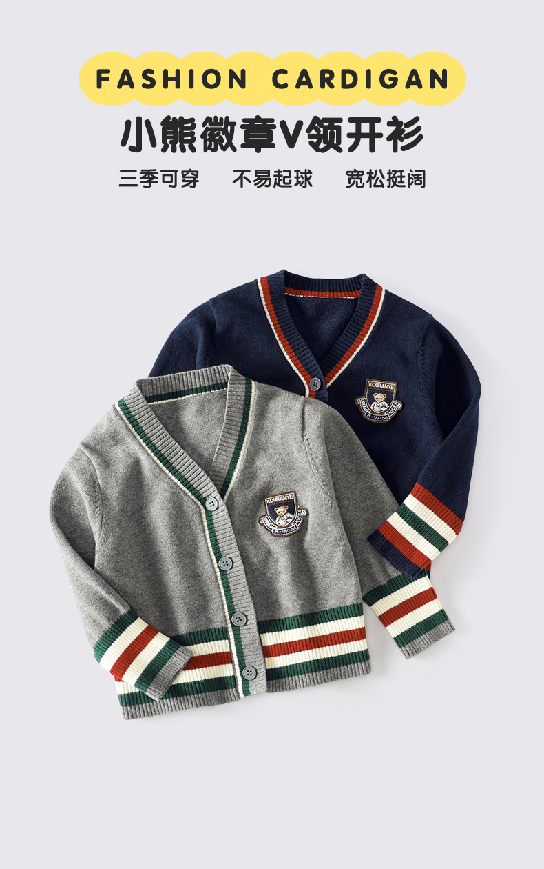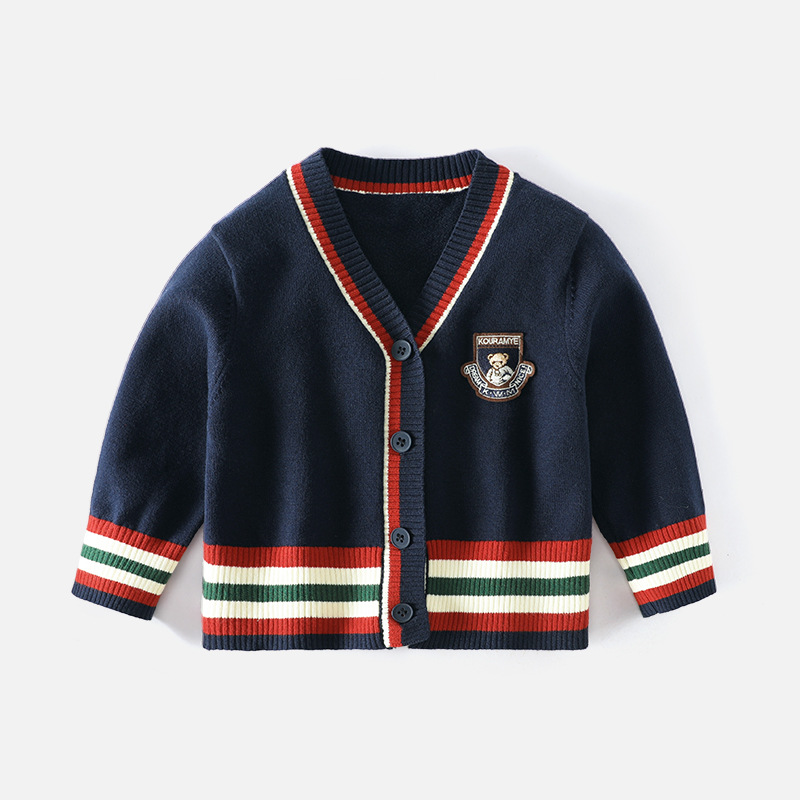 가을과 겨울 어린이 V-Neck 카디건 영국 스타일 베어 배지 니트 코트 학교 유니폼 스웨터 소년의 긴 소매 스웨터 스웨터