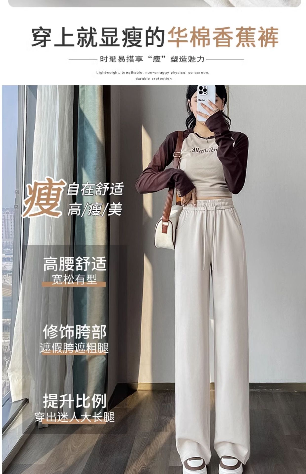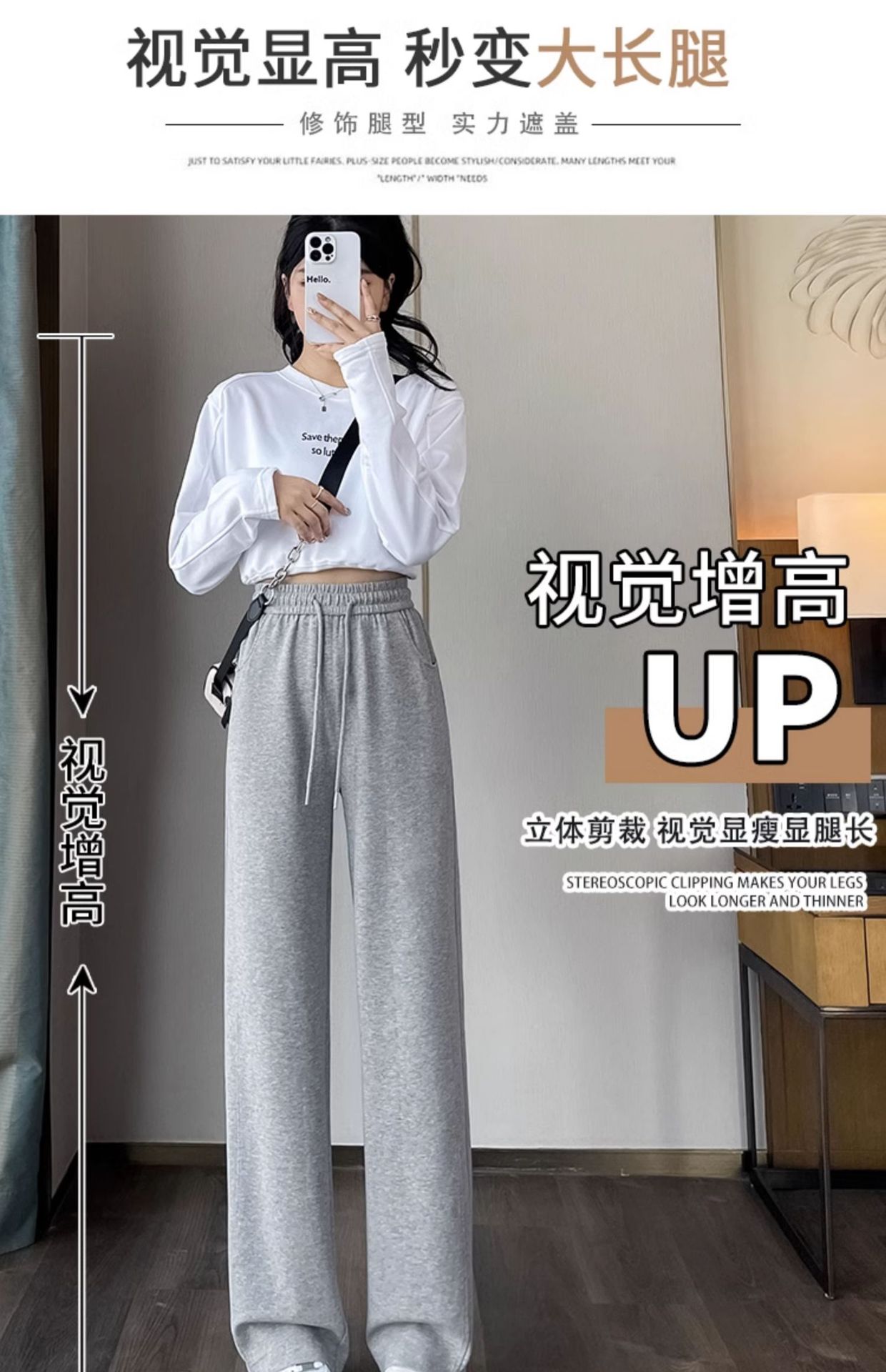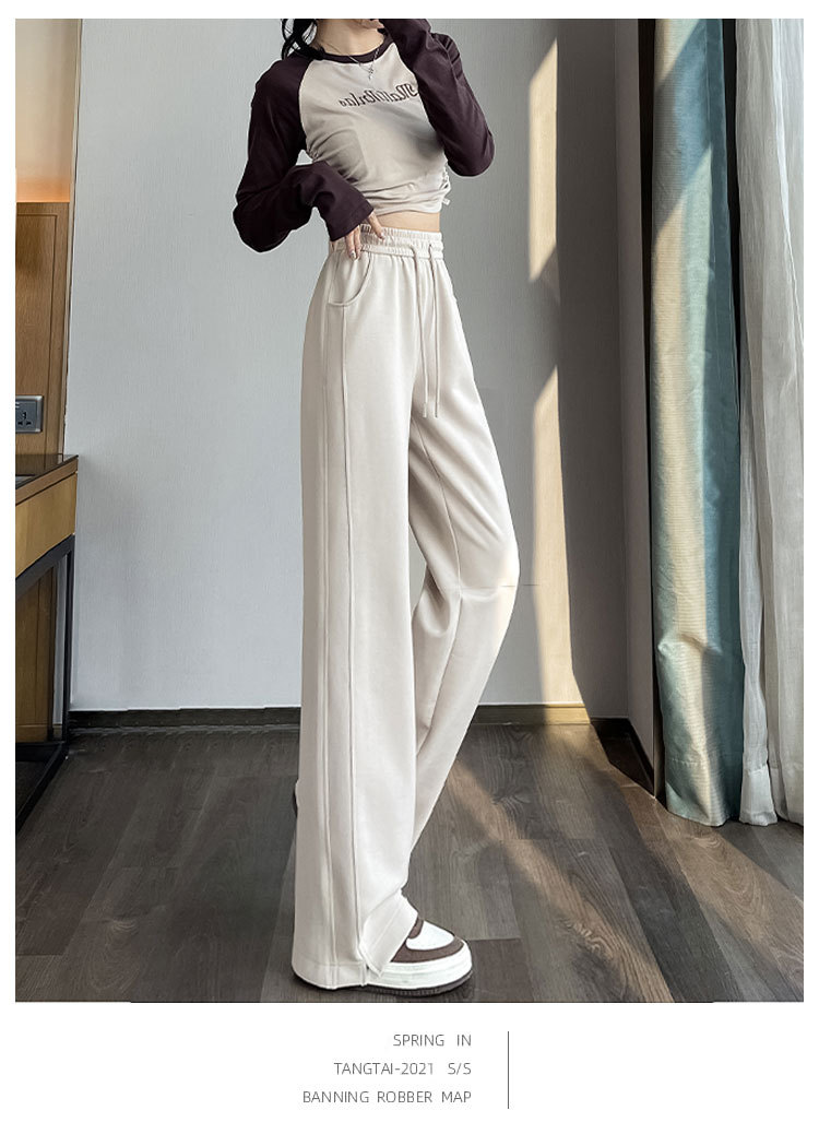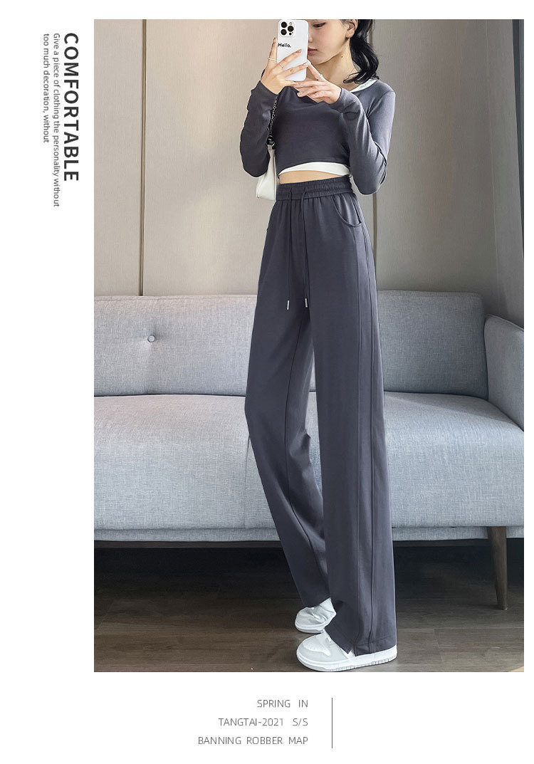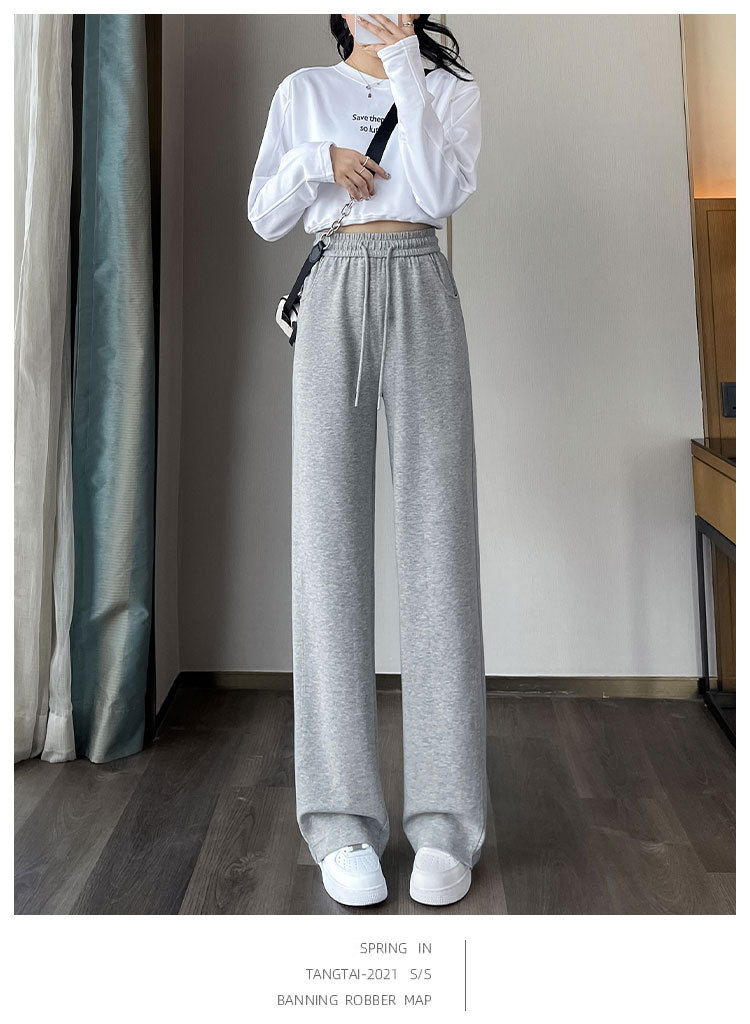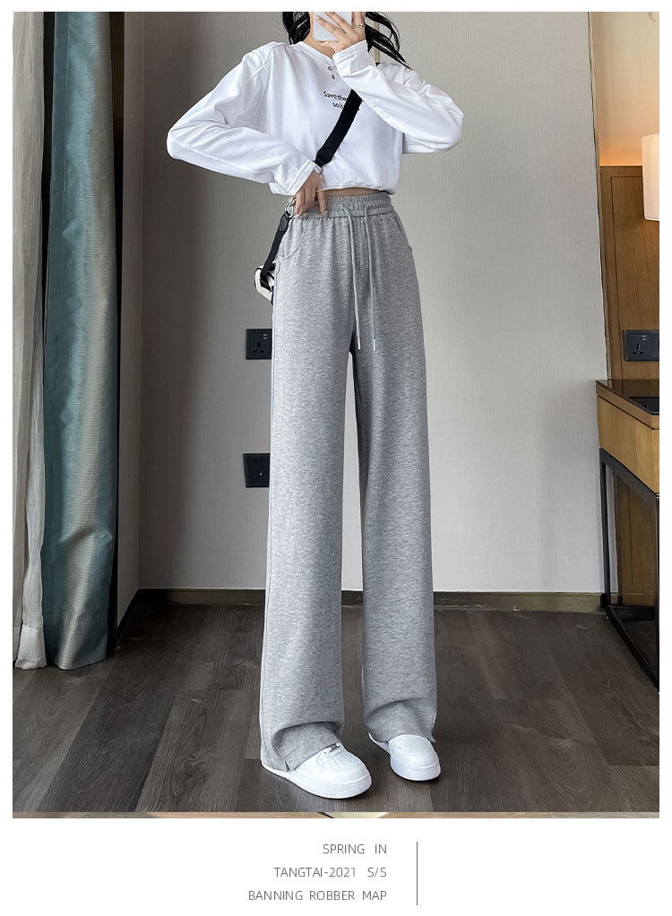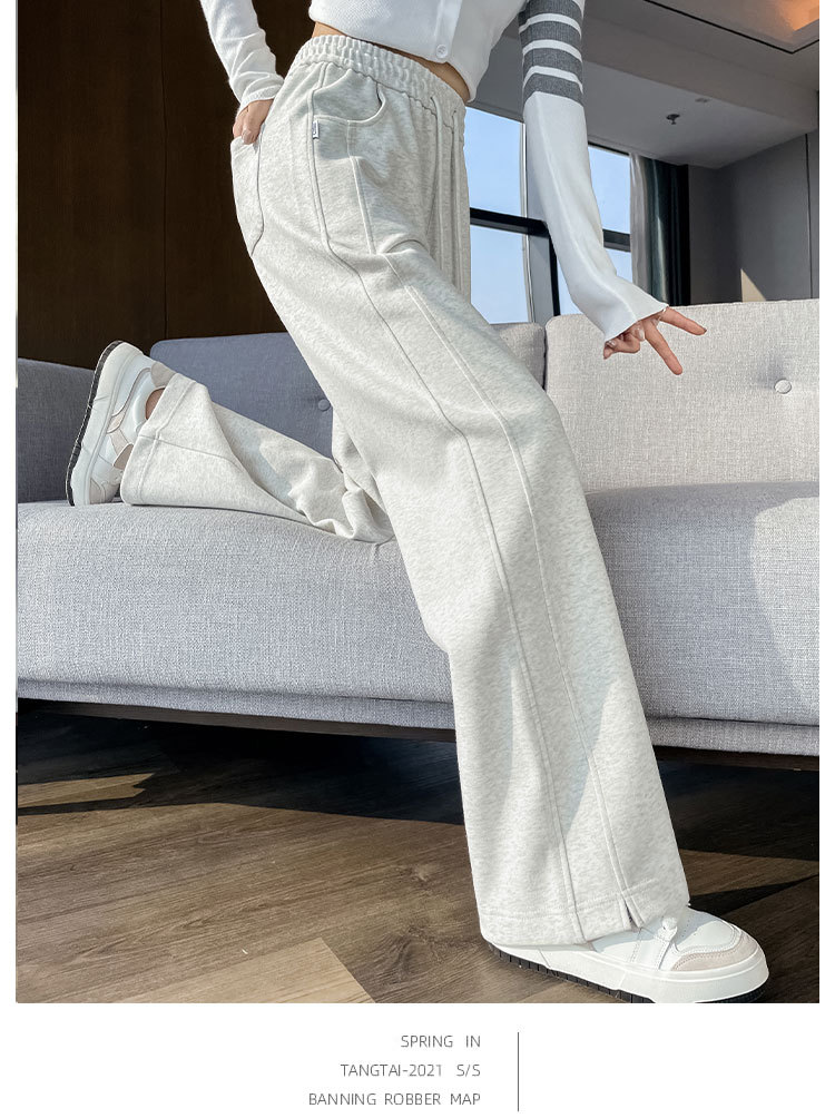 [3 차원 허리 머리] 바나나 넓은 다리 바지 여성의 2024 새로운 봄과 가을 캐주얼 스트레이트 바지의 회색 좁은 버전스토어 가기