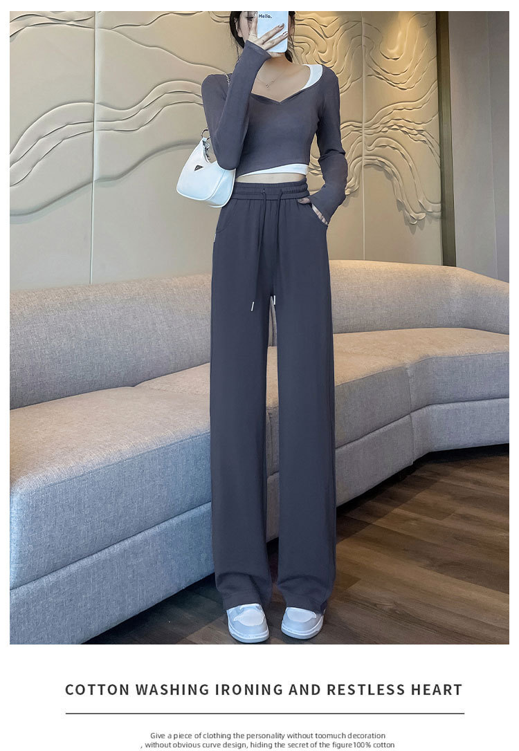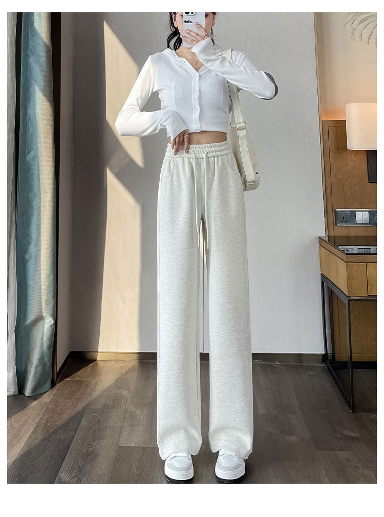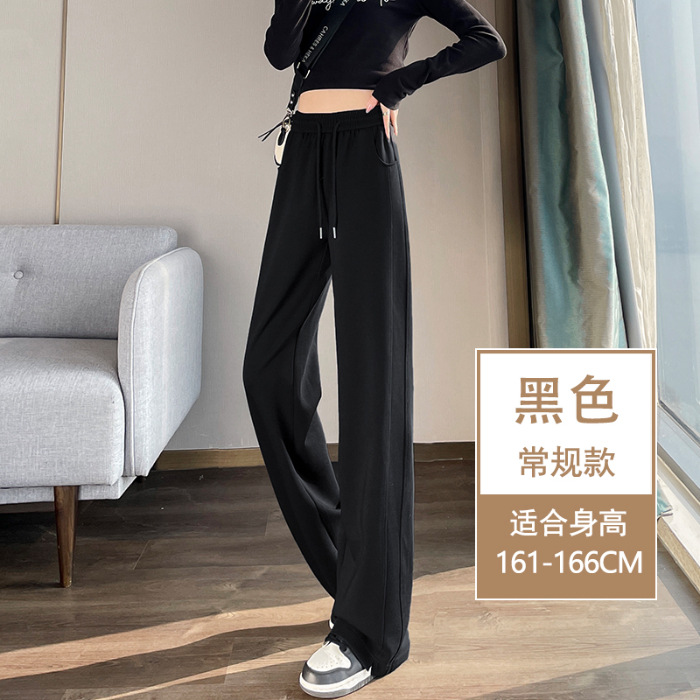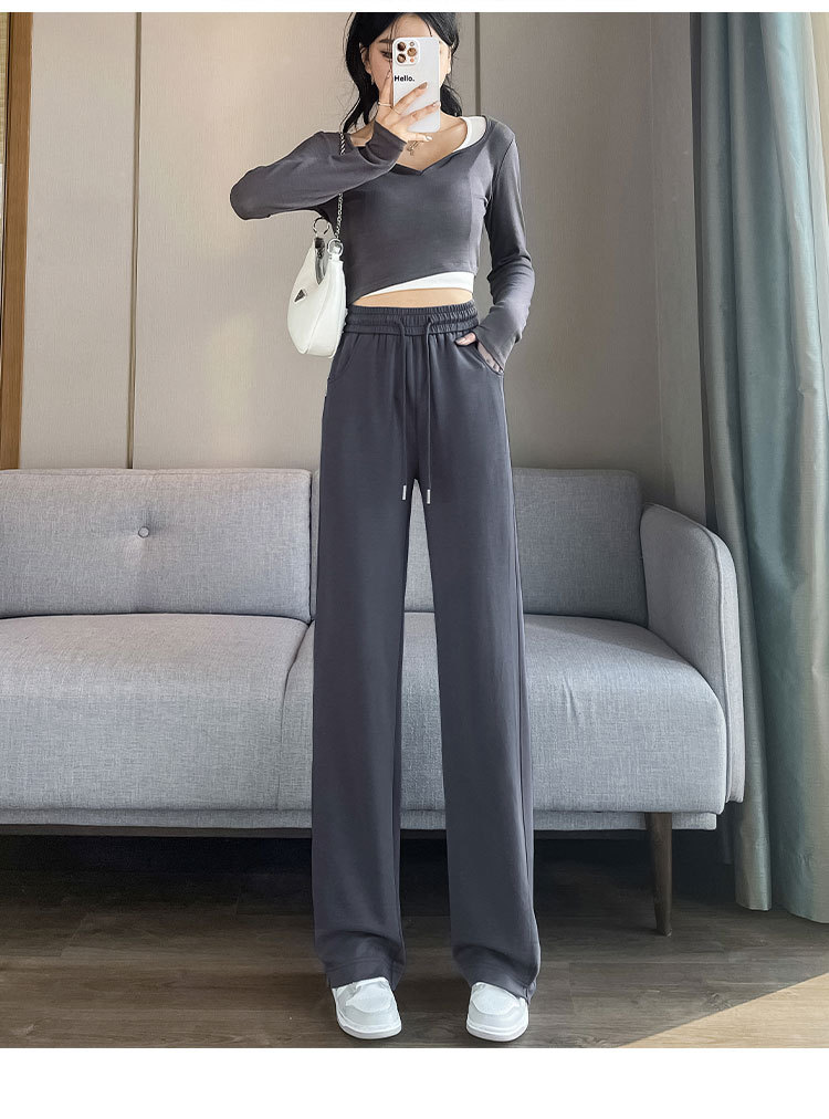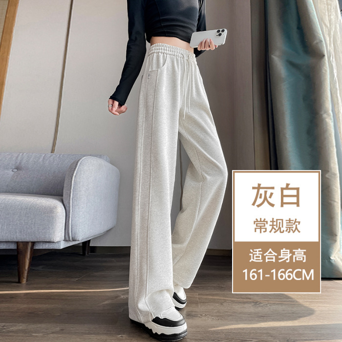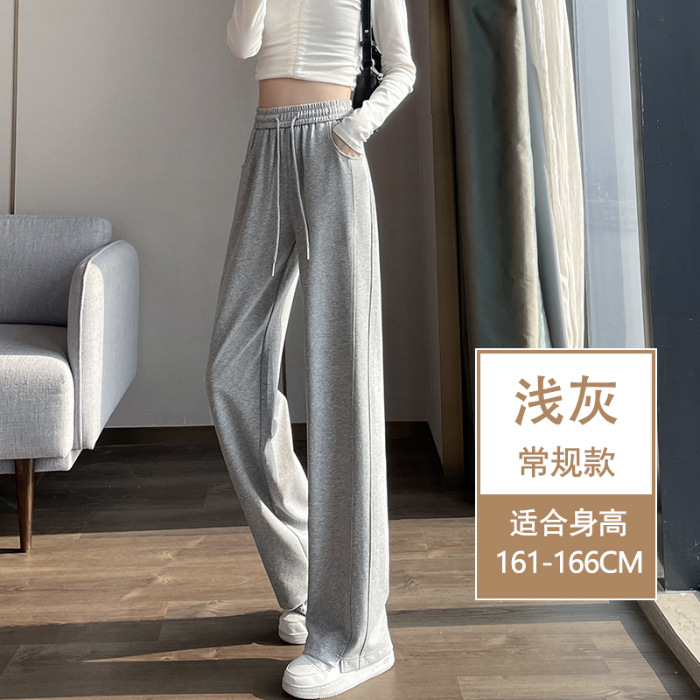 [3 차원 허리 머리] 바나나 넓은 다리 바지 여성의 2024 새로운 봄과 가을 캐주얼 스트레이트 바지의 회색 좁은 버전
