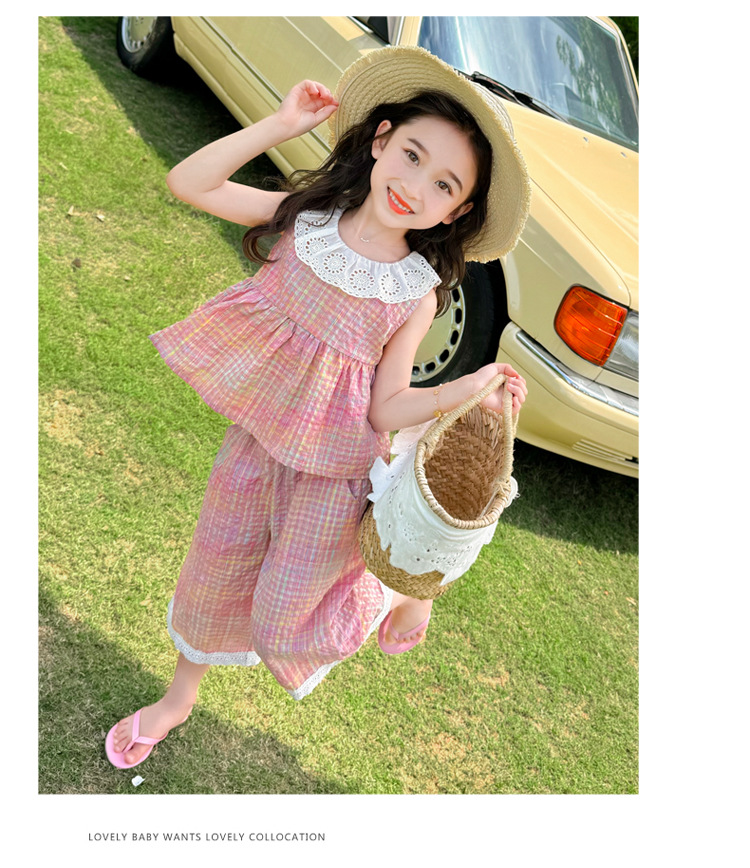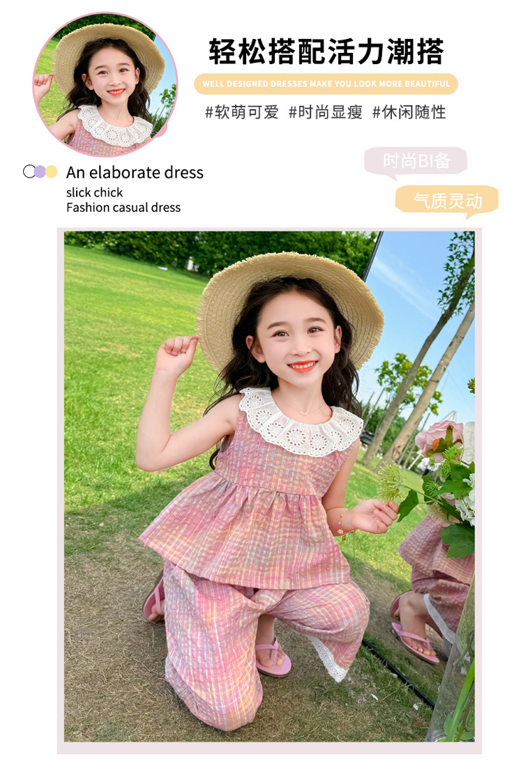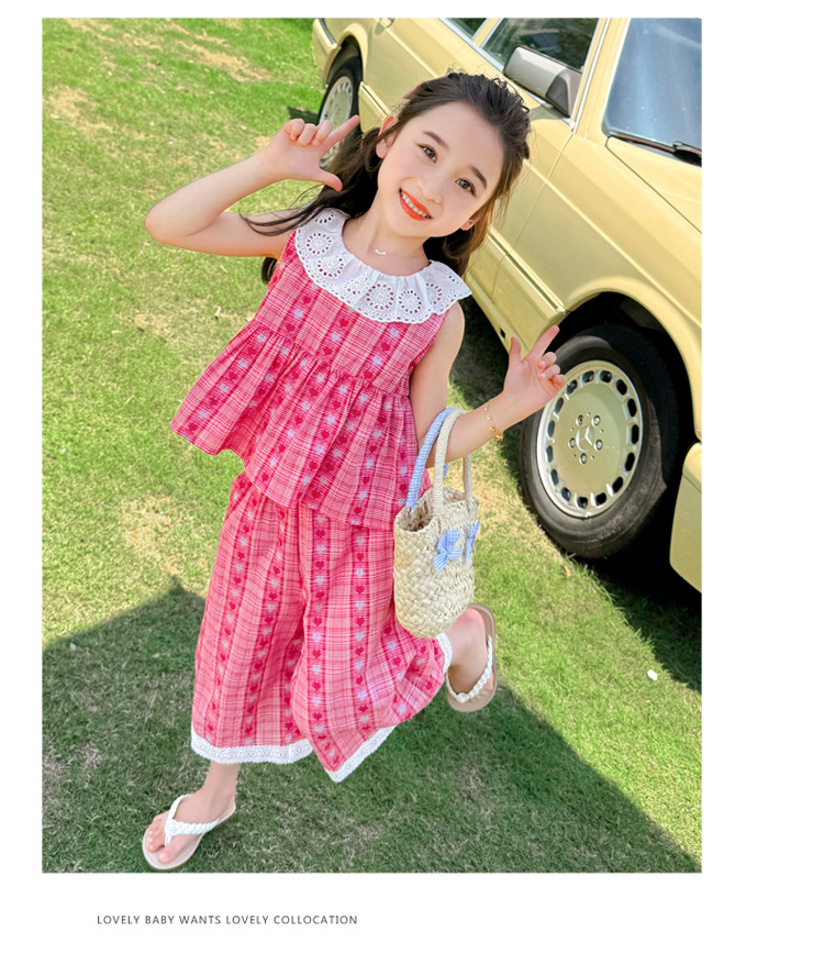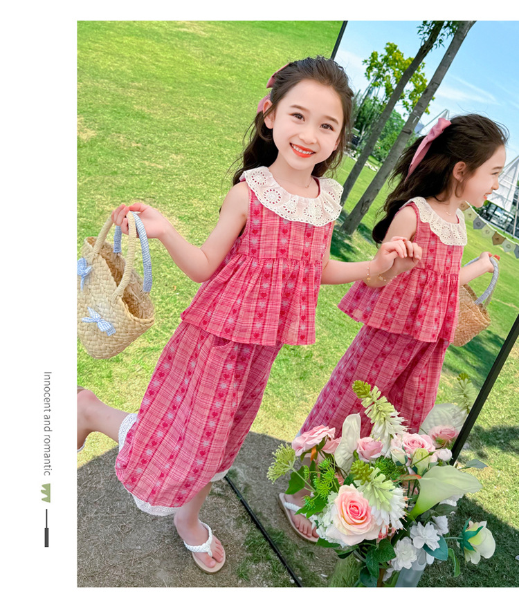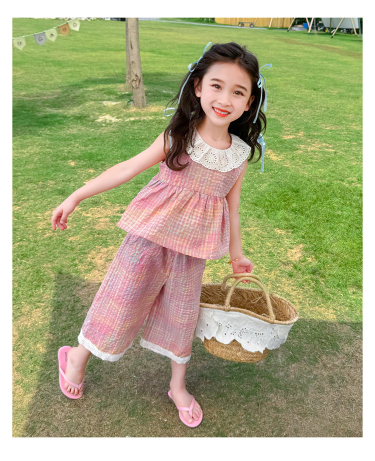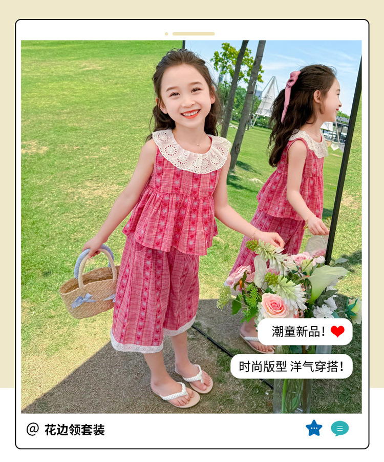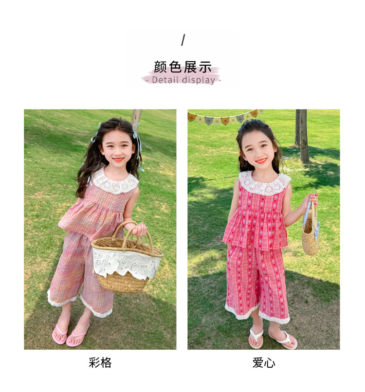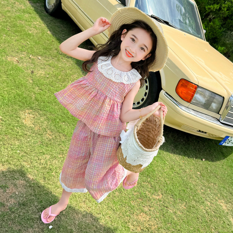 소녀의 레이스 칼라 세트 여름 새로운 아기 소녀의 모기 방지 넓은 다리 바지 여름 원피스 소녀의 인터넷 축하 투피스 세트
