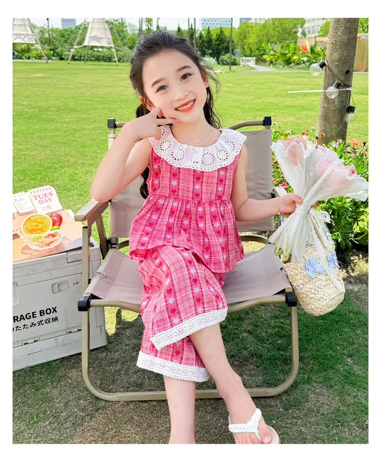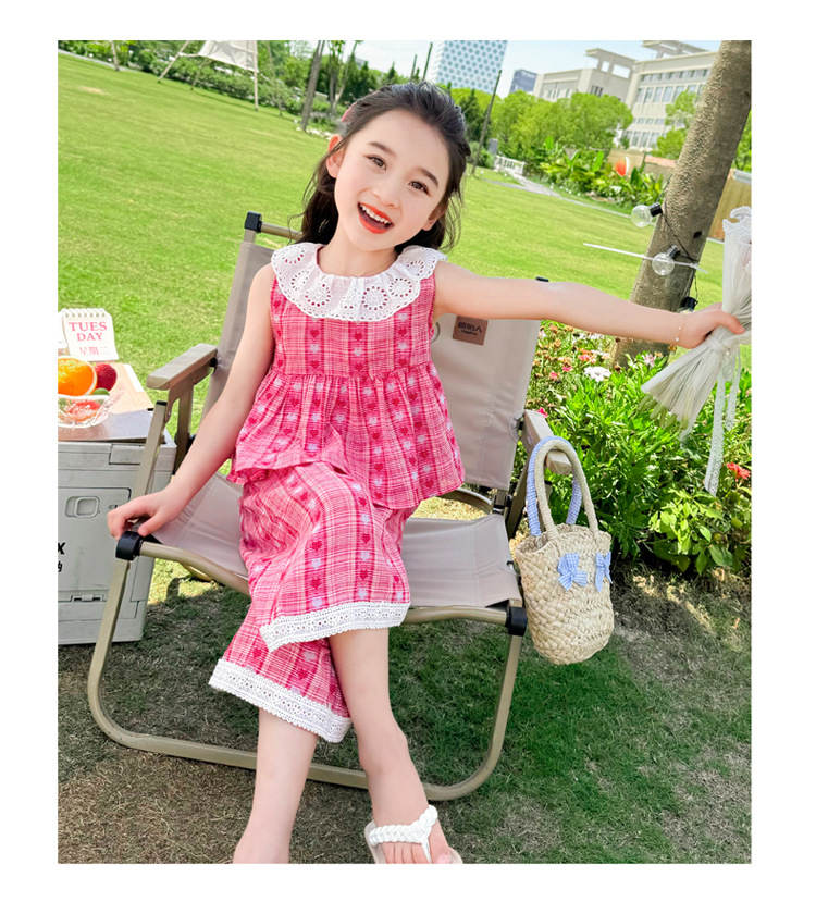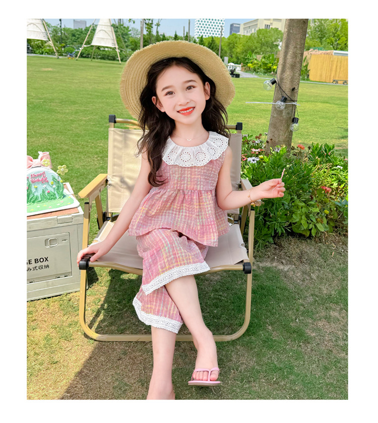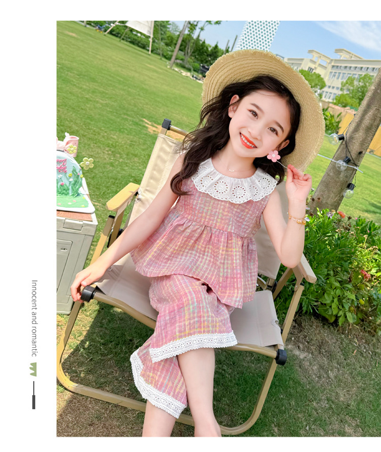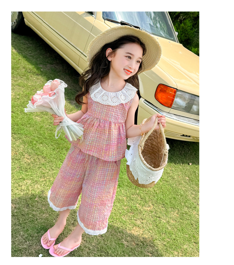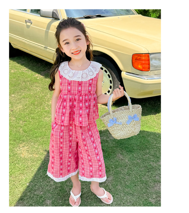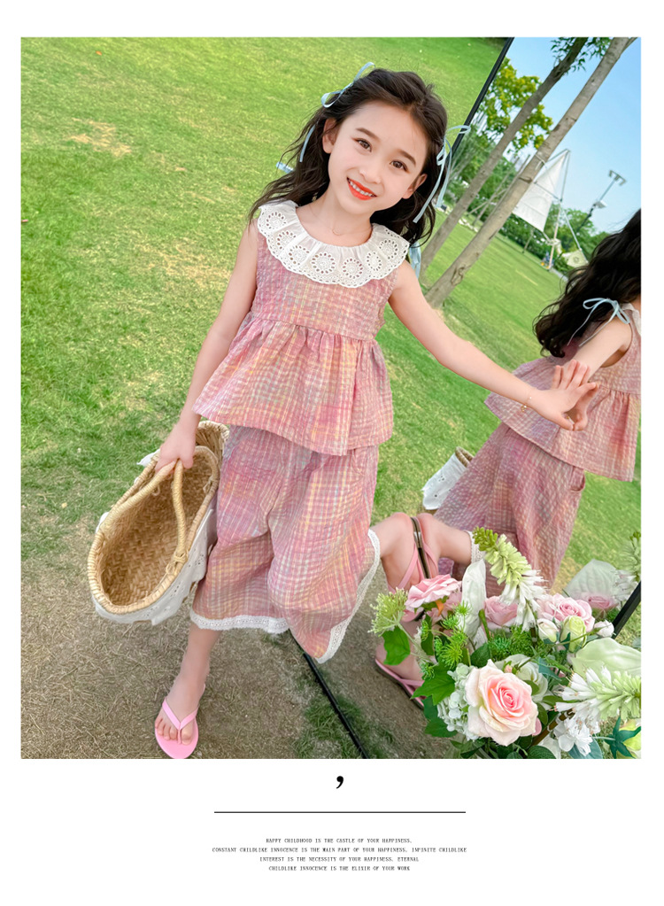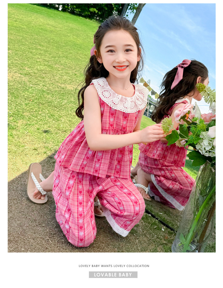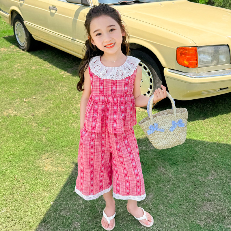 소녀의 레이스 칼라 세트 여름 새로운 아기 소녀의 모기 방지 넓은 다리 바지 여름 원피스 소녀의 인터넷 축하 투피스 세트