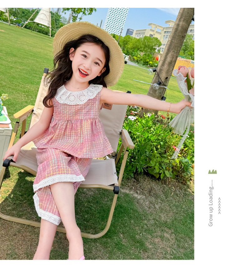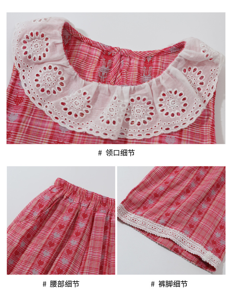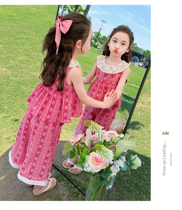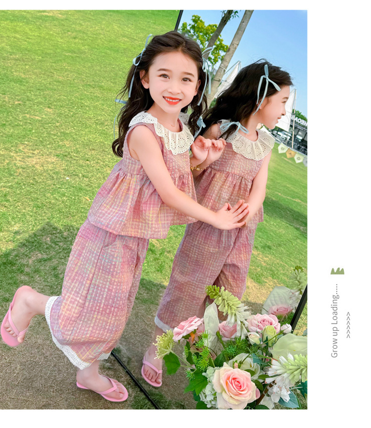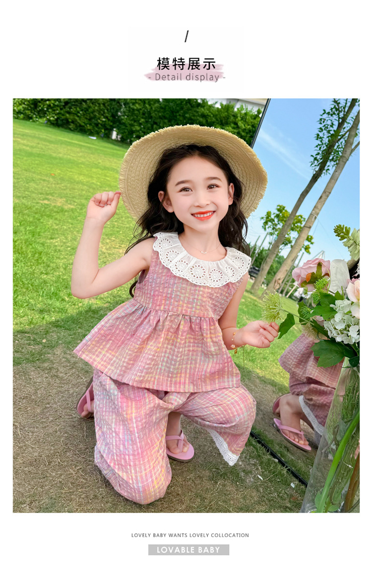 소녀의 레이스 칼라 세트 여름 새로운 아기 소녀의 모기 방지 넓은 다리 바지 여름 원피스 소녀의 인터넷 축하 투피스 세트스토어 가기
