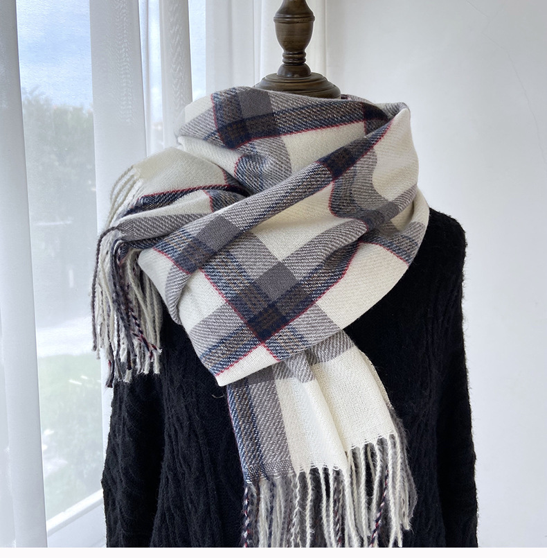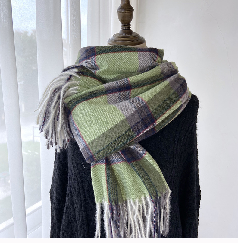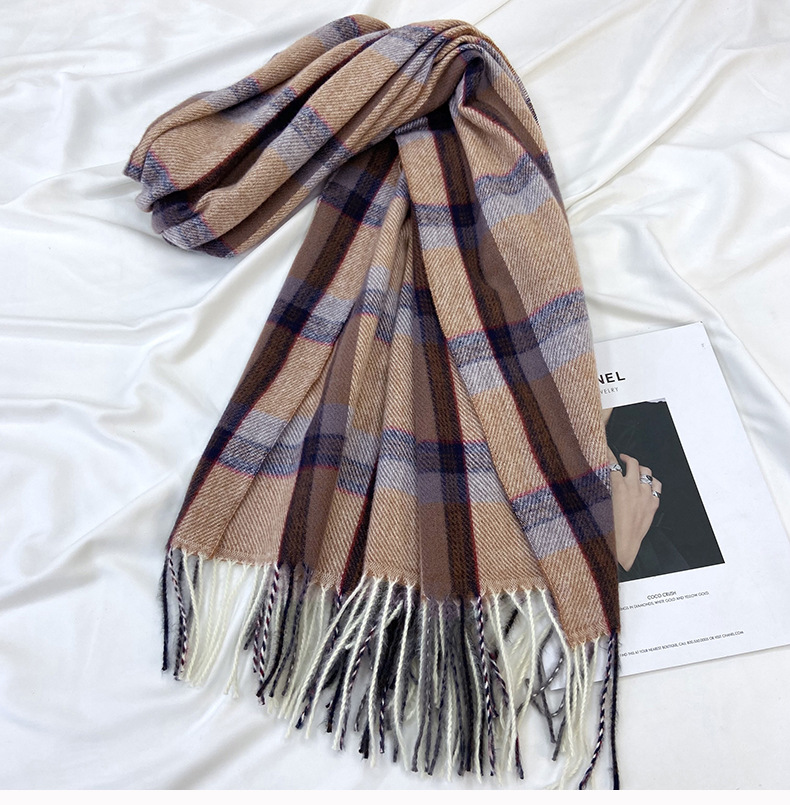 격자 무늬 스카프 여성의 가을과 겨울 2024 새로운 한국 모조 캐시미어 긴 따뜻한 스카프 유럽과 미국의 술 목도리 도매