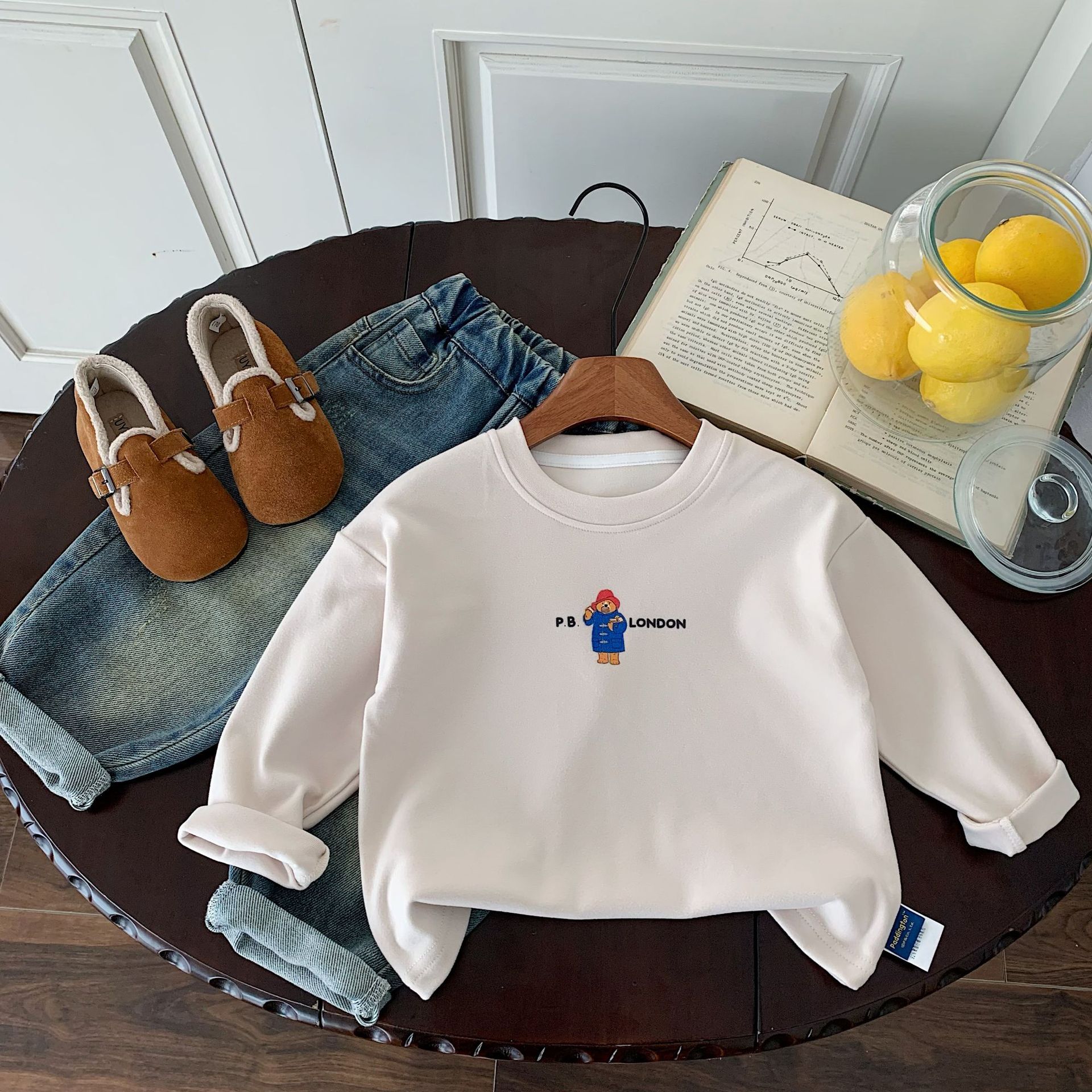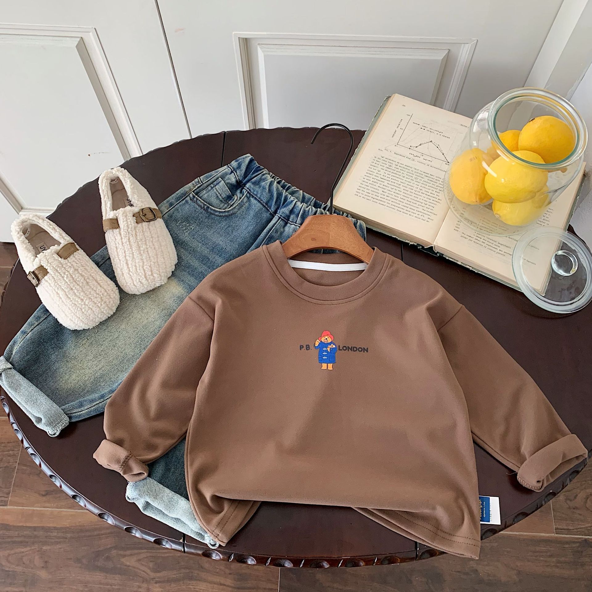 어린이 기지 셔츠 방청 2024 가을과 겨울 새 패딩턴 베어 긴 소매 따뜻한 벨벳 내부 소년의 탑 BC0040스토어 가기