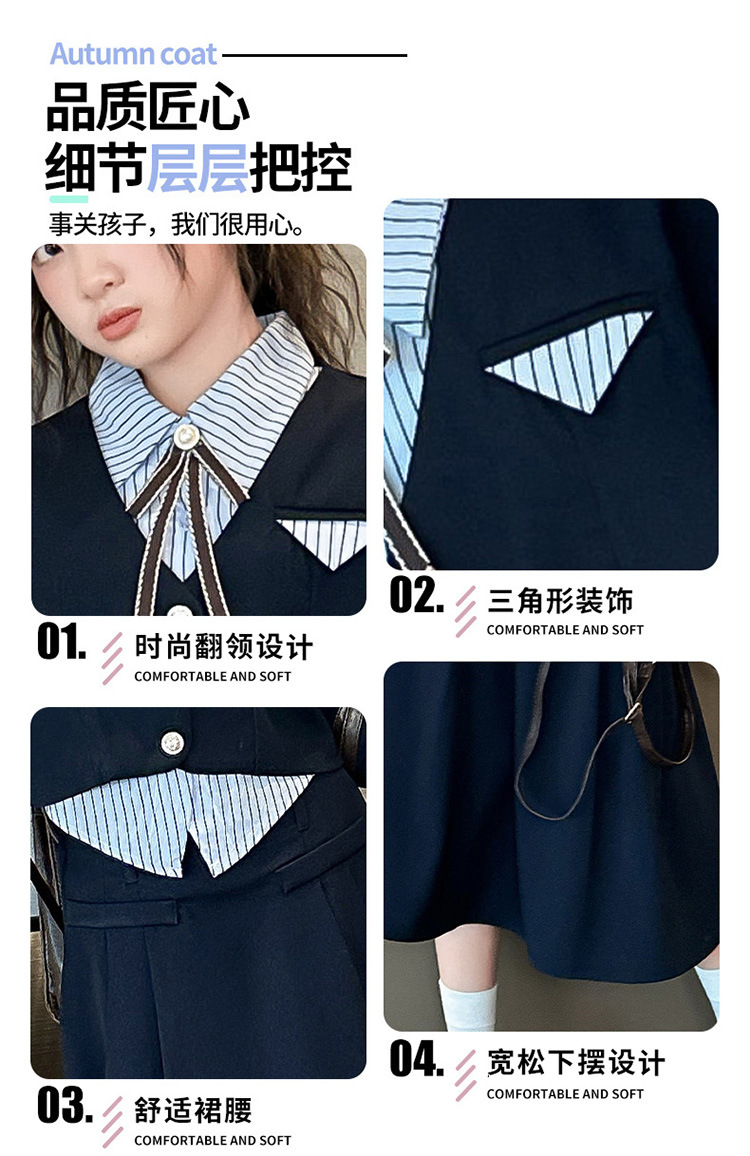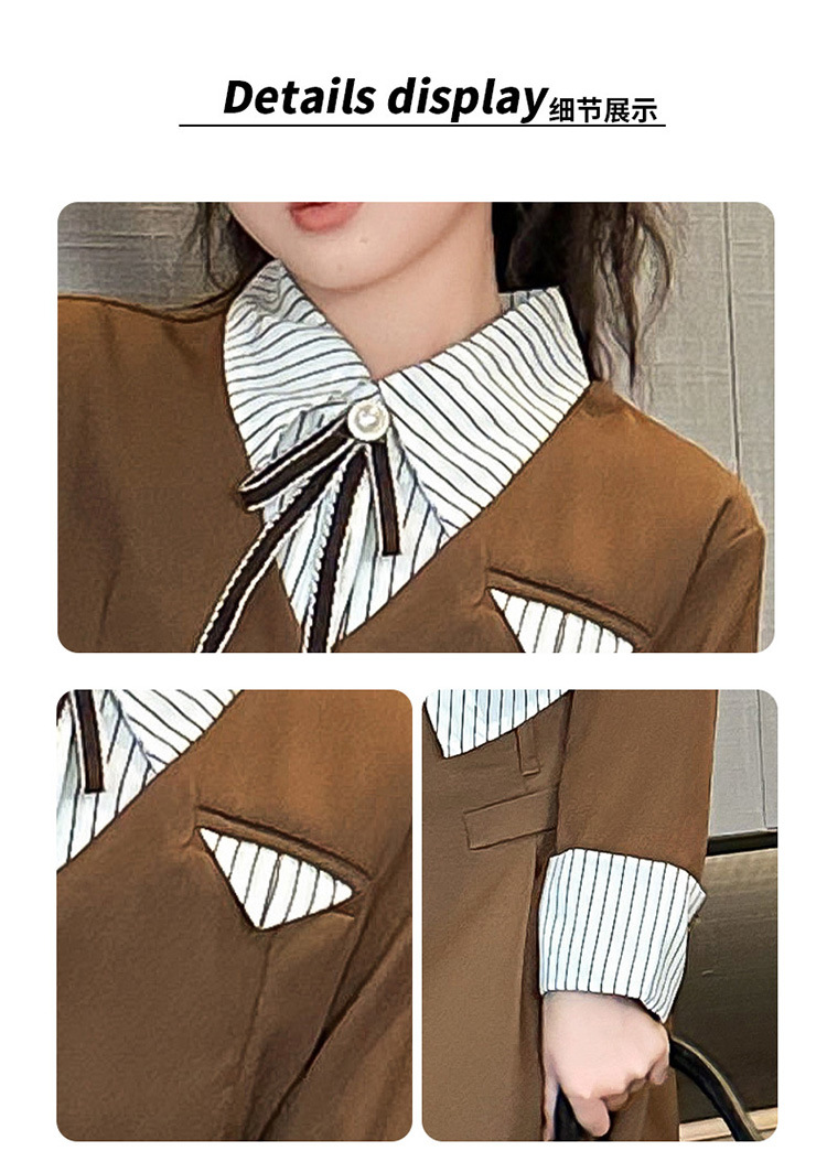 미국 아카데미 스타일 세트 가짜 투피스 스트라이프 패치 워크 최고 여성 가을 플리츠 스커트 롱 스커트 투피스 세트스토어 가기