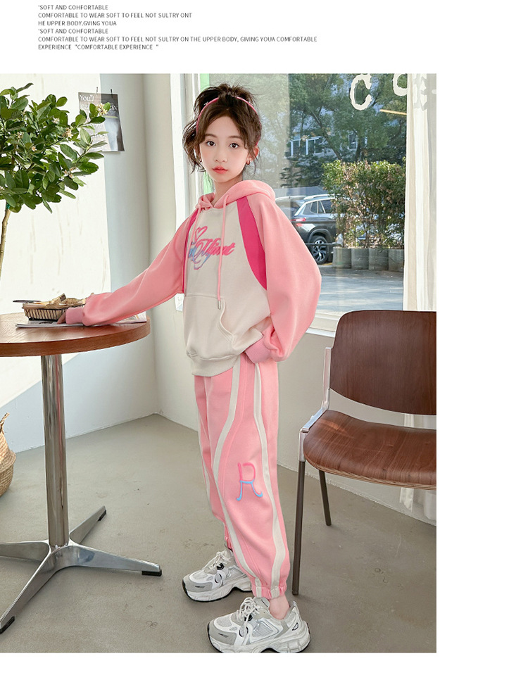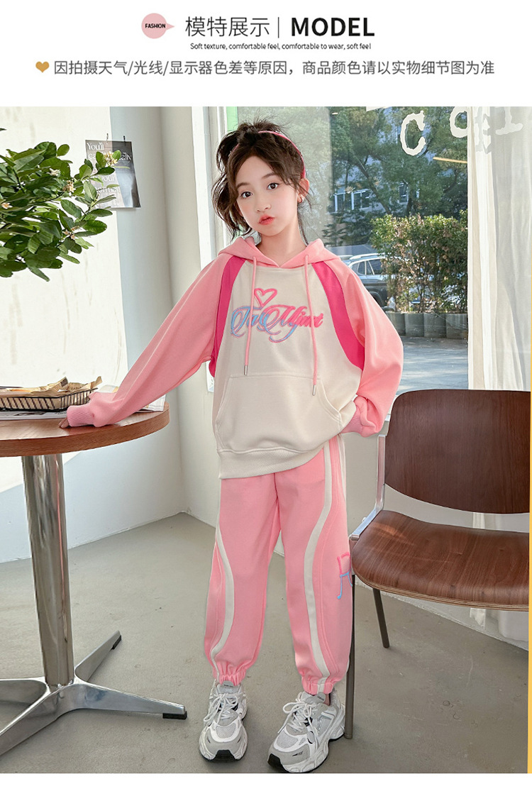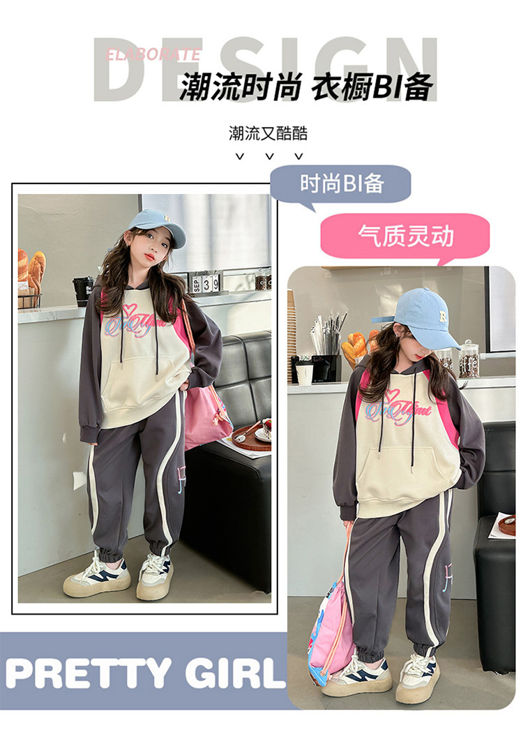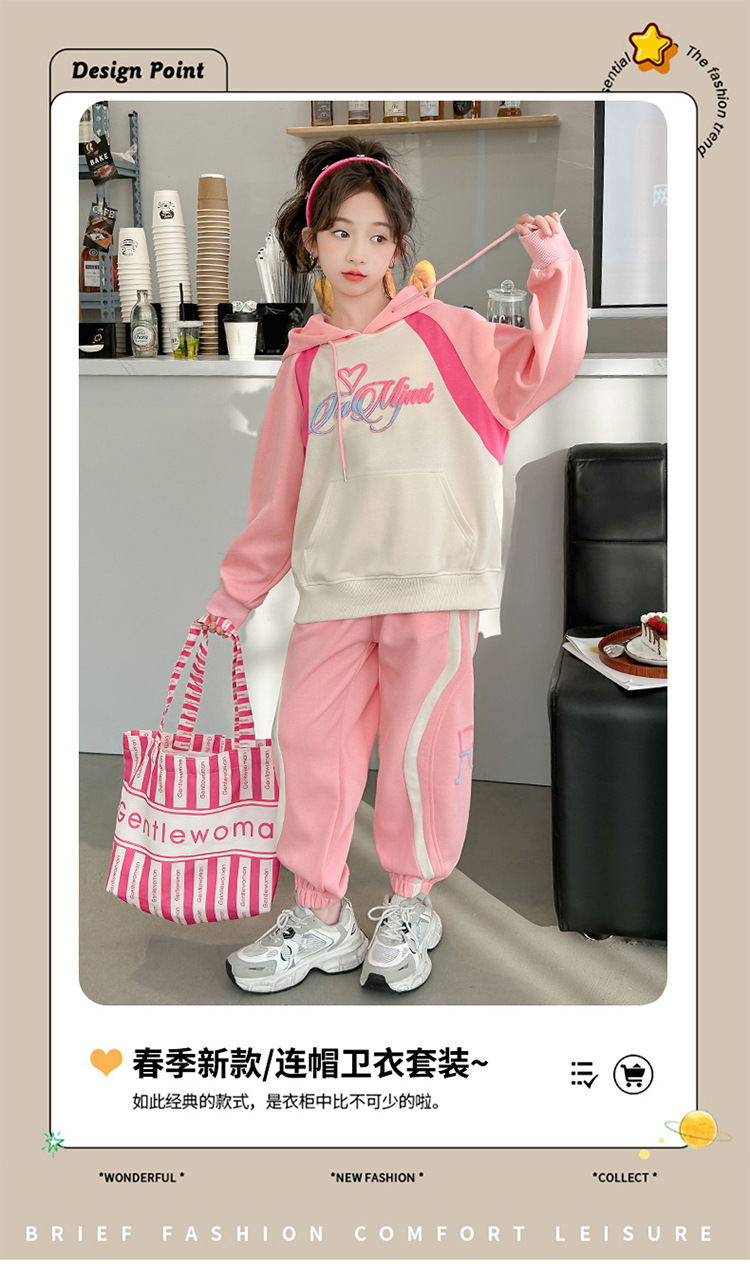 소녀 조커 유행 서양식 다채로운 색상 일치 후드 땀 투피스 세트 2024 거품 인쇄 색상 일치 땀 세트스토어 가기