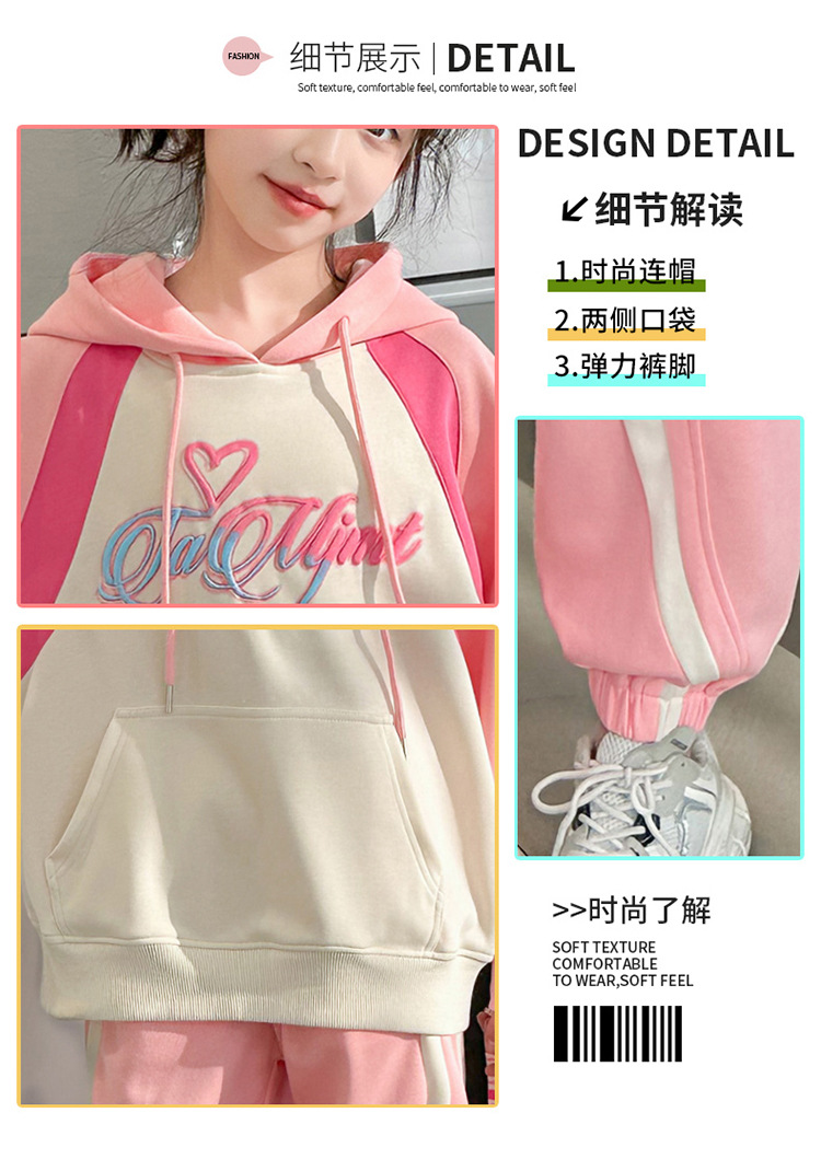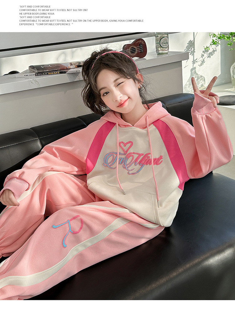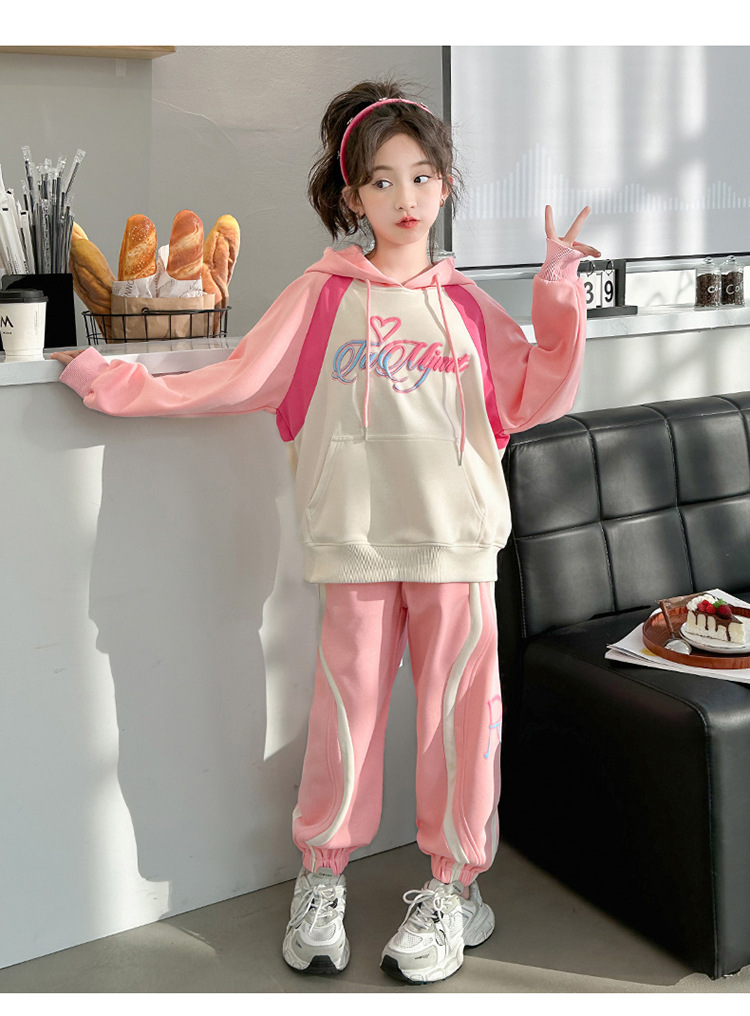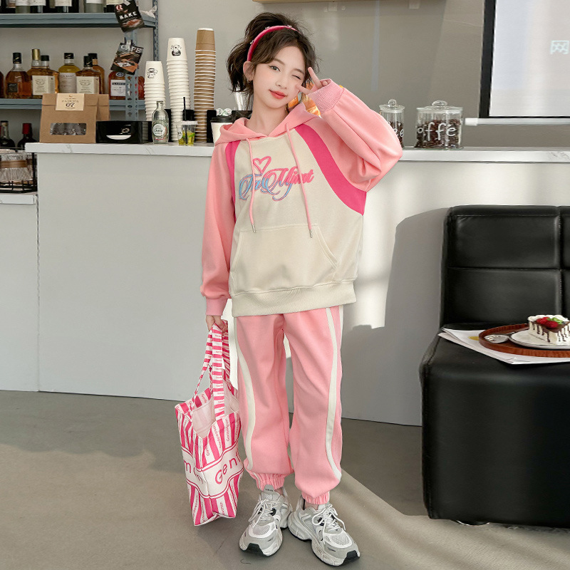 소녀 조커 유행 서양식 다채로운 색상 일치 후드 땀 투피스 세트 2024 거품 인쇄 색상 일치 땀 세트