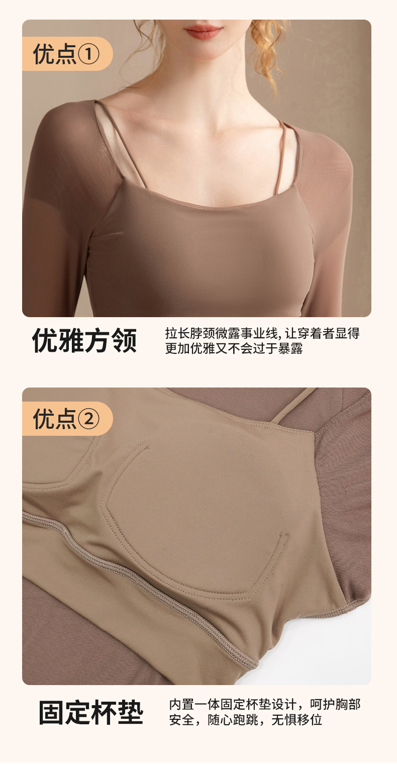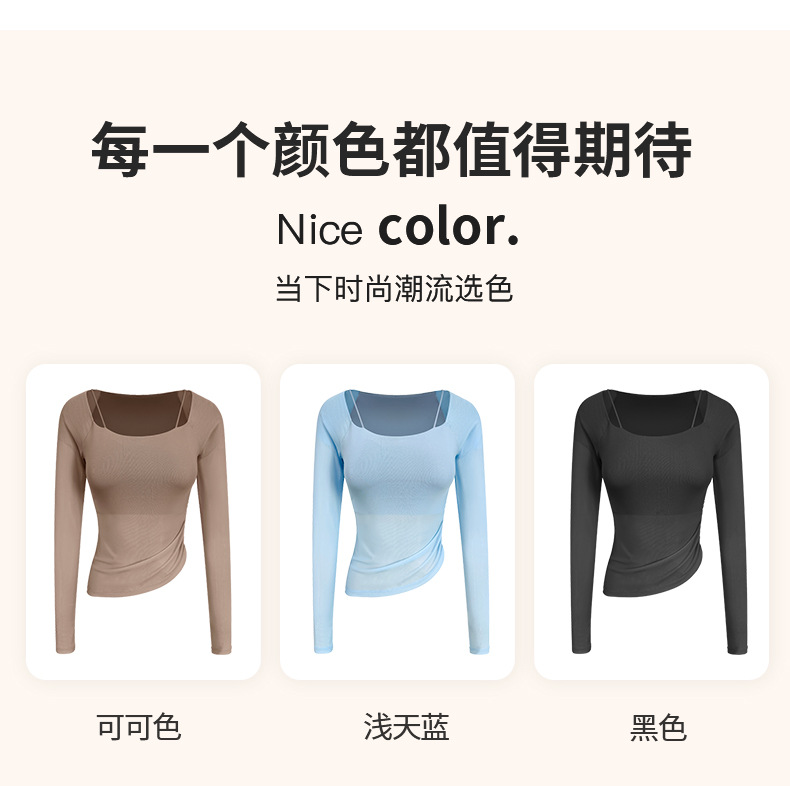 因为长袖设计兼具保暖与防晒功能,所以适合春秋过渡季节或室内运动穿着,兼顾实用性与时尚感。
