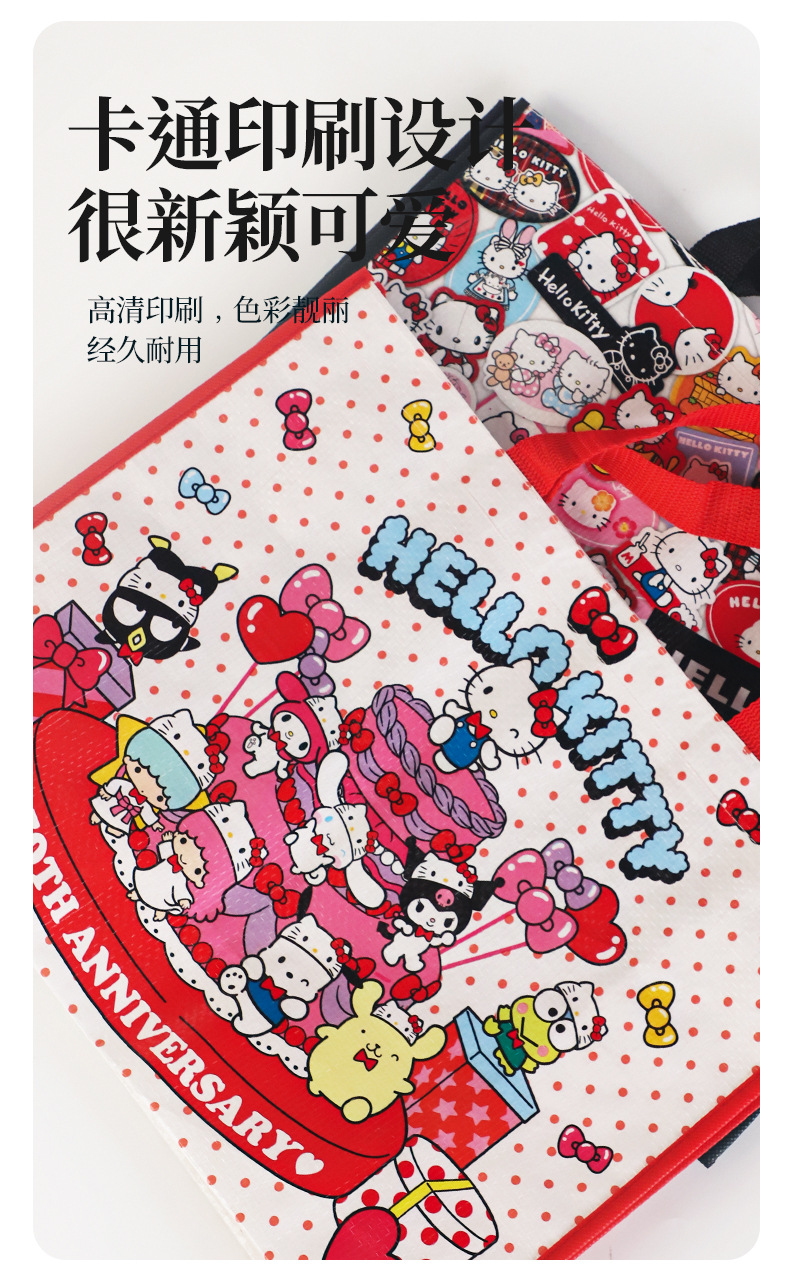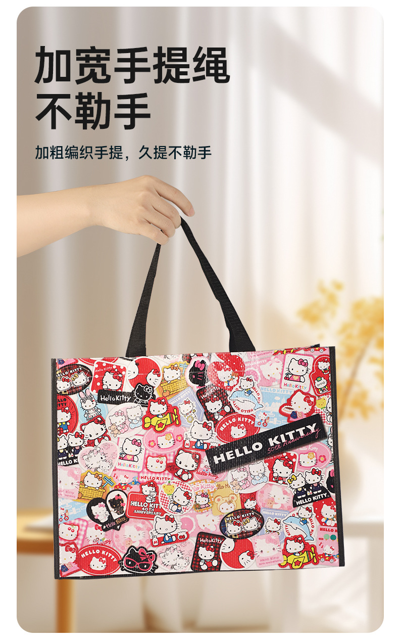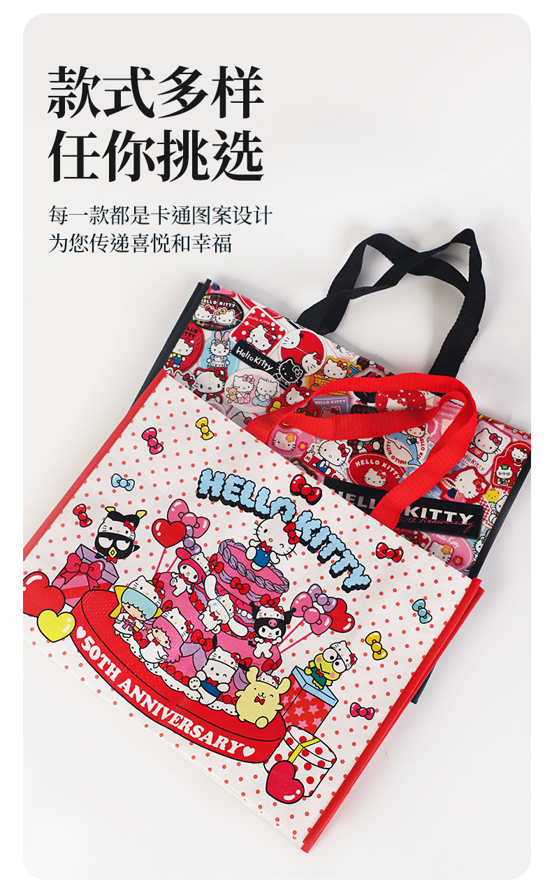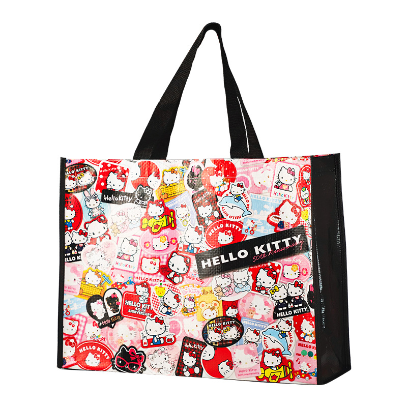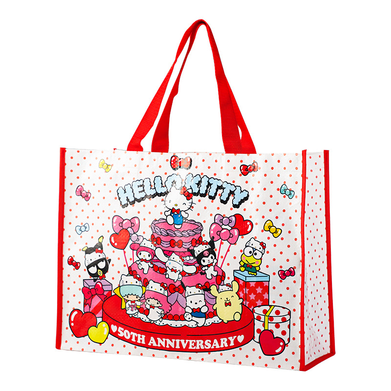 산리오 헬로 키티 50 주년 만화 귀여운 휴대용 쇼핑백 친환경 내구성 플라스틱 짠 가방