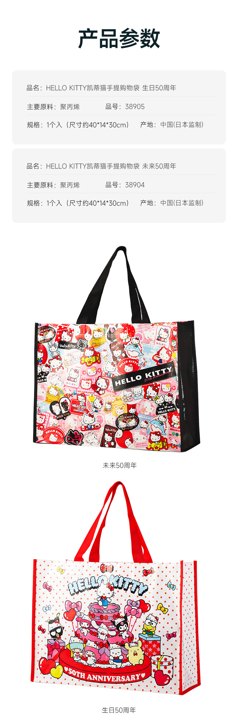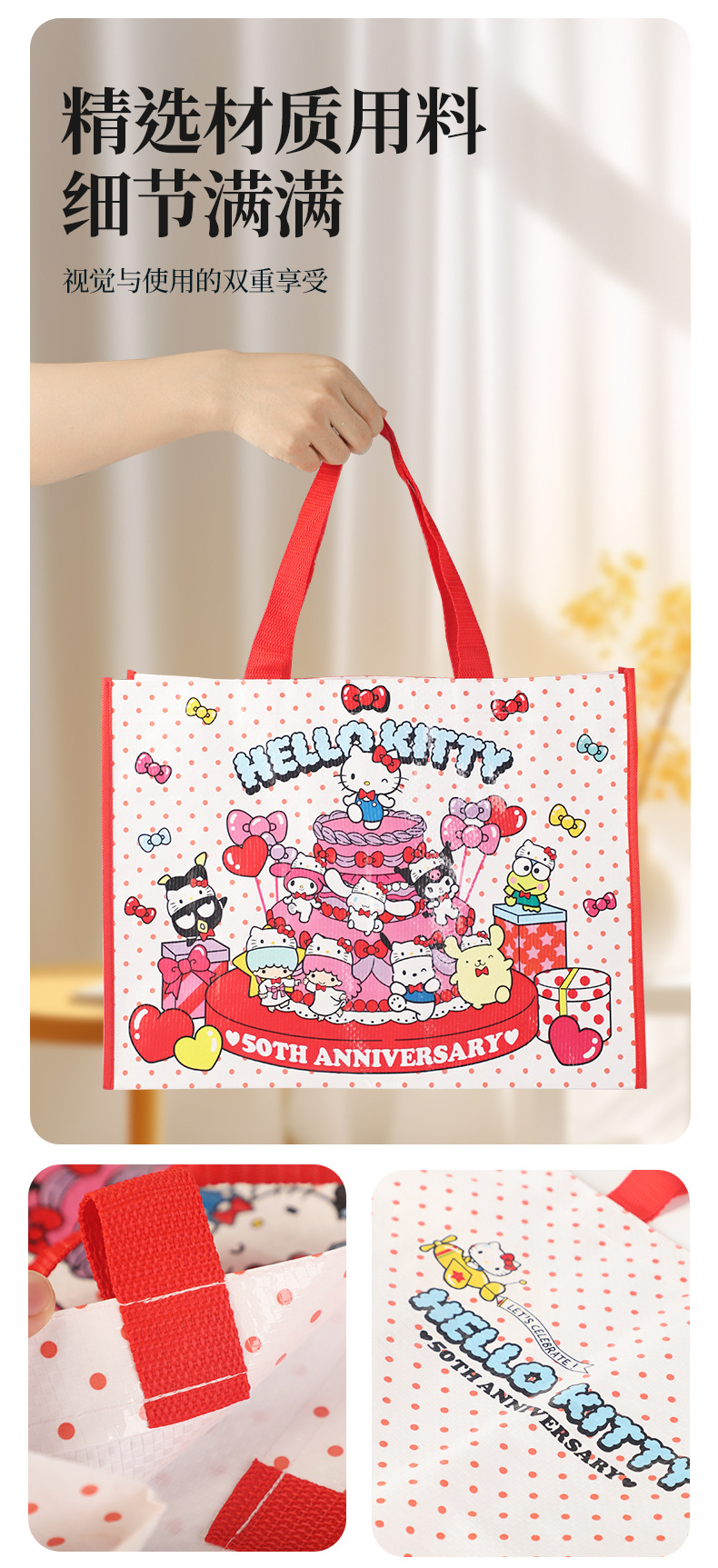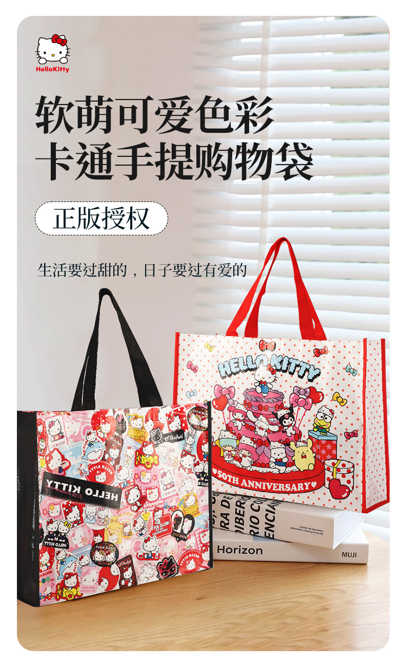 산리오 헬로 키티 50 주년 만화 귀여운 휴대용 쇼핑백 친환경 내구성 플라스틱 짠 가방