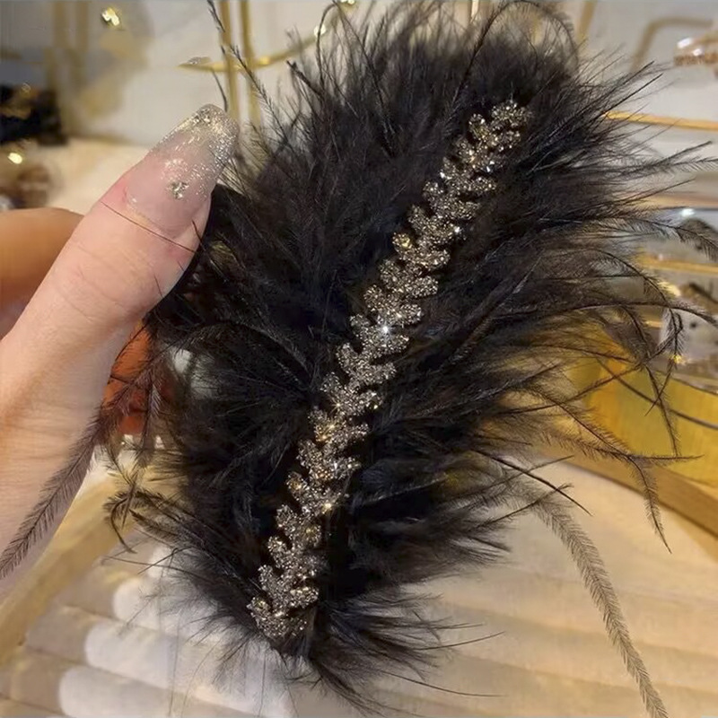 고급 센스 깃털 잡아 클립 여성용 2024 새로운 등 머리 머리 머리 클립 타조 헤어 상어 클립 헤드폰