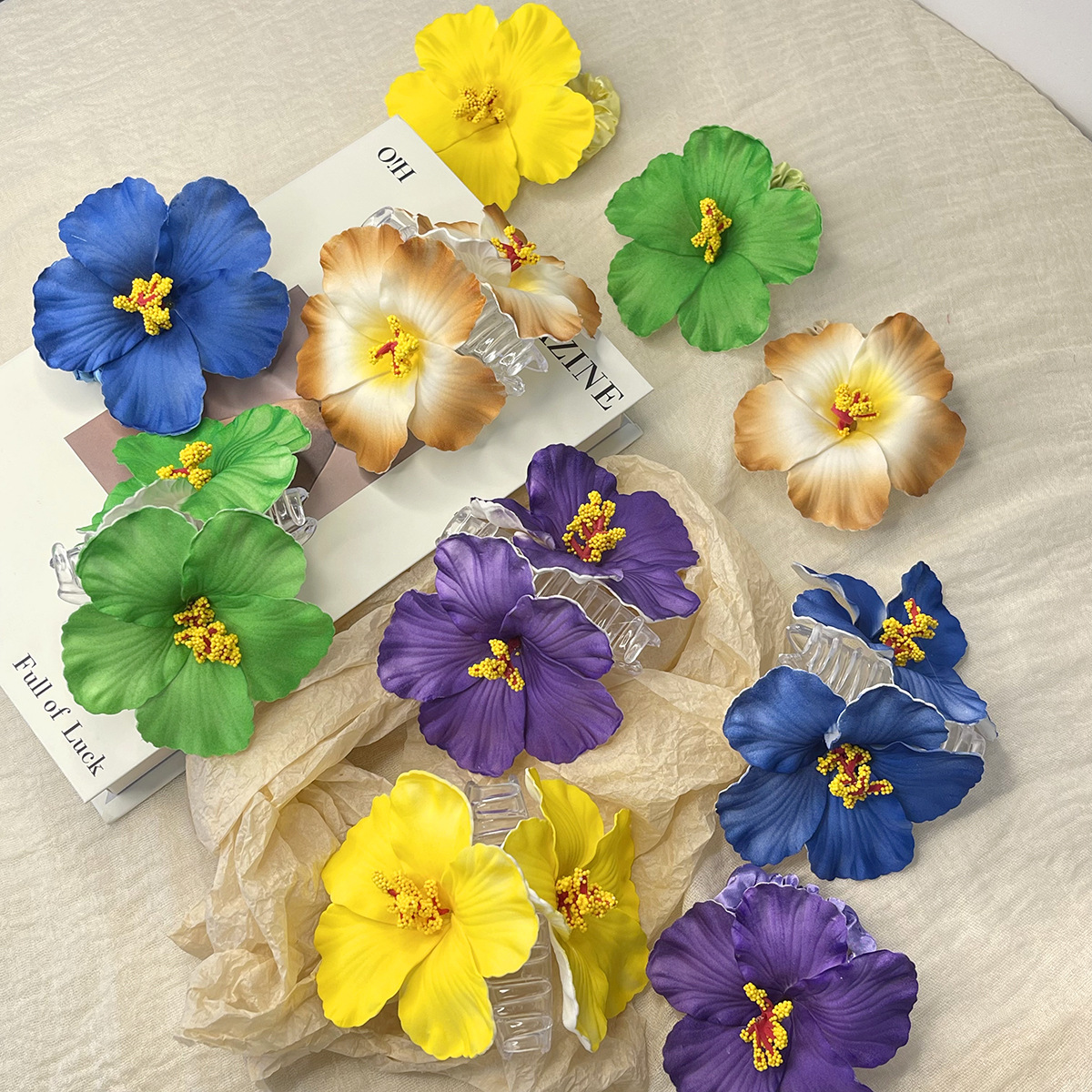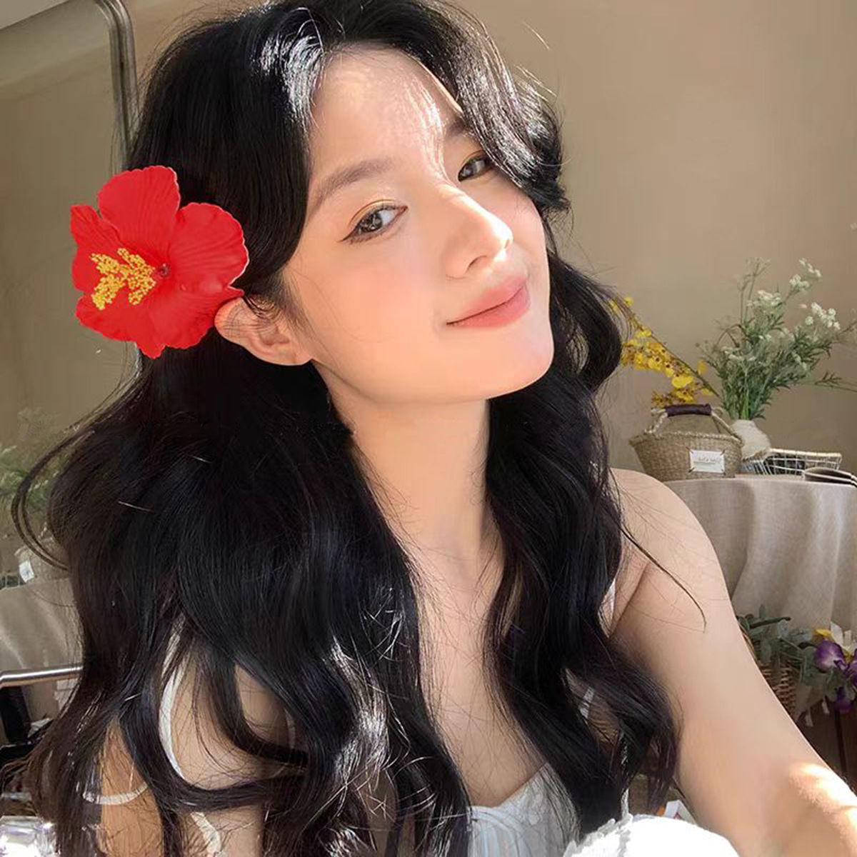 인터넷 연예인 모조 Hibbera 꽃 머리핀 고급 분위기 사이드 클립 해변 휴가 보헤미안 헤어 링스토어 가기