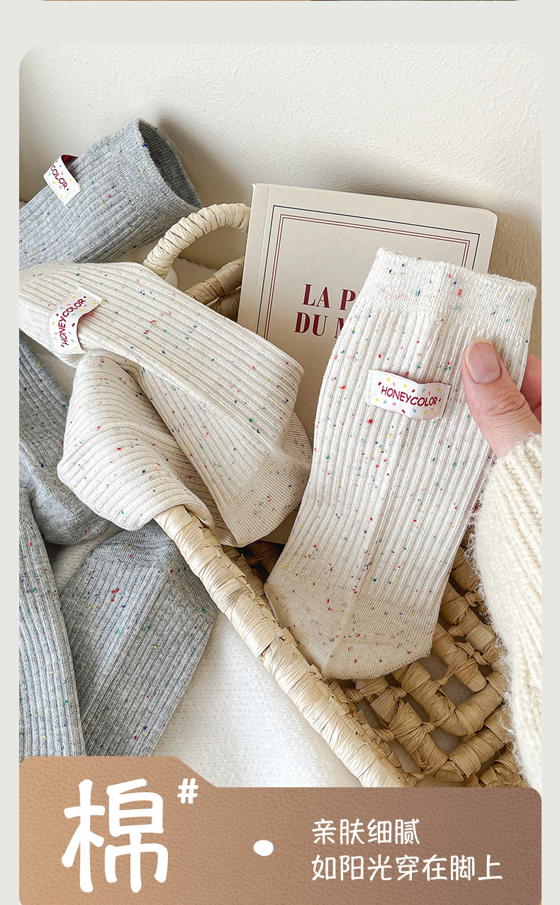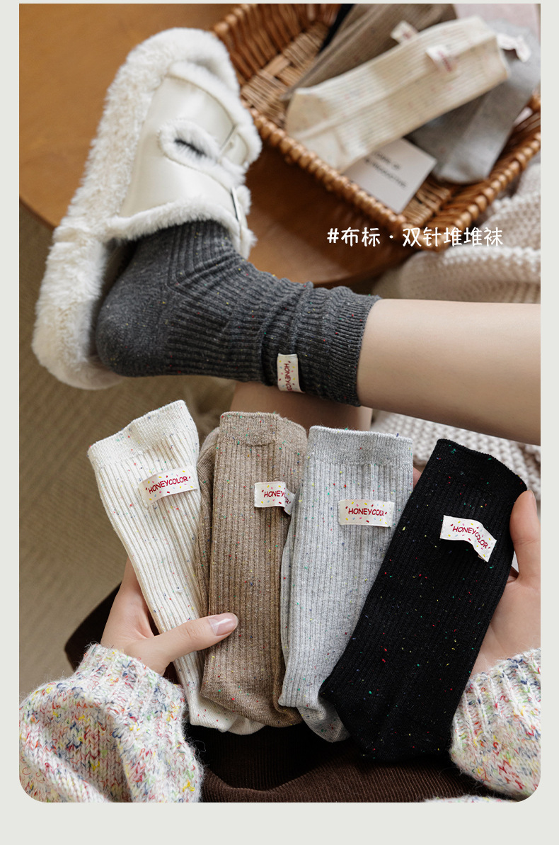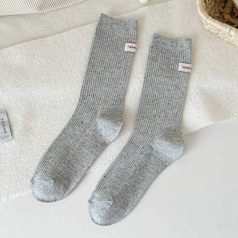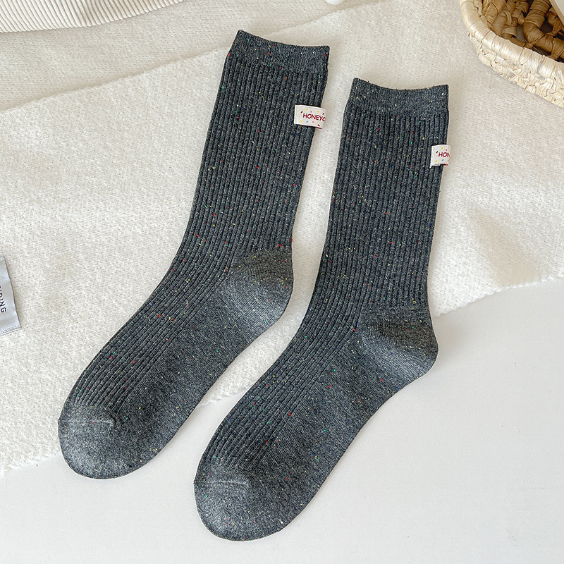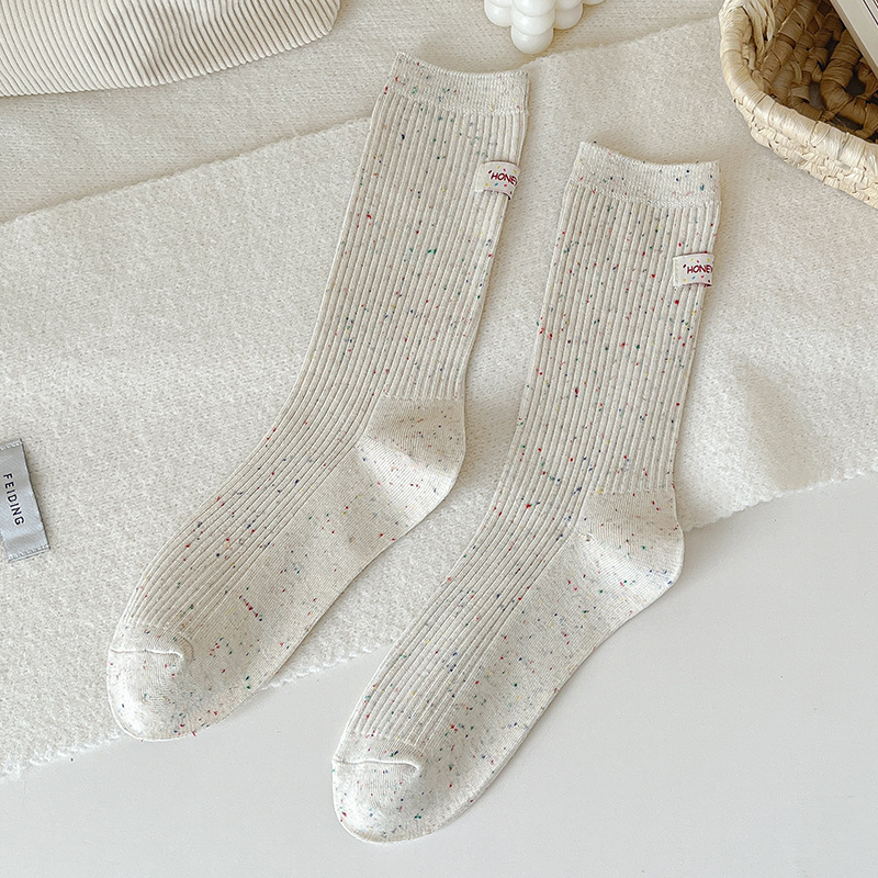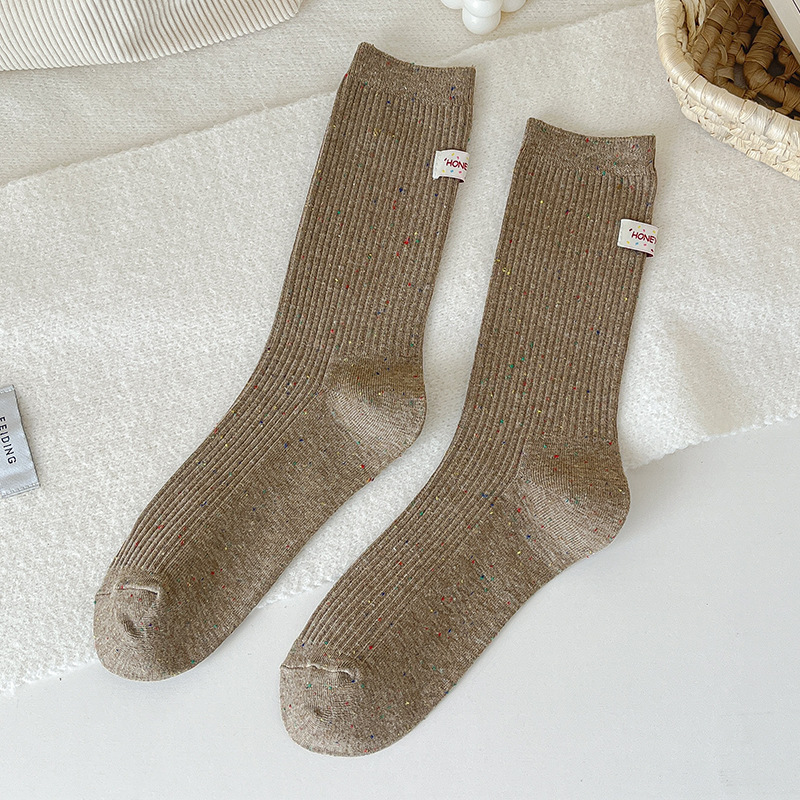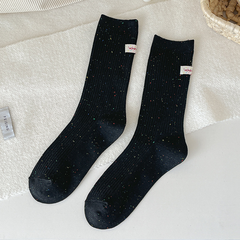 양말 여성 헝겊 라벨 알파벳 팩 양말 트렌디 한 가을과 겨울 새로운 도착 포인트 원사 올매치 개인화 된 학생 미드 튜브 양말