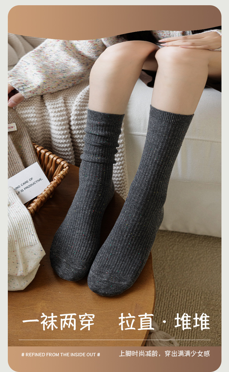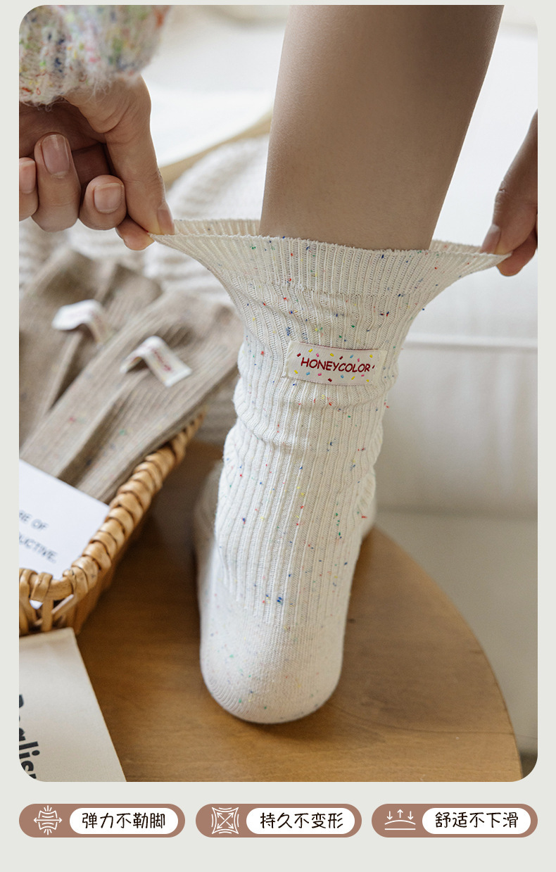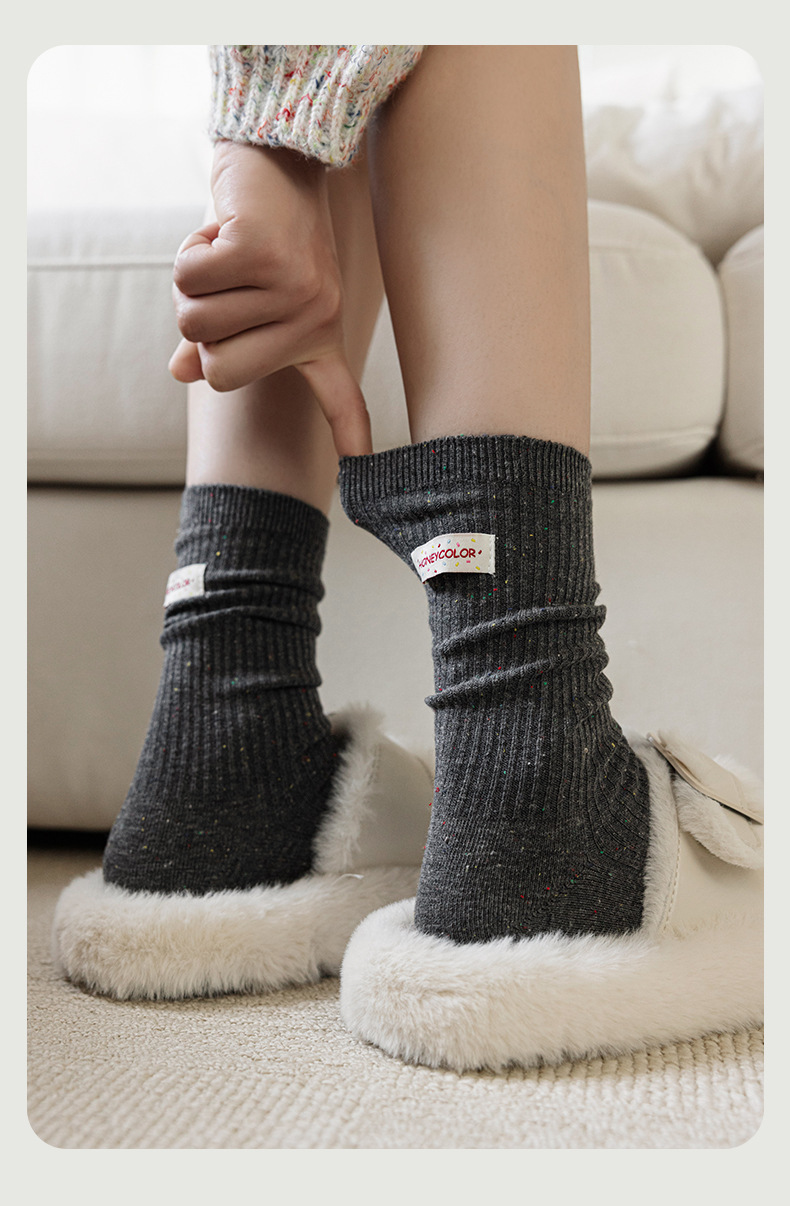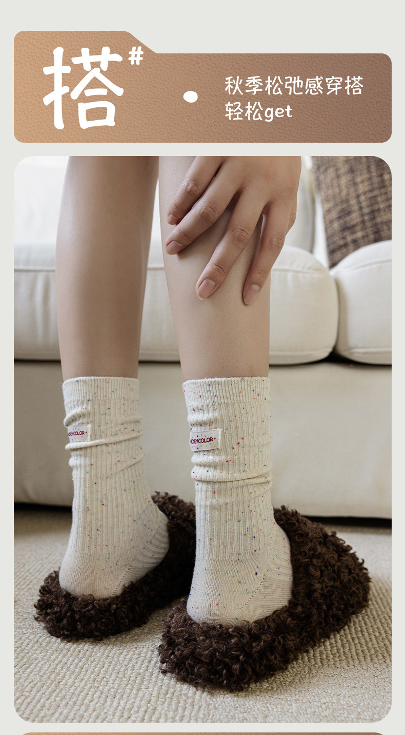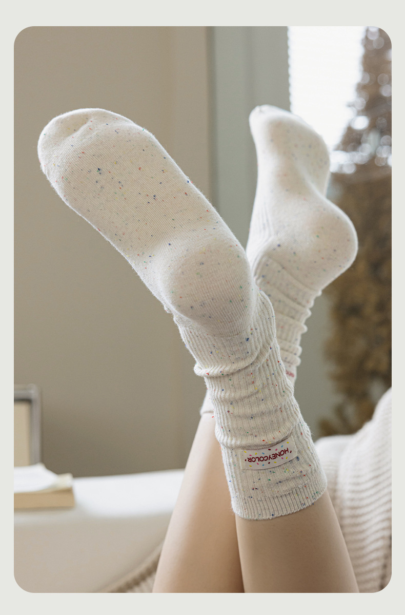 양말 여성 헝겊 라벨 알파벳 팩 양말 트렌디 한 가을과 겨울 새로운 도착 포인트 원사 올매치 개인화 된 학생 미드 튜브 양말