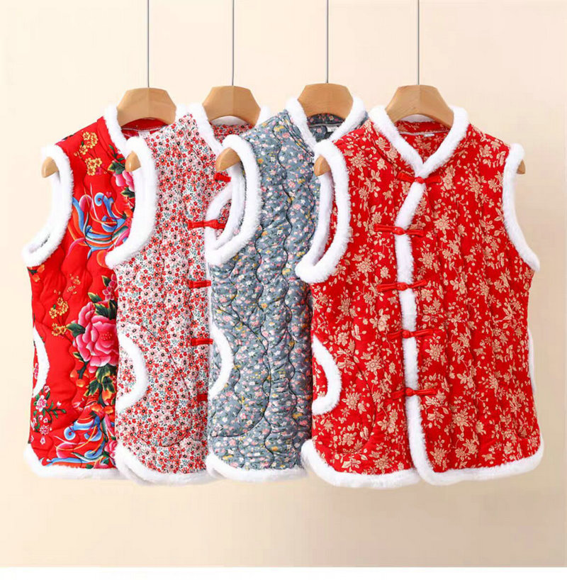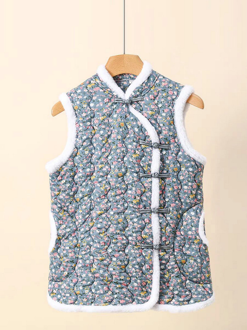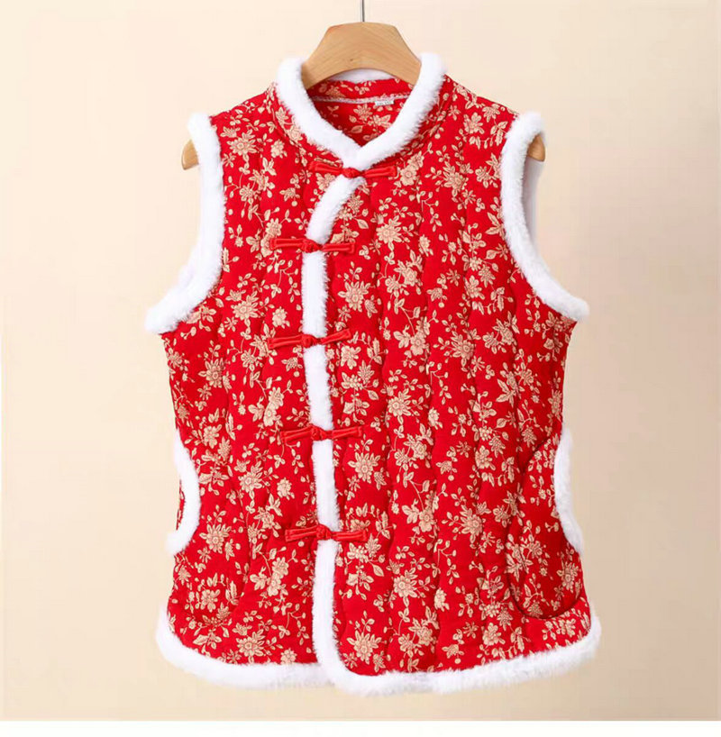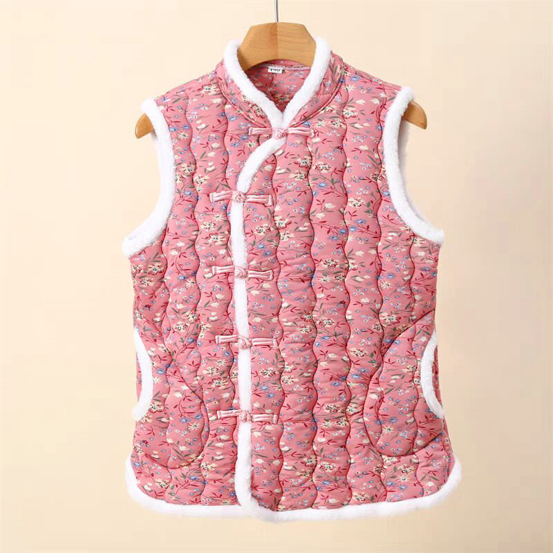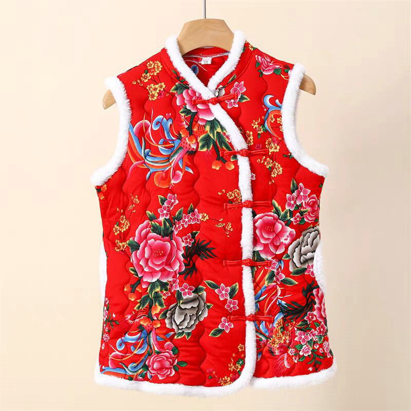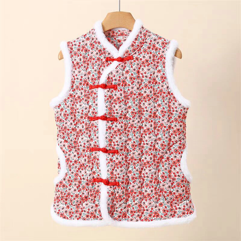 인터넷 뜨거운 중국 스타일 조끼 여성의 새로운 2024 새로운 가을과 겨울 면화 패딩 동북 큰 꽃 면화 패딩 재킷스토어 가기