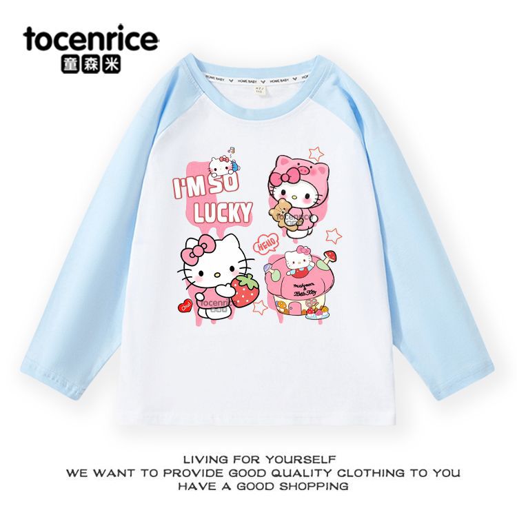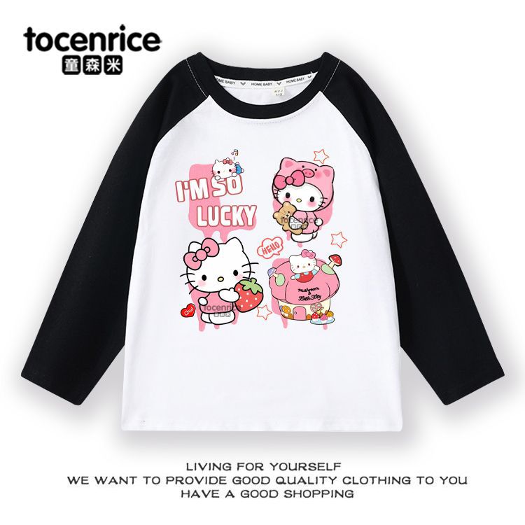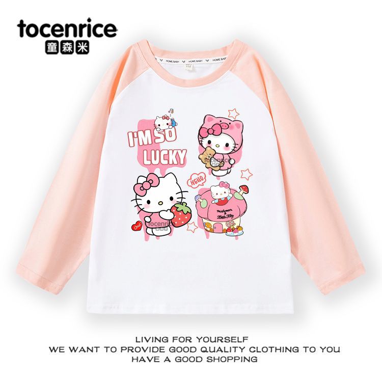 Helloikitty Raglan Cotton 소녀를위한 긴팔 티셔츠 새로운 헬로 키티 중학교 학생베이스 셔츠 트렌디