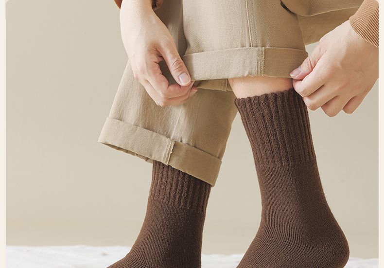 남성용 겨울 양말, 벨벳으로 두꺼워진 울, 보온 및 보온 캐시미어 양말, 내한성 종아리 양말, 겨울 면 양말, 긴 양말